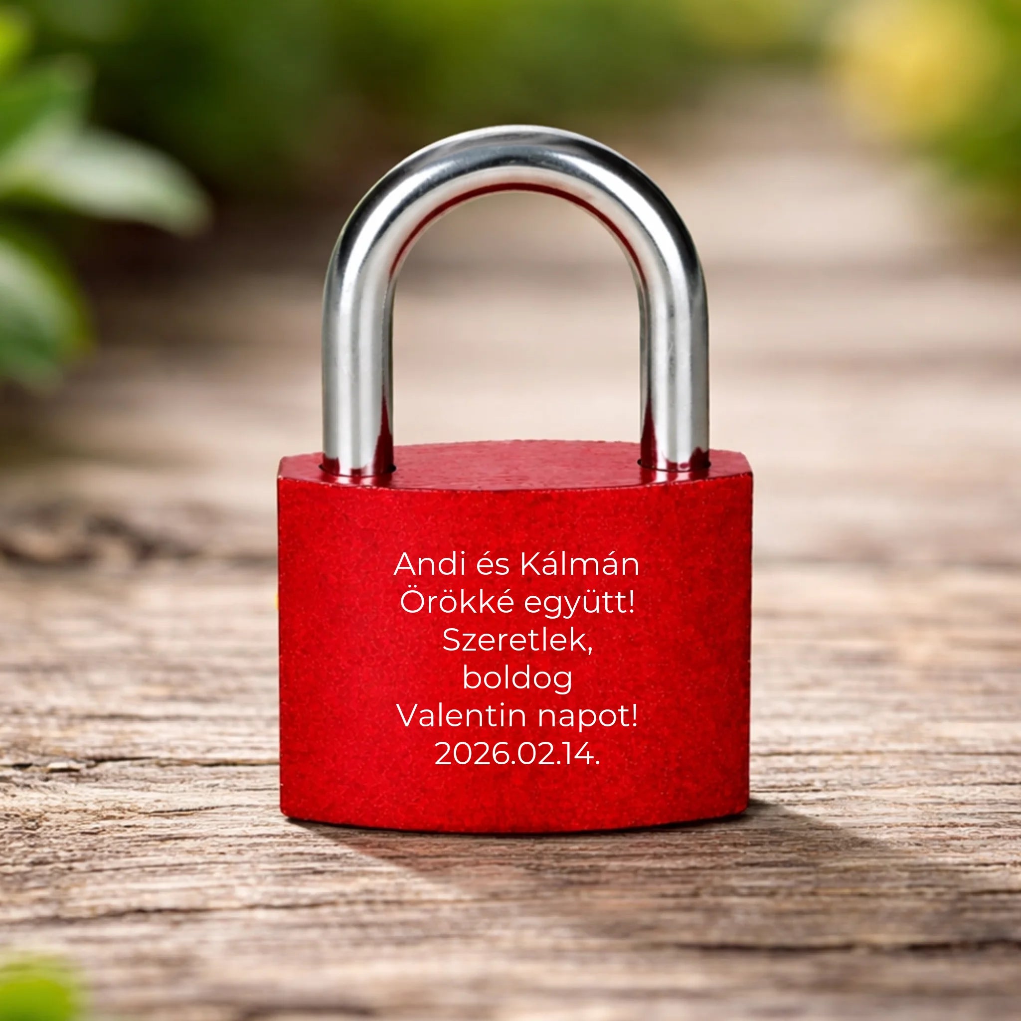Az egyedi lakat felületére lézeres gravírozással kerülnek fel a választott nevek, dátum és grafika, így egy valóban személyes, örök emlék készül.