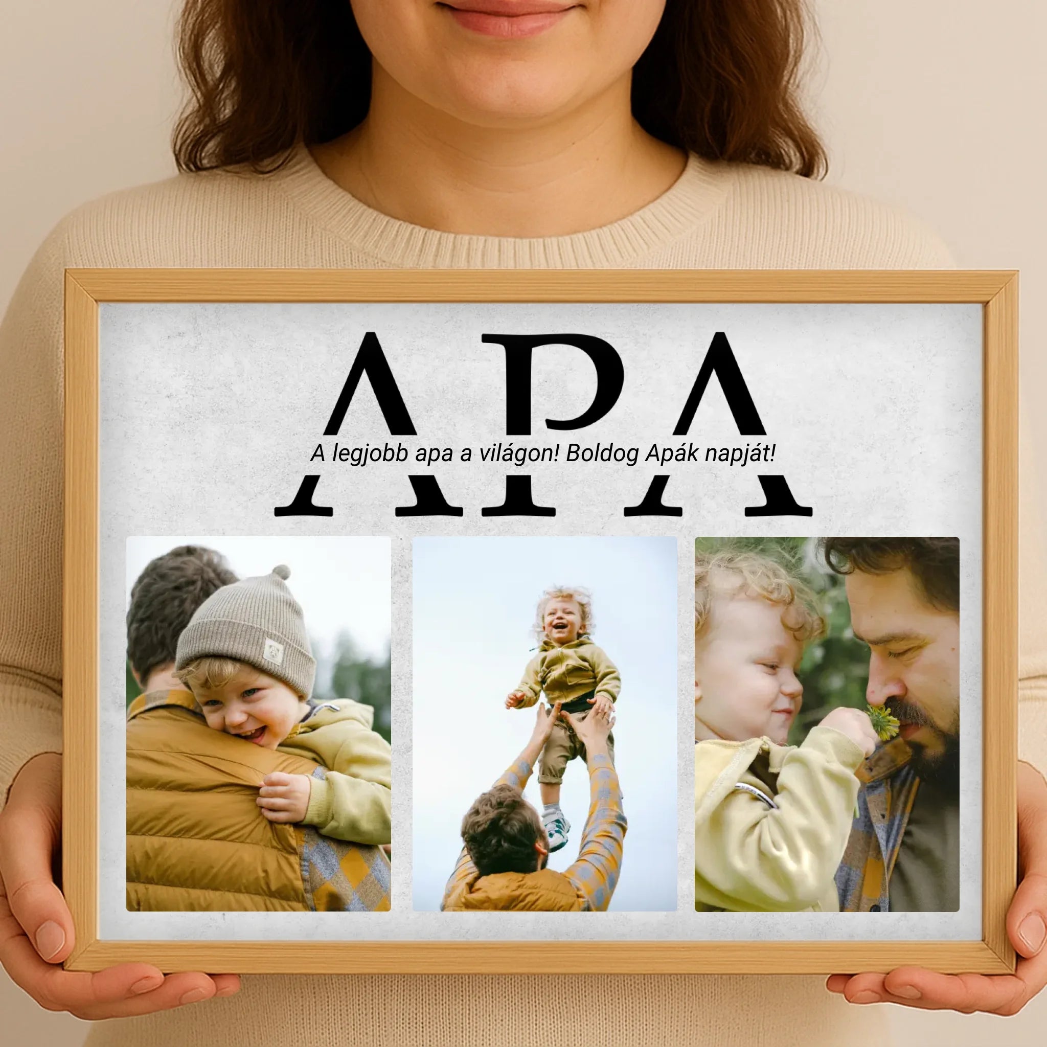 Egyedi apák napi falikép saját fényképeddel.Tervezd meg otthonod legszebb dekorációját egyedi apák napi faliképünkkel, amely szemet gyönyörködtetően kiemeli a szoba atmoszféráját.