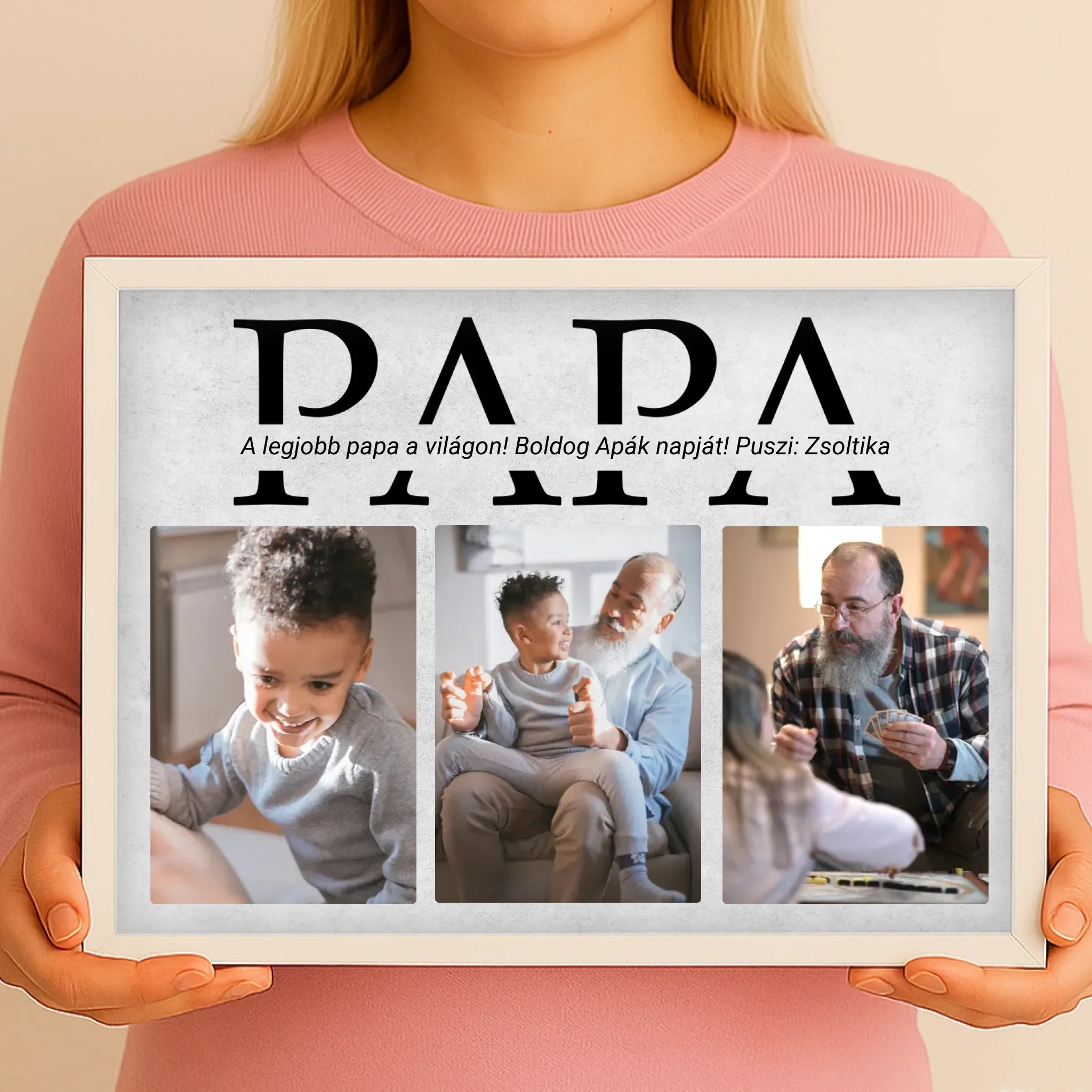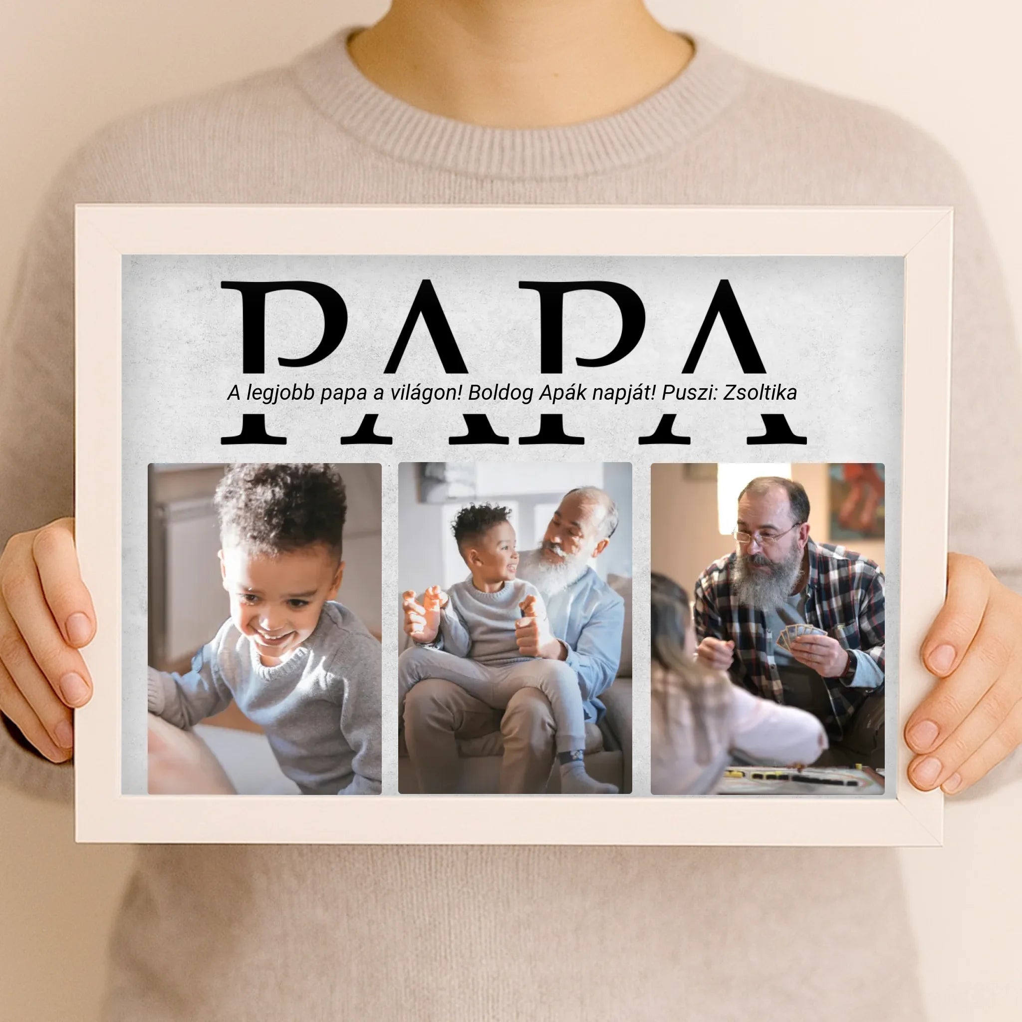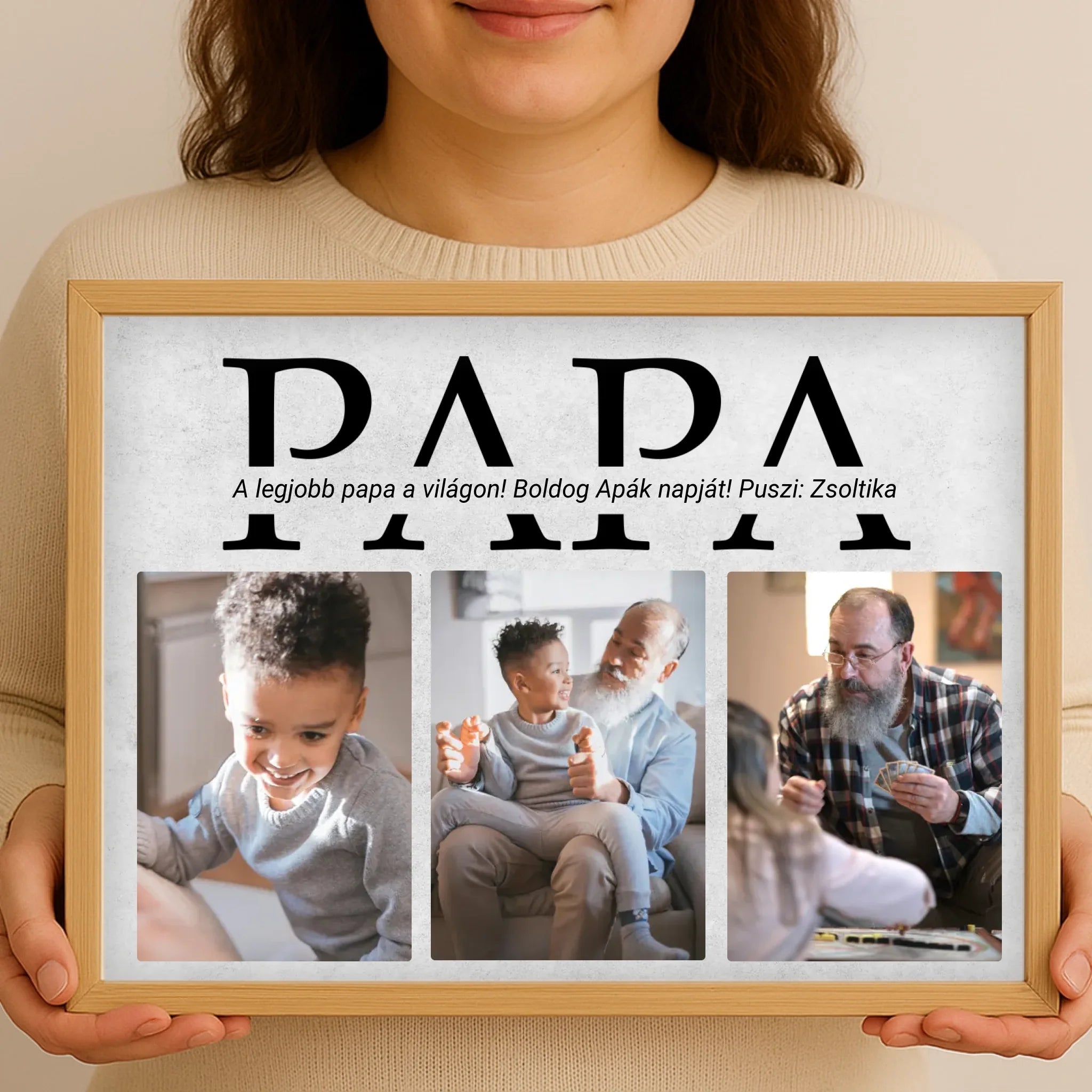 Apák napi 3 képes falikép papának egyedi szöveggel