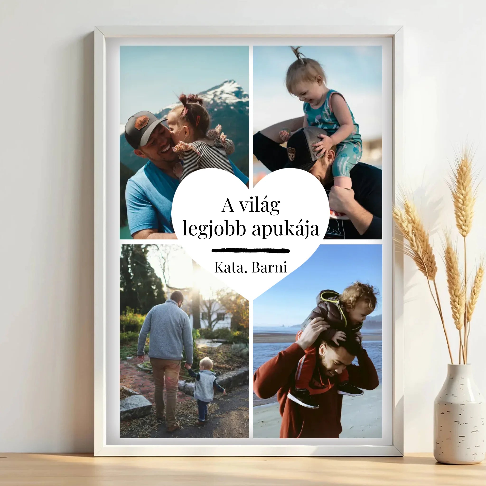Apák napi 4 Képes falikép középen szívvel