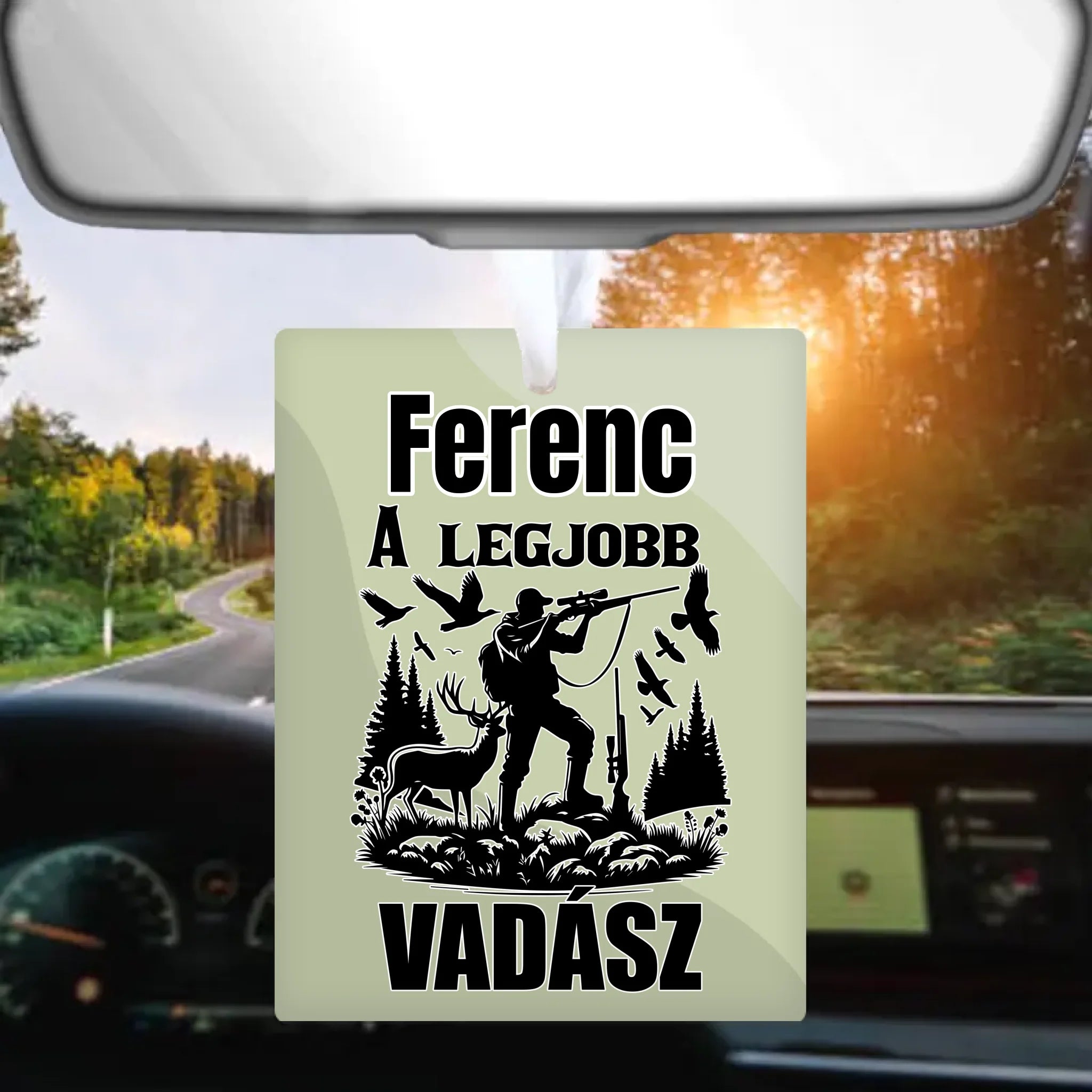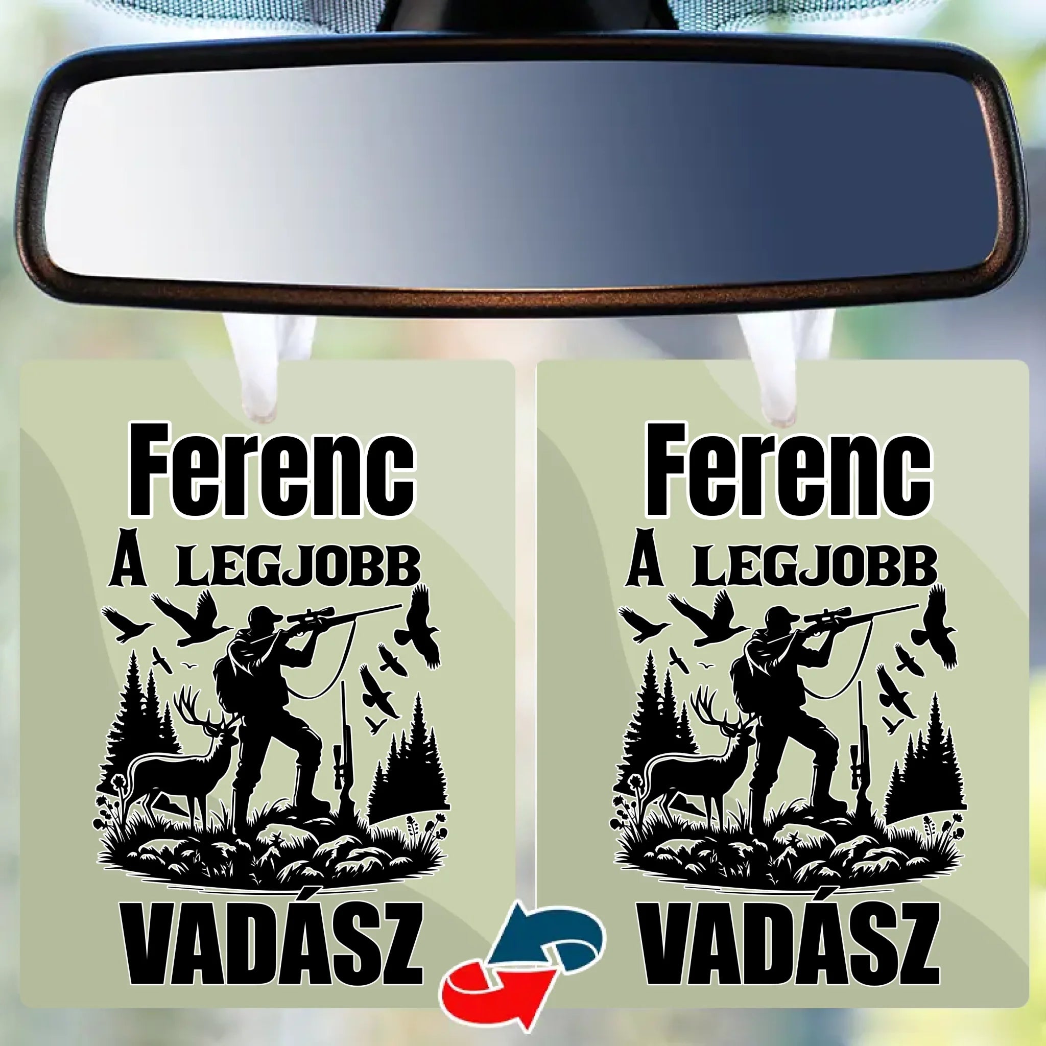 A vadászok számára tervezett egyedi mintás autóillatosító névvel és saját képpel is személyre szabható. Tökéletes meglepetés vadász ismerőseidnek, legyen szó születésnapról, névnapról vagy akár karácsonyról.