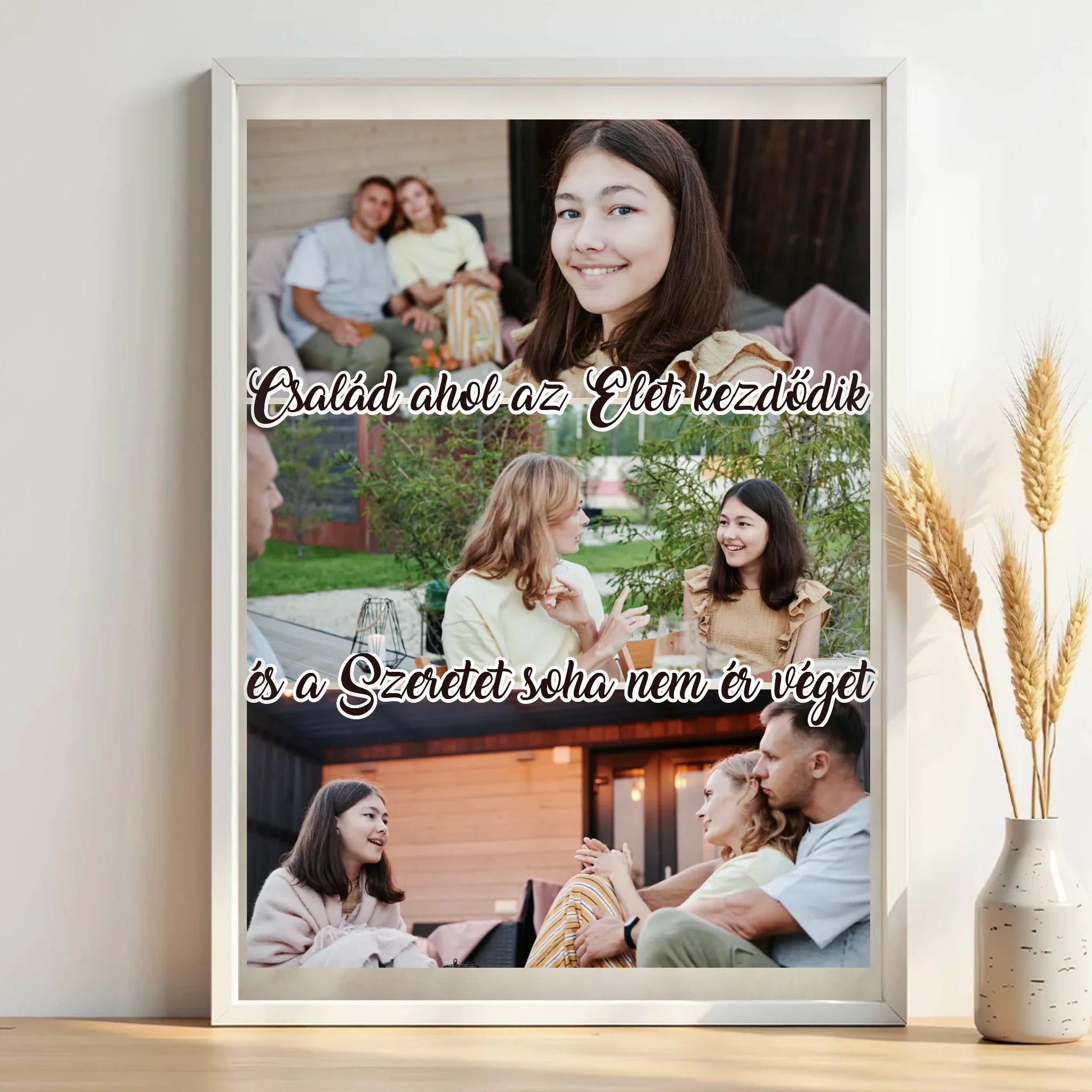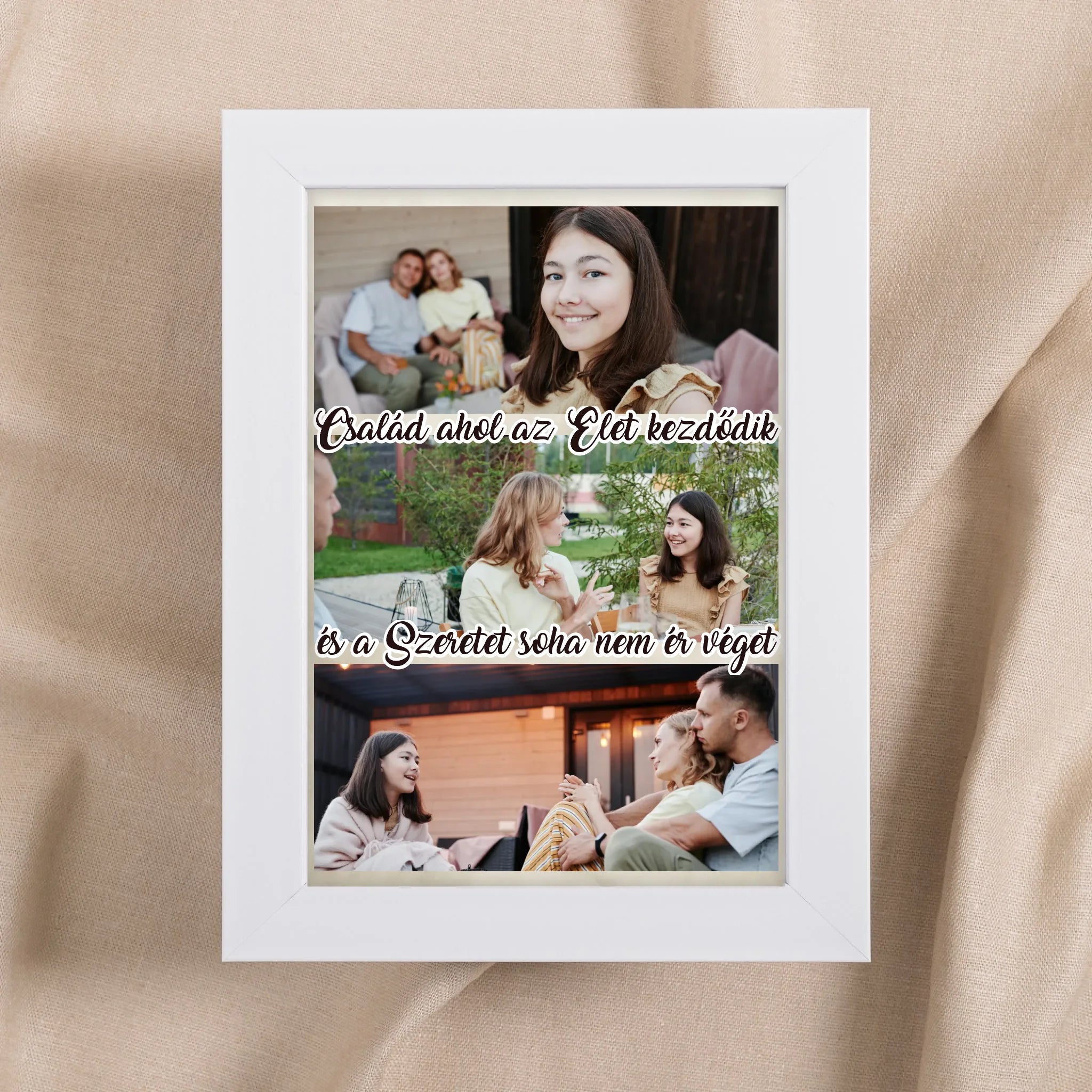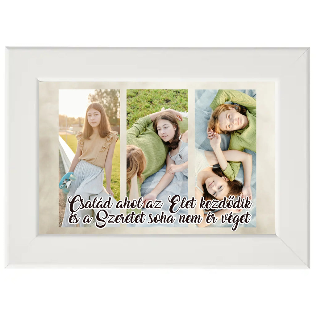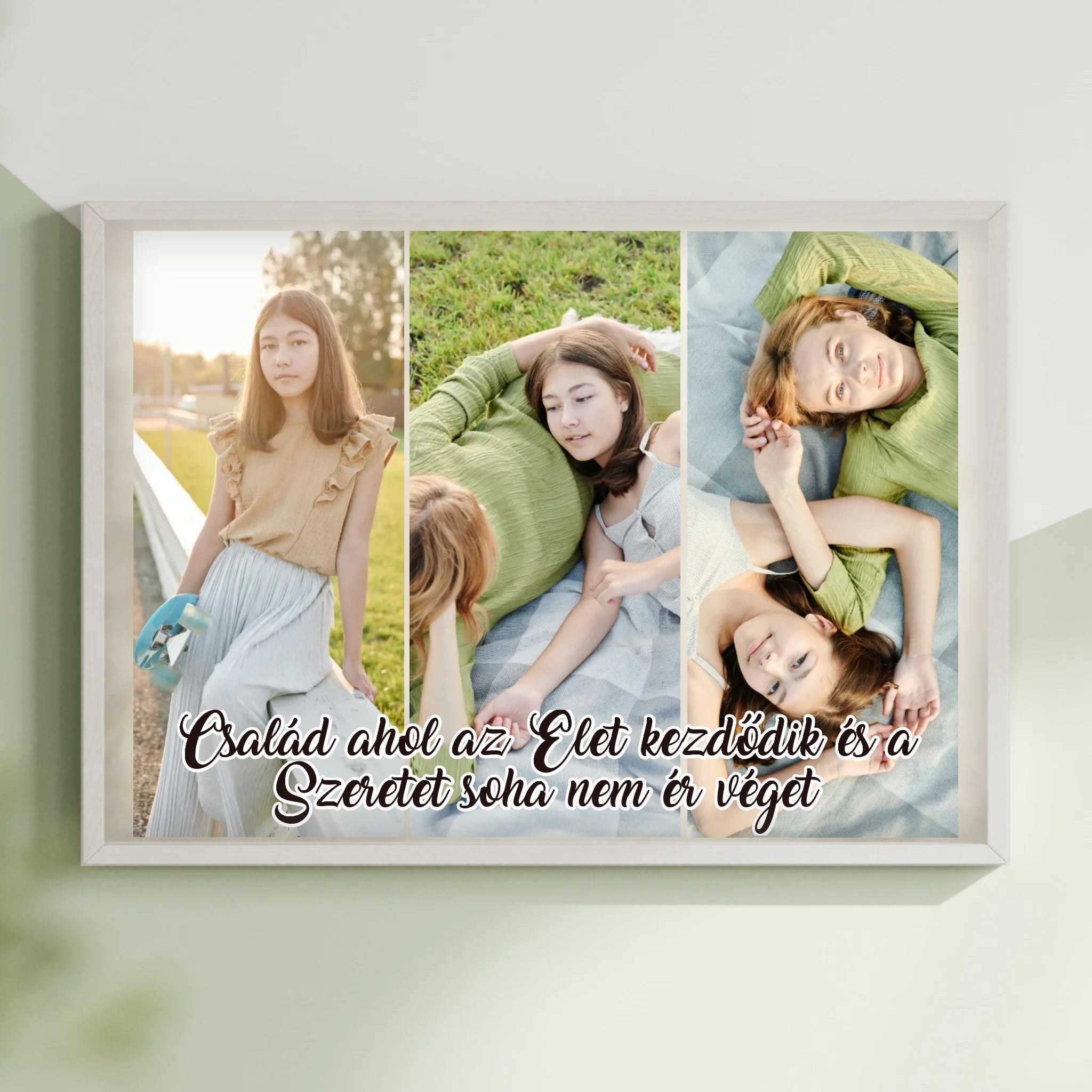 🖼️ Egyedi falikép 3 fotóval és felirattal – személyes ajándék különleges pillanatokhoz