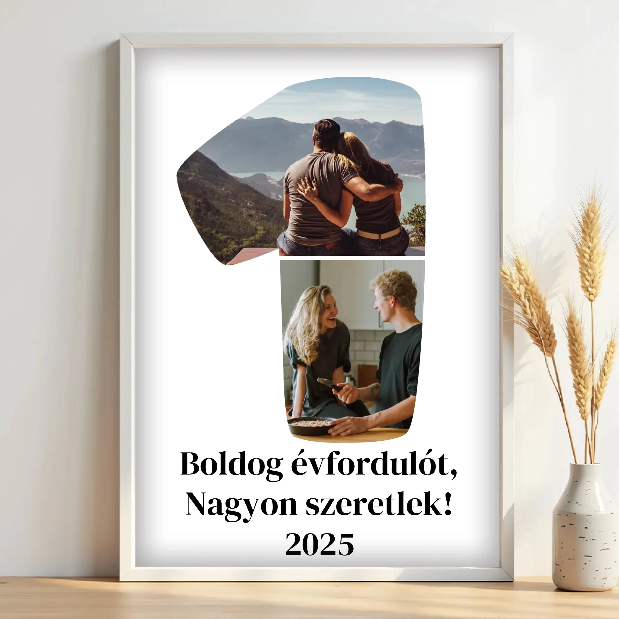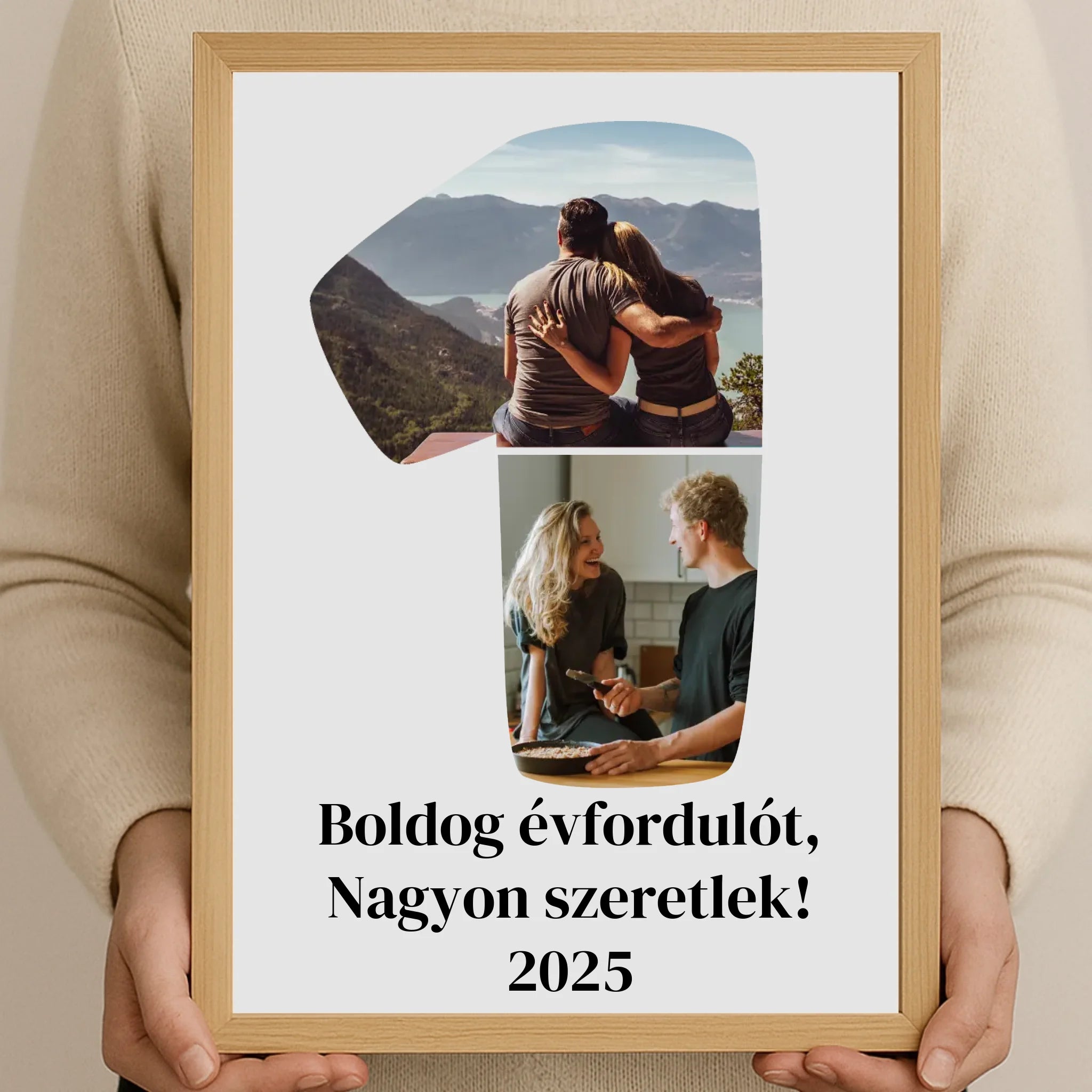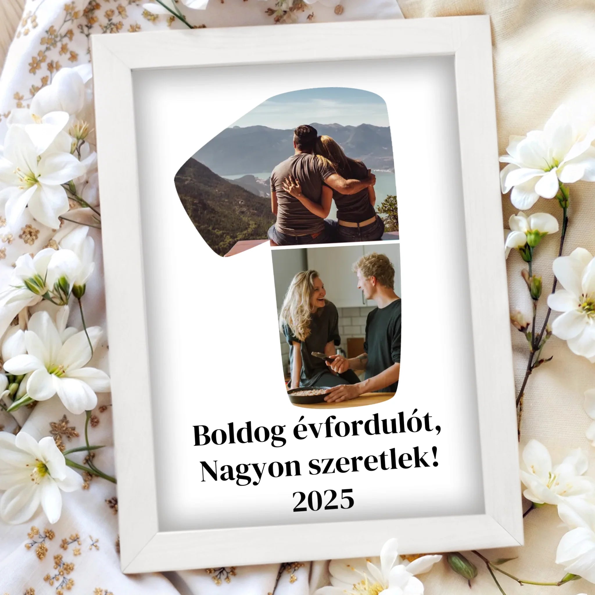 Egyedi falikép saját fényképeiddel szám alakú montázsba rendezve, így tökéletes ajándék évfordulóra vagy születésnapra is. Tervezd meg otthonod legszebb dekorációját faliképünkkel, amely szemet gyönyörködtetően kiemeli a szoba atmoszféráját.