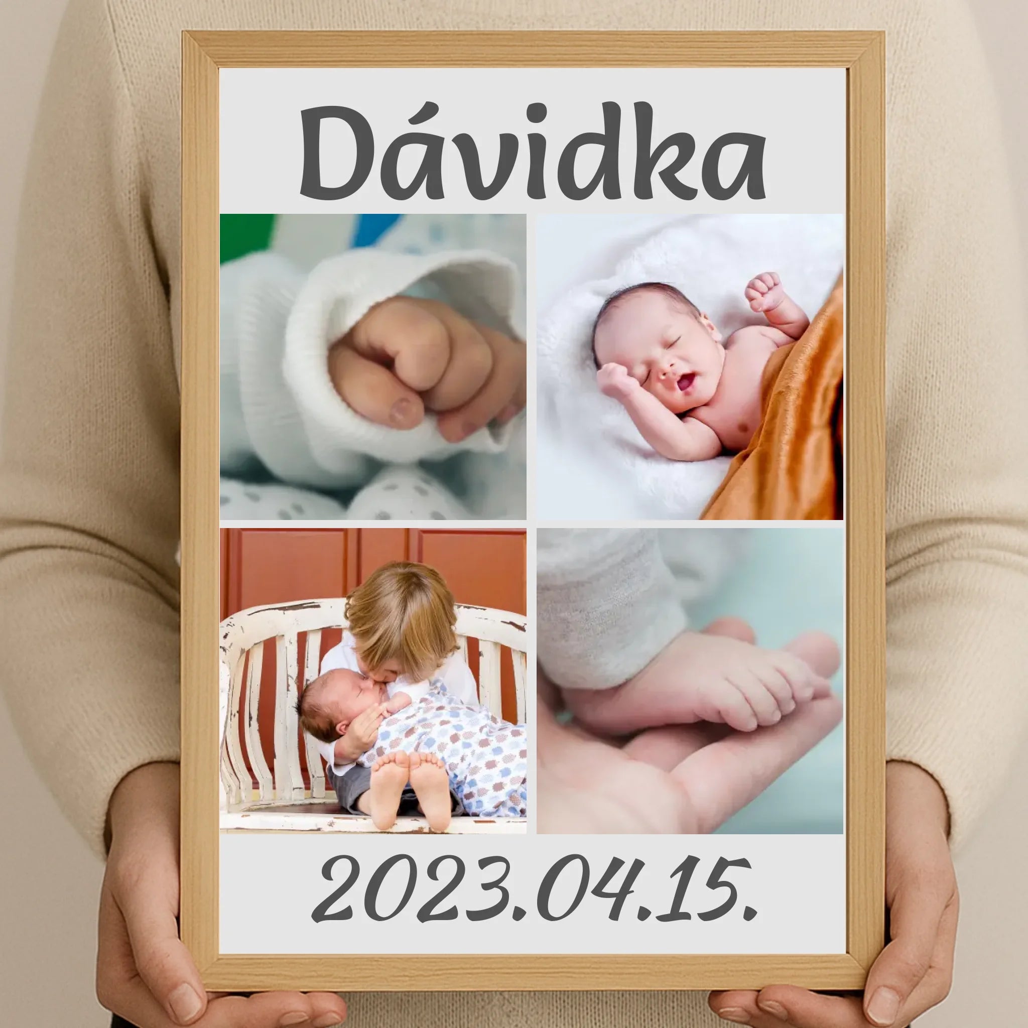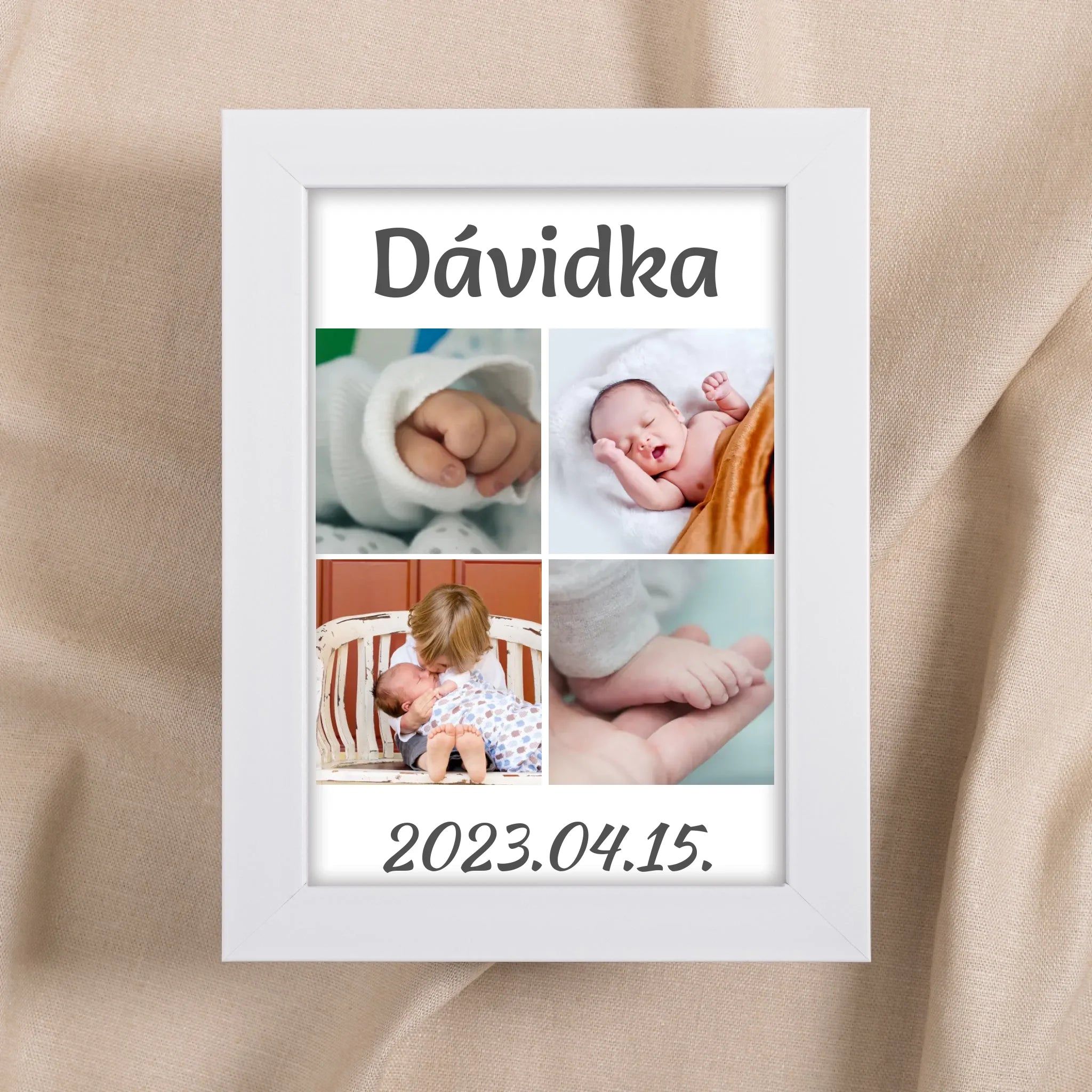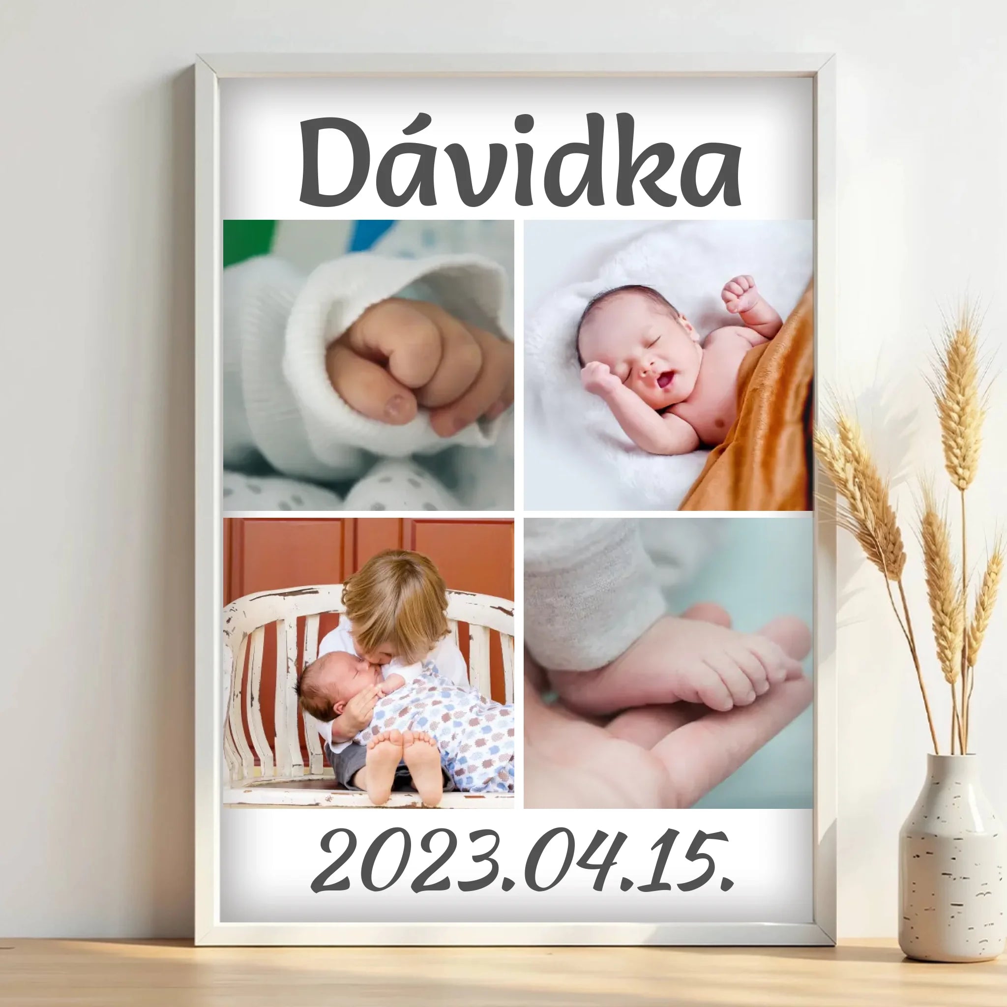 Egyedi fényképes falikép babáknak 4 képpel és felirattal