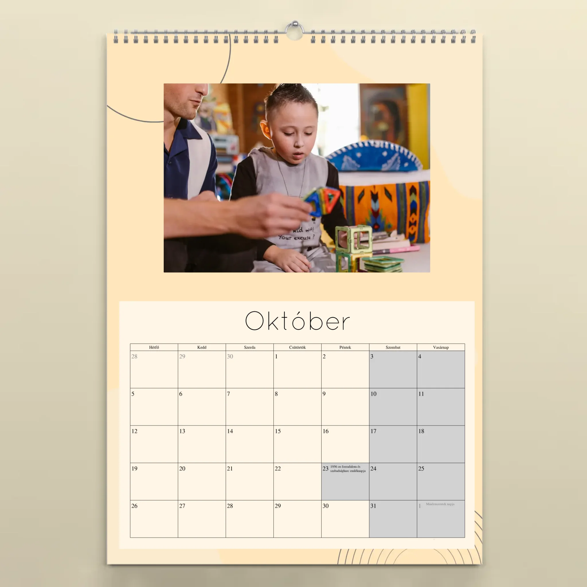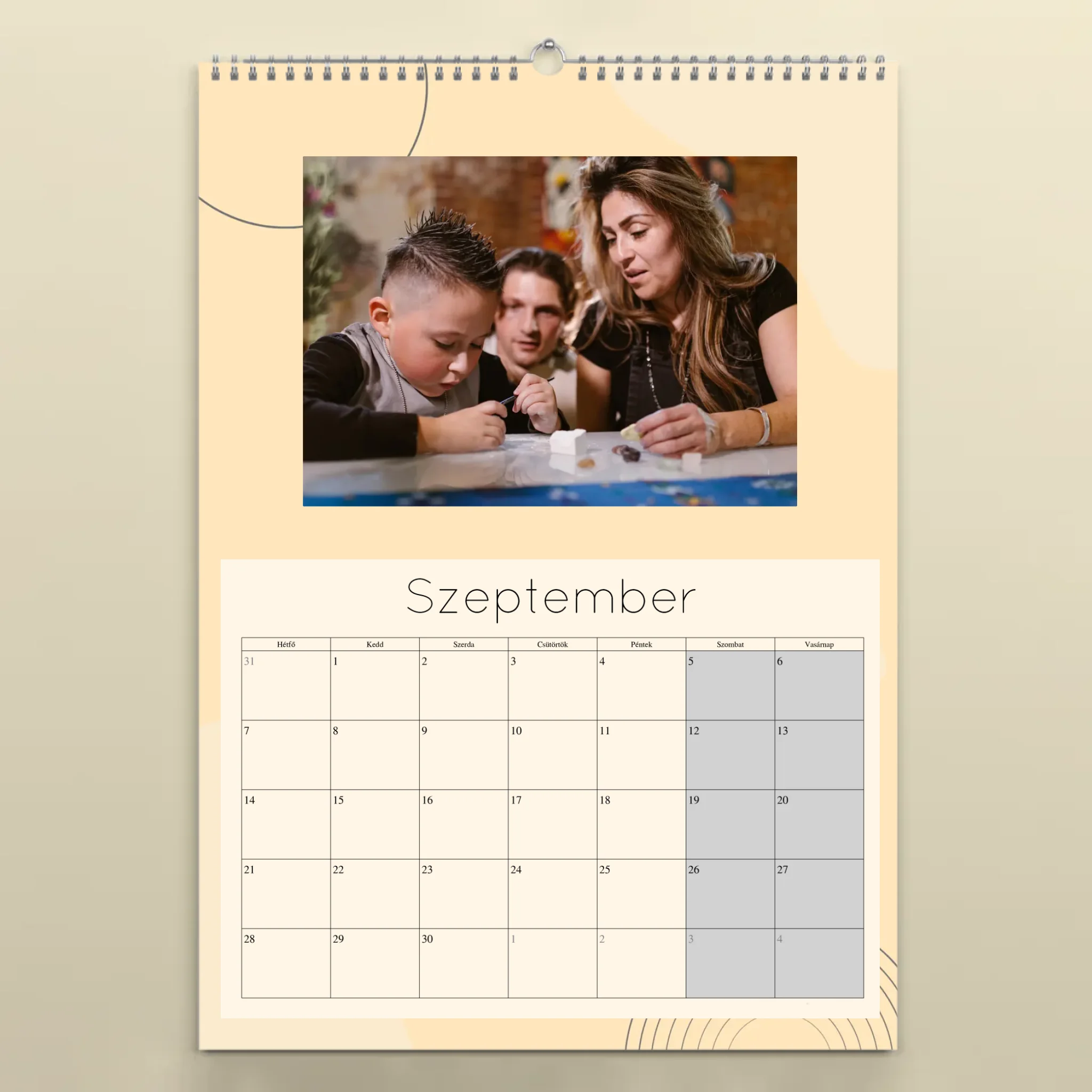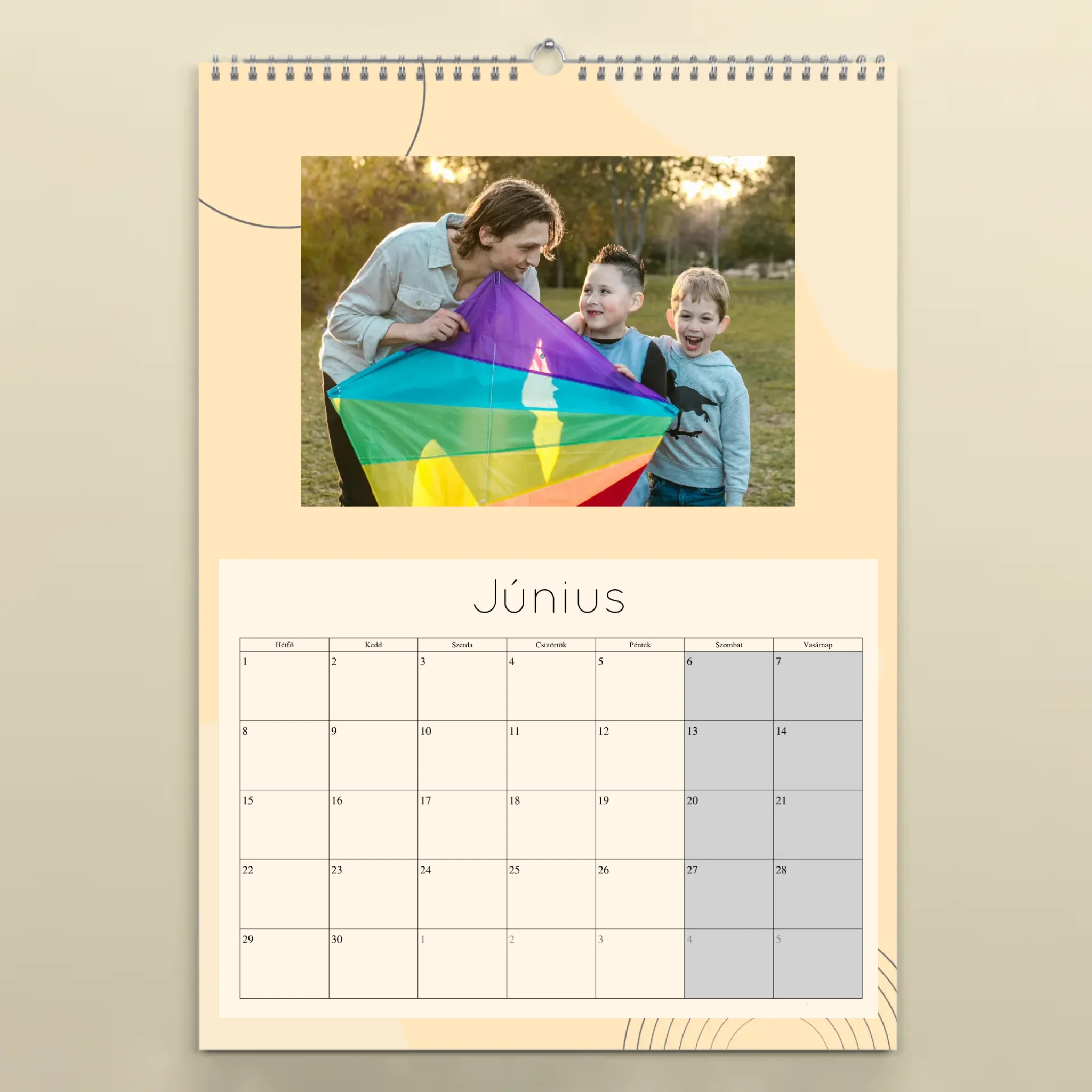 A naptárat könnyedén személyre szabhatod: töltsd fel 12 kedvenc fotódat, válaszd ki a kezdő hónapot, és mi gondoskodunk a prémium minőségű nyomtatásról. A falinaptár minden hónapja tartalmazza a magyar ünnepnapokat, így nemcsak szép, de praktikus kiegészítője is az otthonodnak.