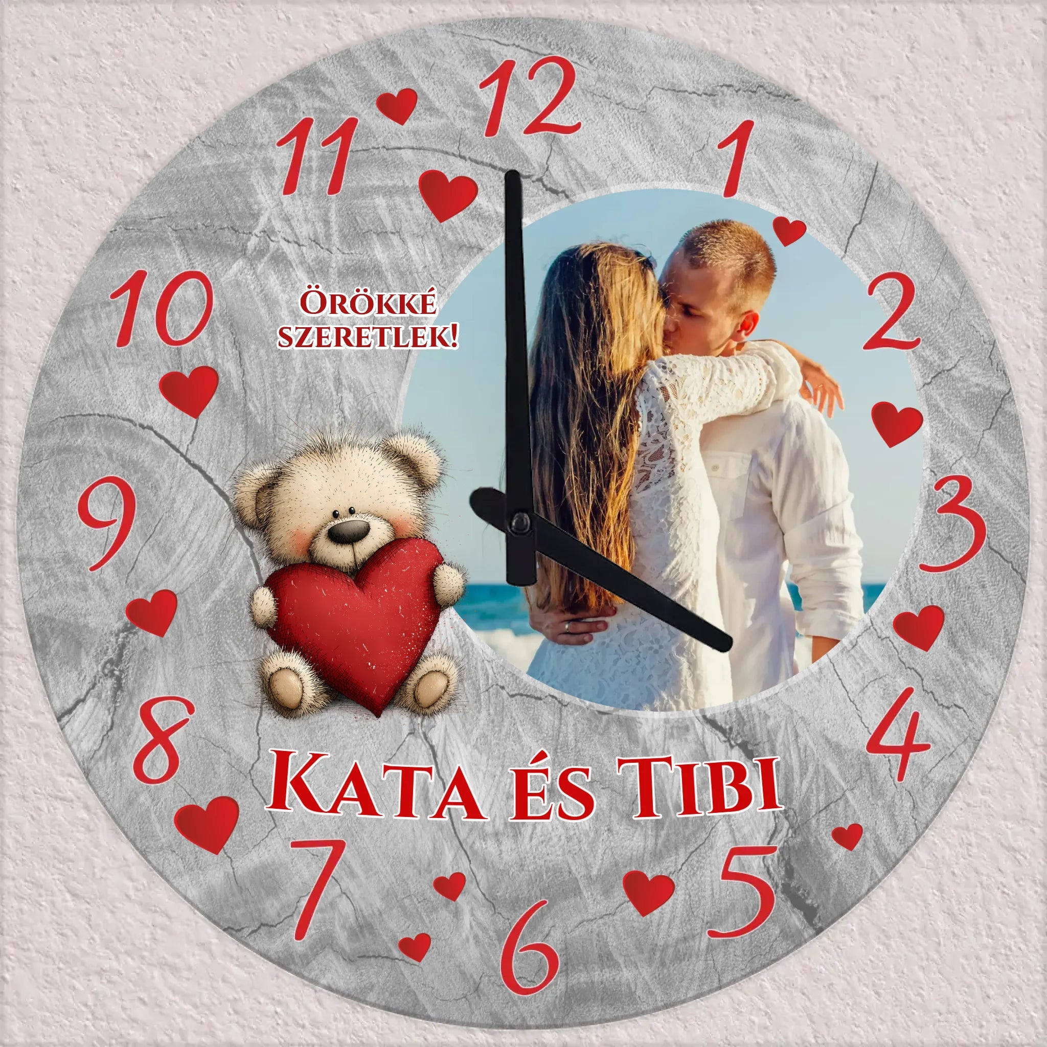 Tervezd meg saját egyedi faliórádat, amely nemcsak praktikus, hanem stílusos dekorációja is otthonodnak, vagy igazán személyes ajándék lehet szeretteid számára. Egy fényképes óra mindig különleges meglepetés, hiszen egyedi emlékeket örökít meg.