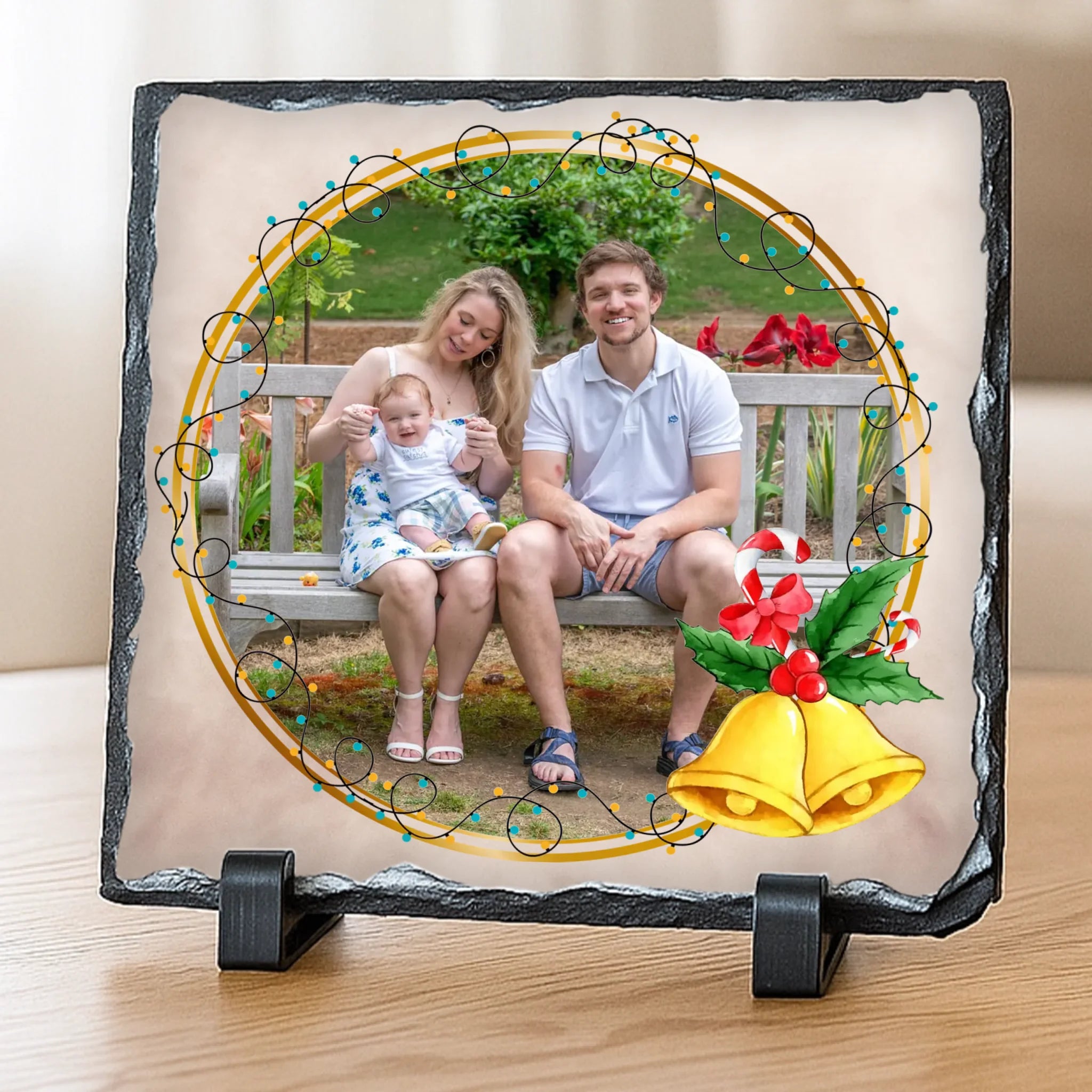 Egyedi fényképes fotókő karácsonyi keretben
