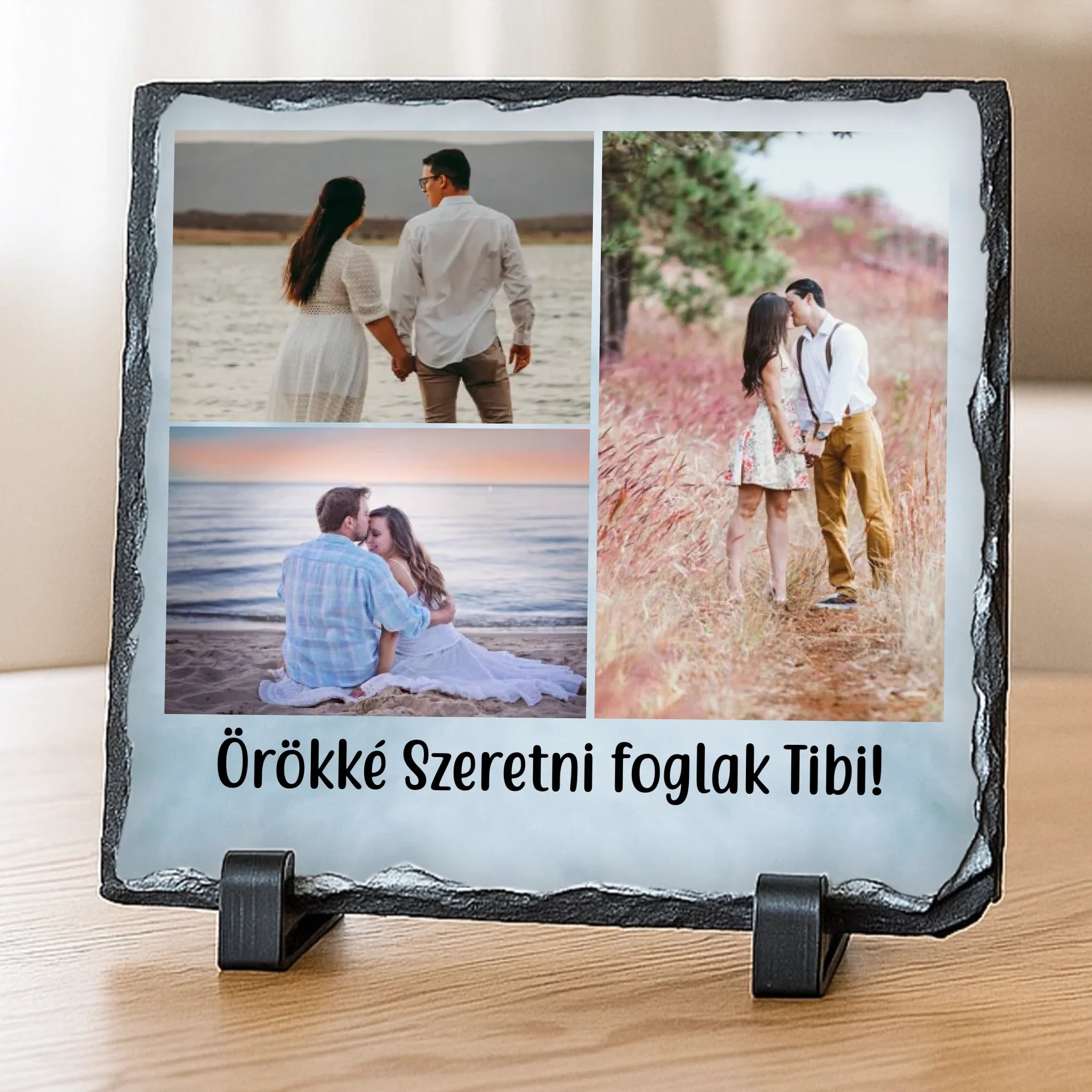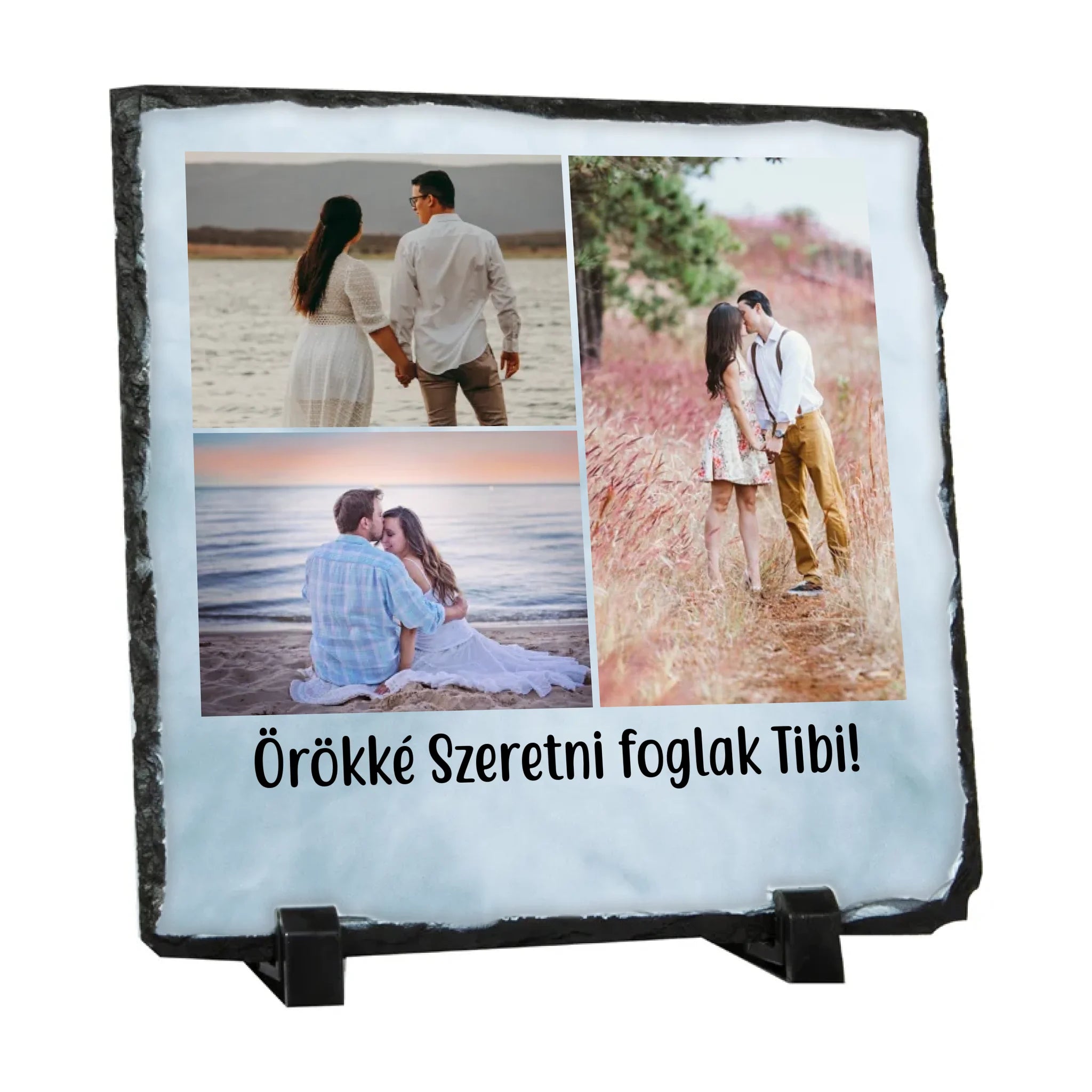 Lepd meg szeretteidet egy igazán különleges, személyre szabott ajándékkal! A fényképes fotókő elegáns és tartós emlék, amelyre a saját fényképed kerül nyomtatásra. A természetes kőhatású, rusztikus szélek és a stabil tartó modern, mégis időtálló megjelenést biztosítanak.