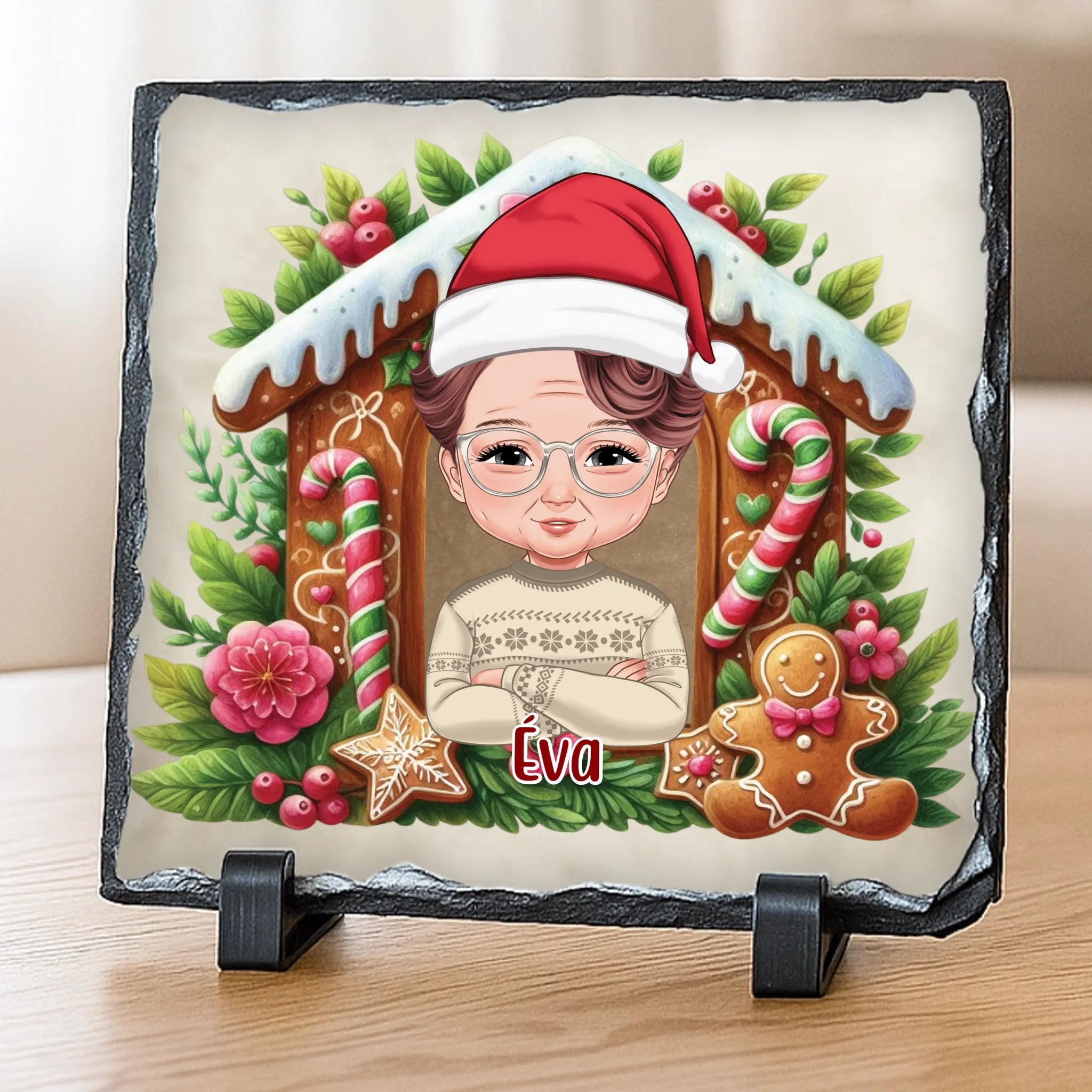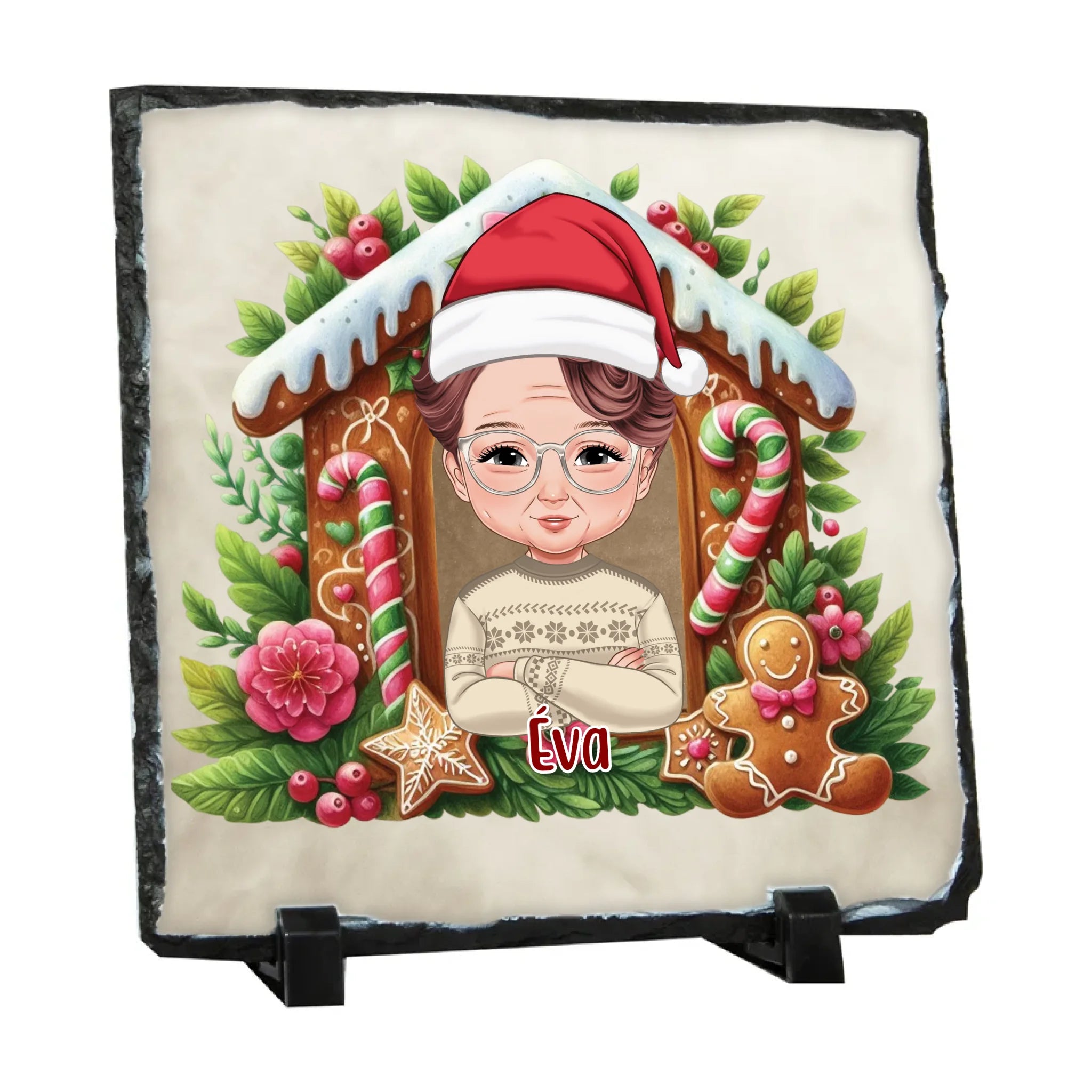 Egyedi fotókő idősebb nőknek karácsonyra személyre szabható karakterrel