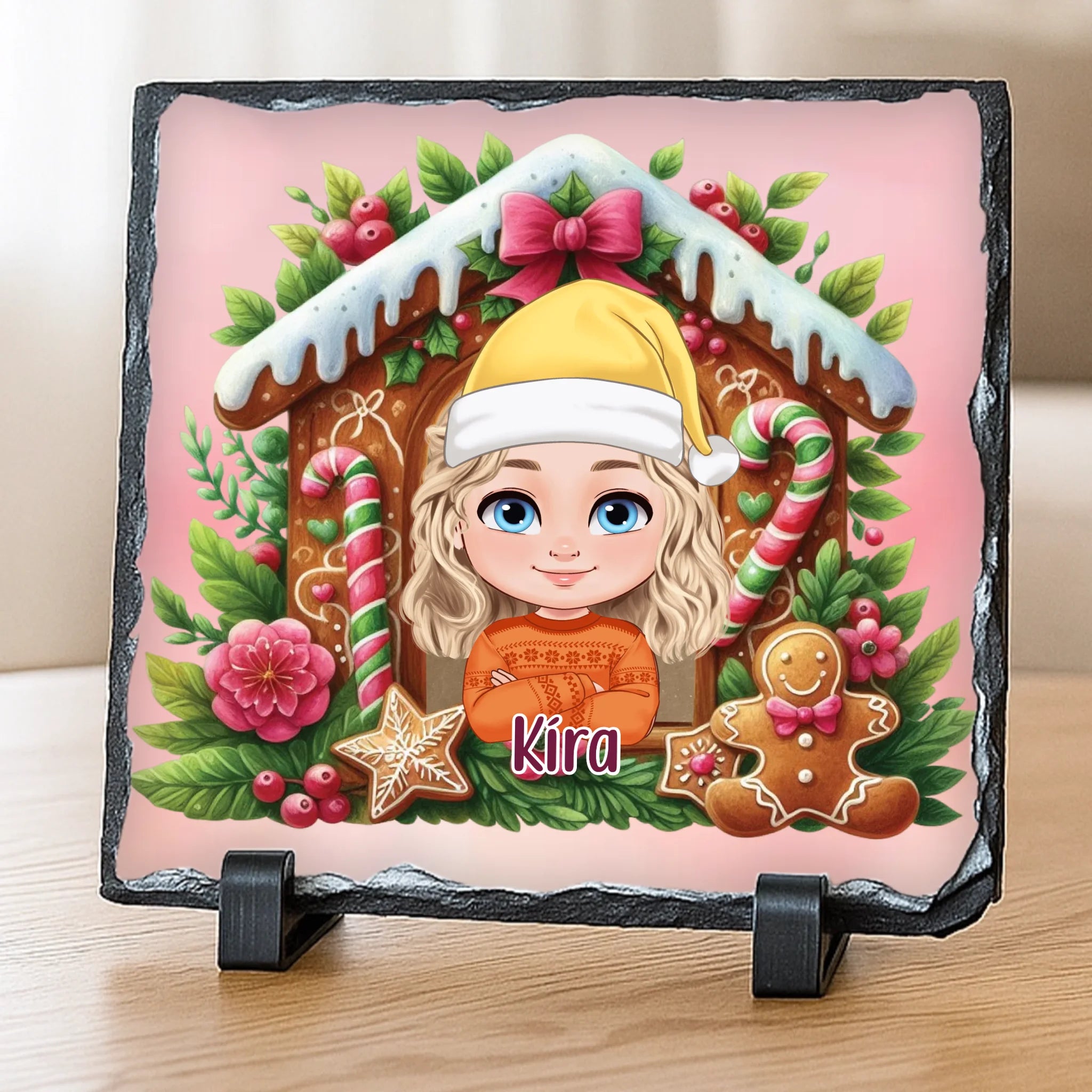Egyedi fotókő lányoknak karácsonyra személyre szabható karakterrel