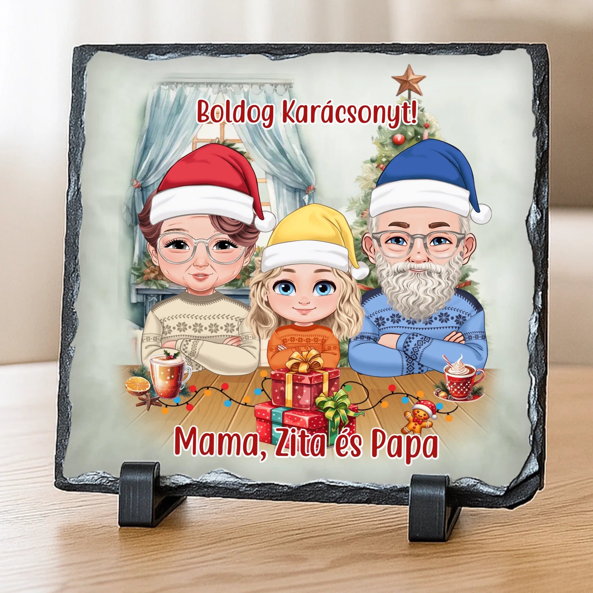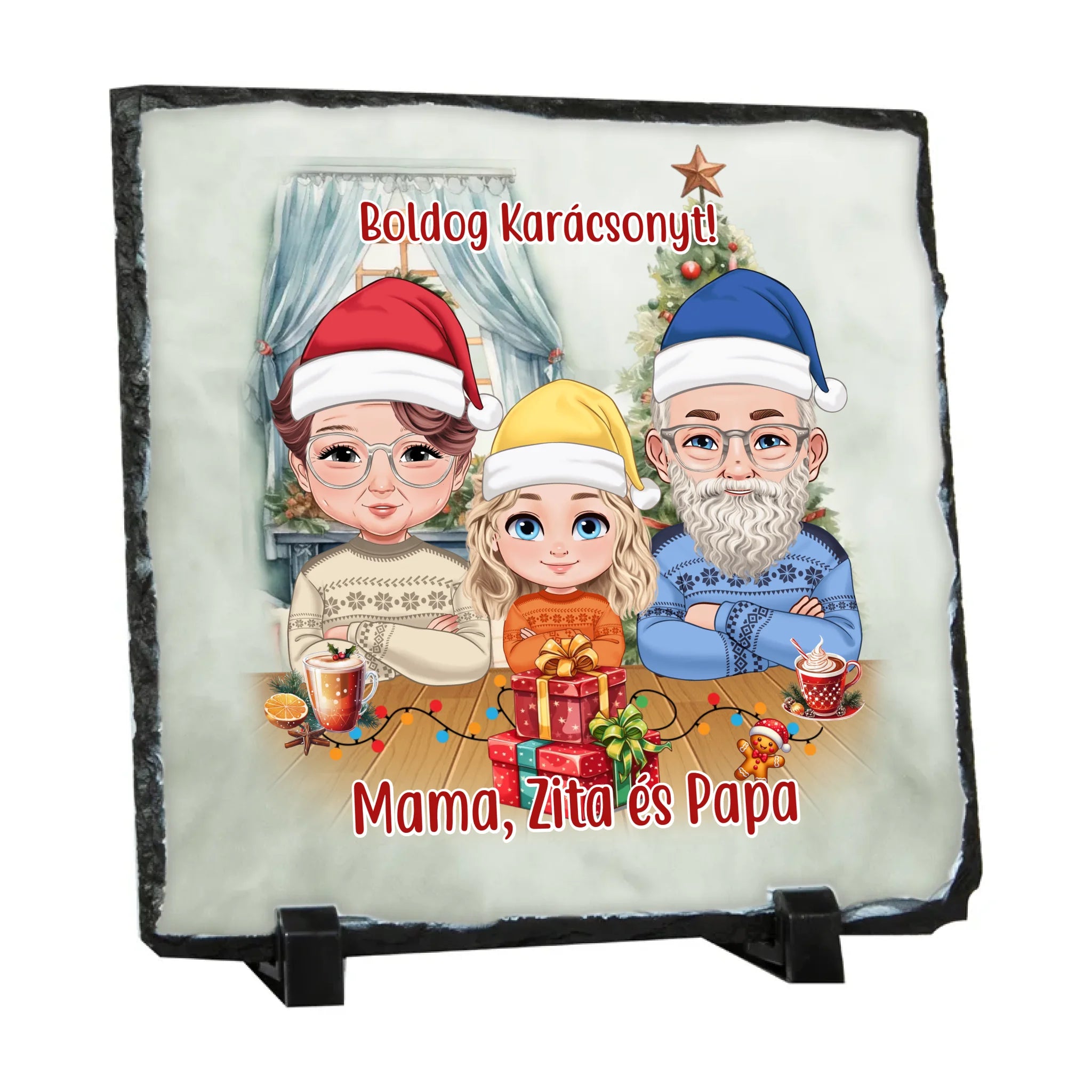 Egyedi fotókő nagyszülőknek karácsonyra személyre szabható karakterrel