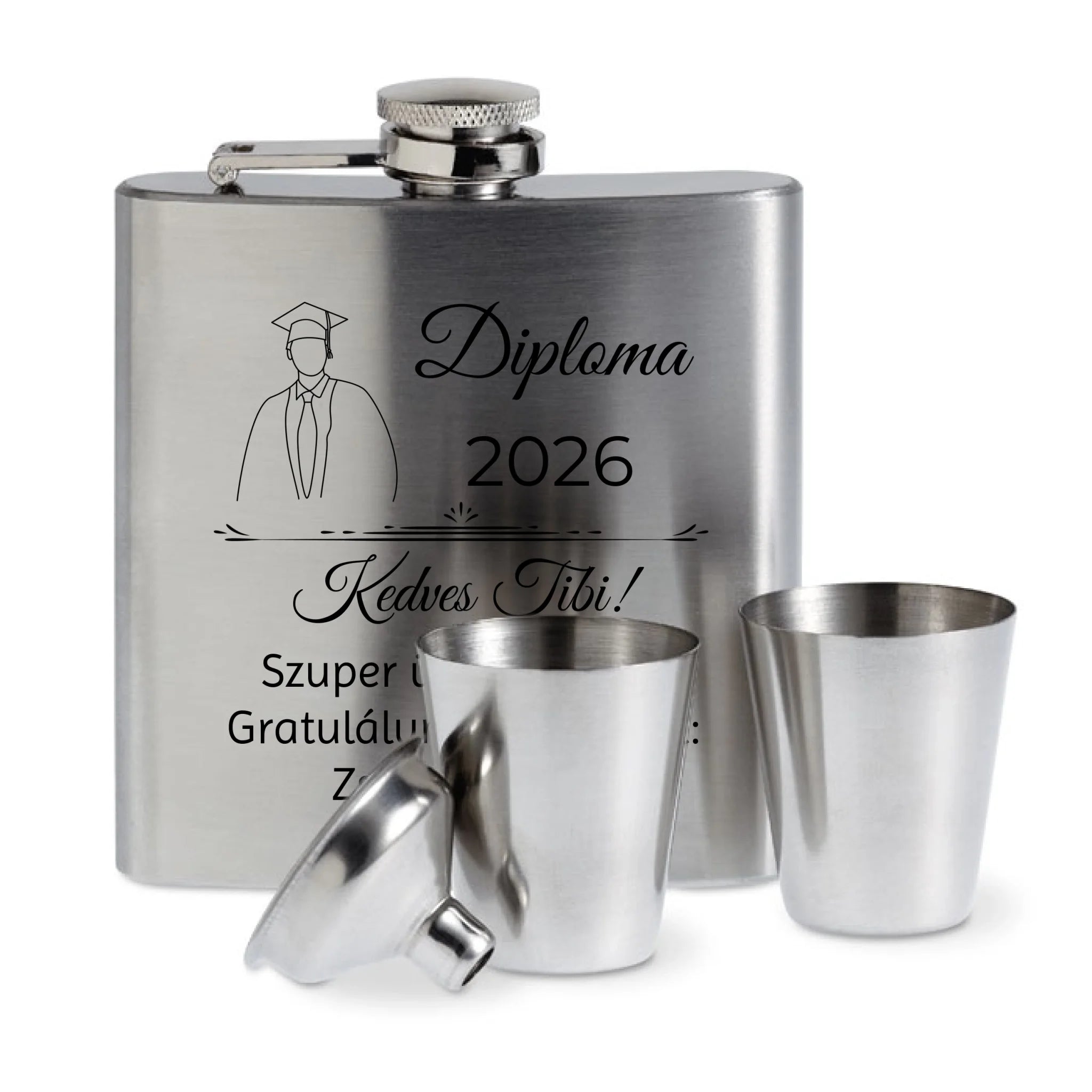 Egyedi gravírozott flaska szett diploma ajándék névvel és személyes üzenettel