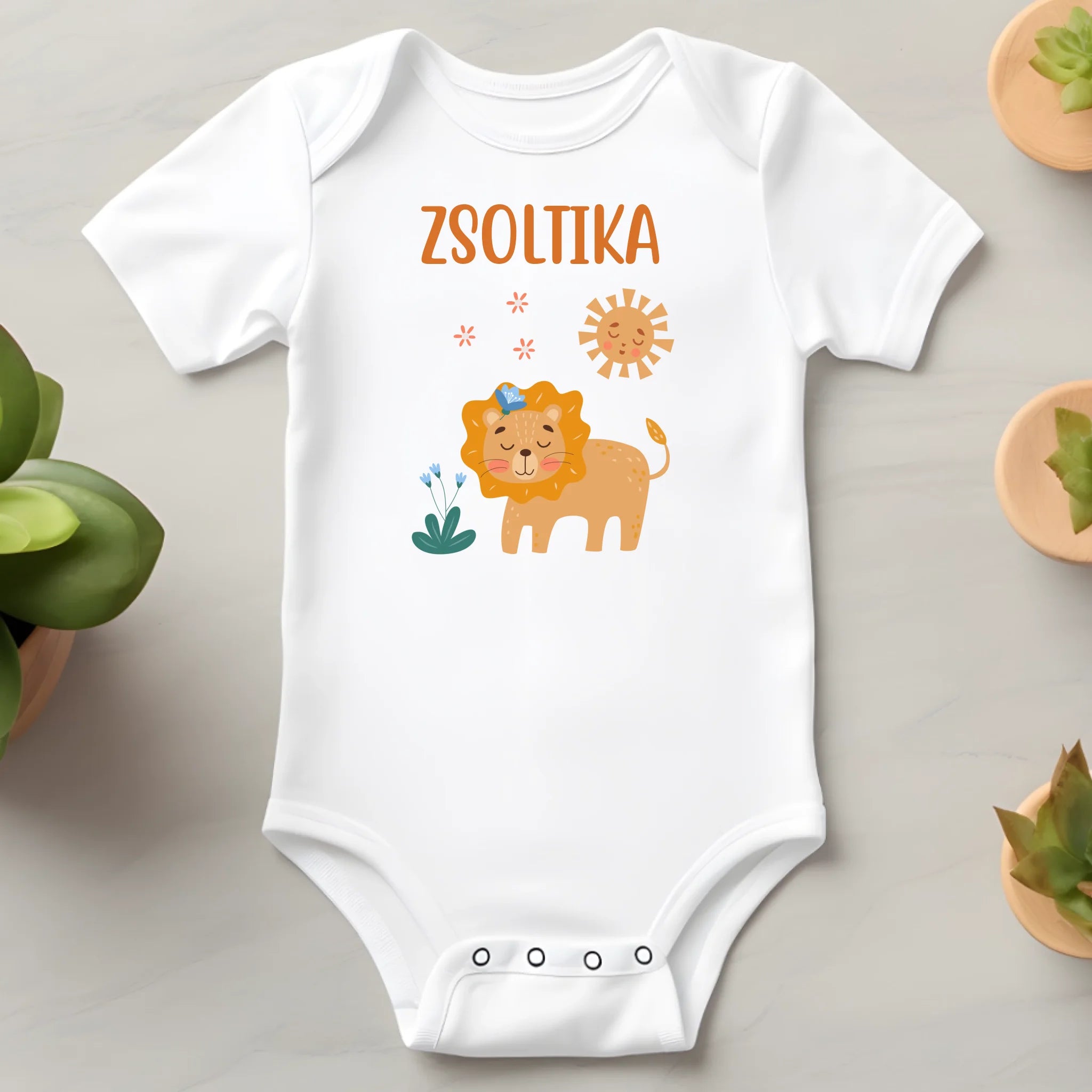 Az Egyedi neves baba body szafari állatos mintával egy vidám, természet ihlette ajándék. Az oroszlánok, zsiráfok és elefántok között a baba neve is szerepelhet, így igazán egyedi és különleges lesz. Kényelmes, légáteresztő 100% pamut anyagból készül.