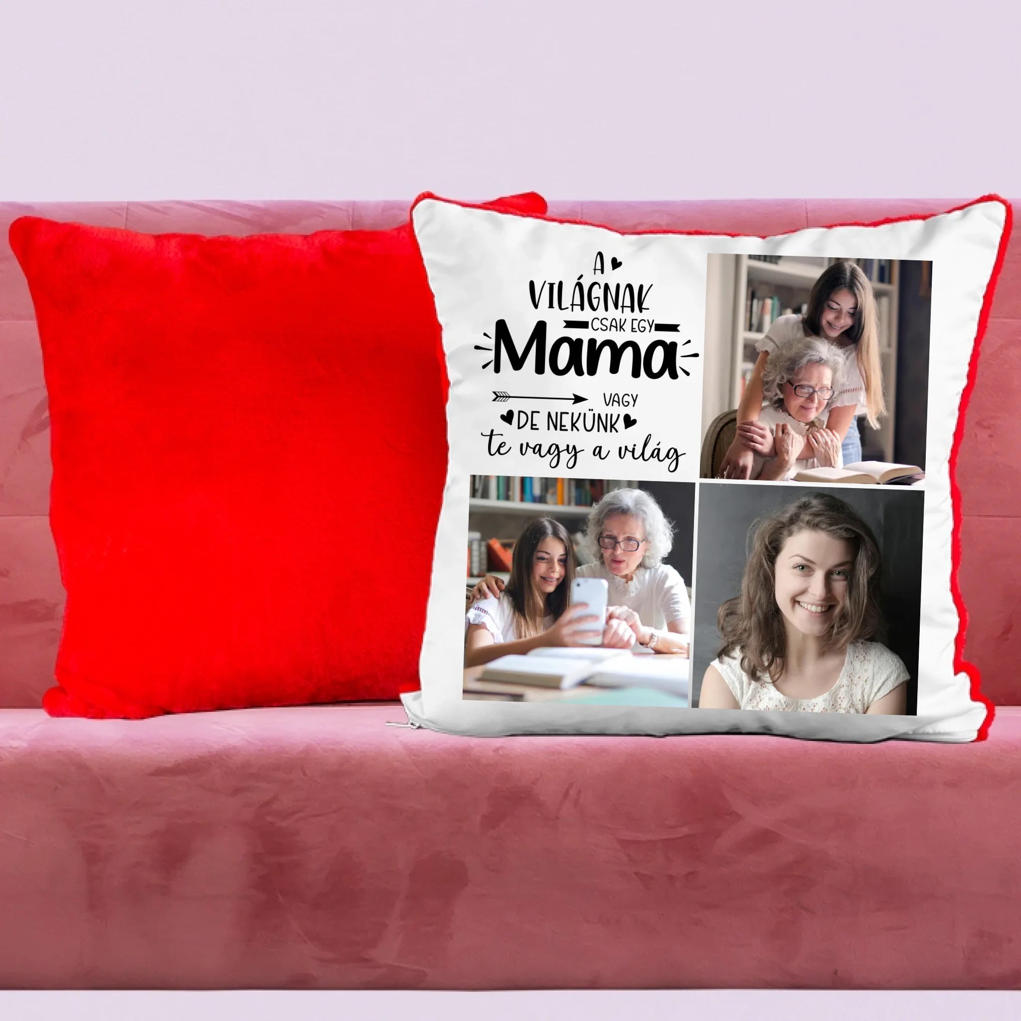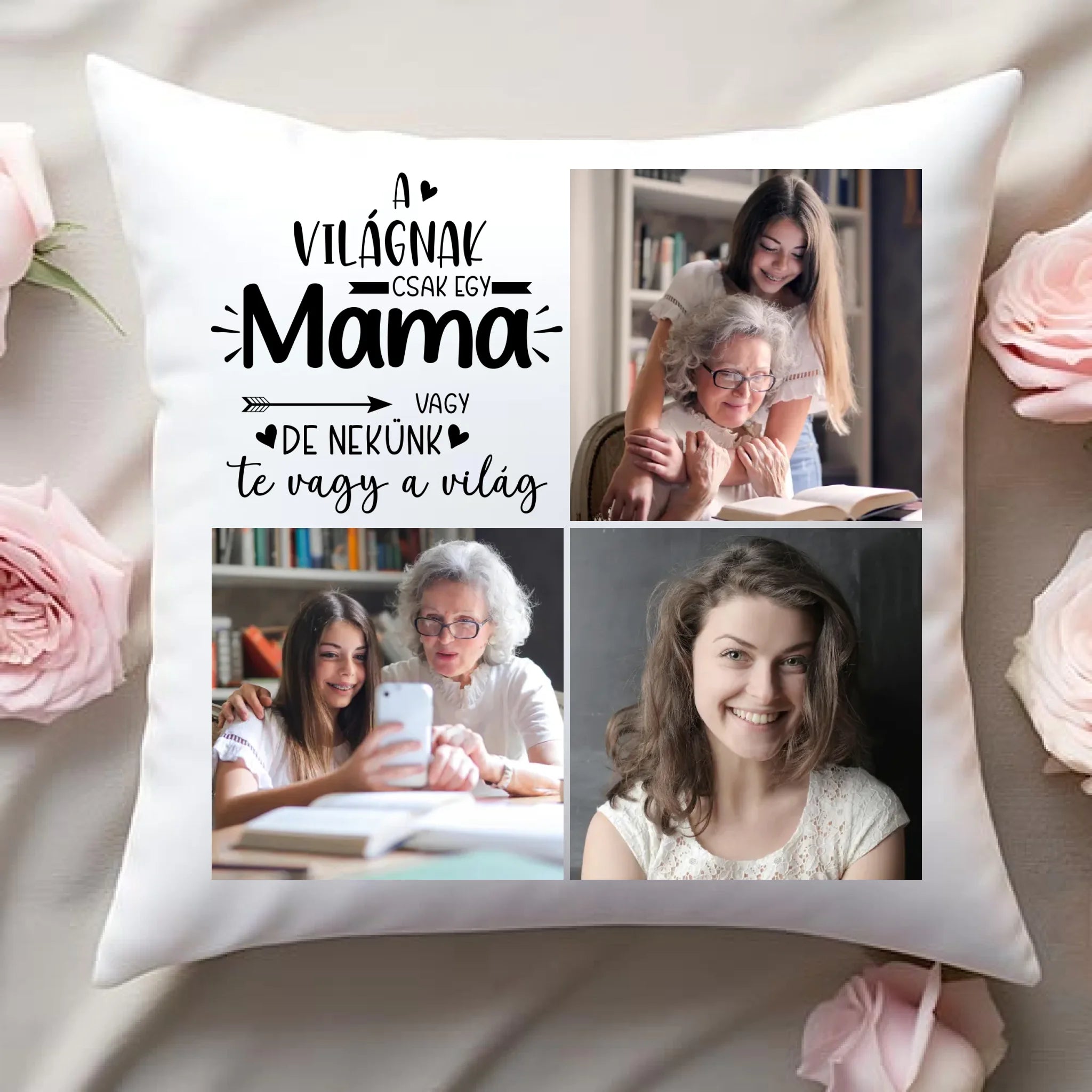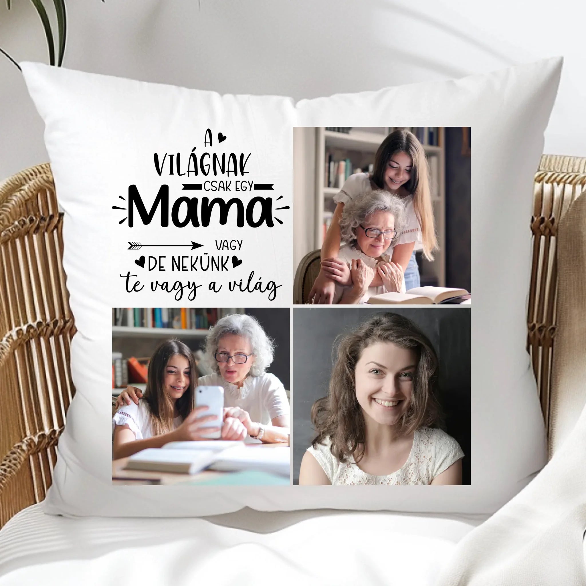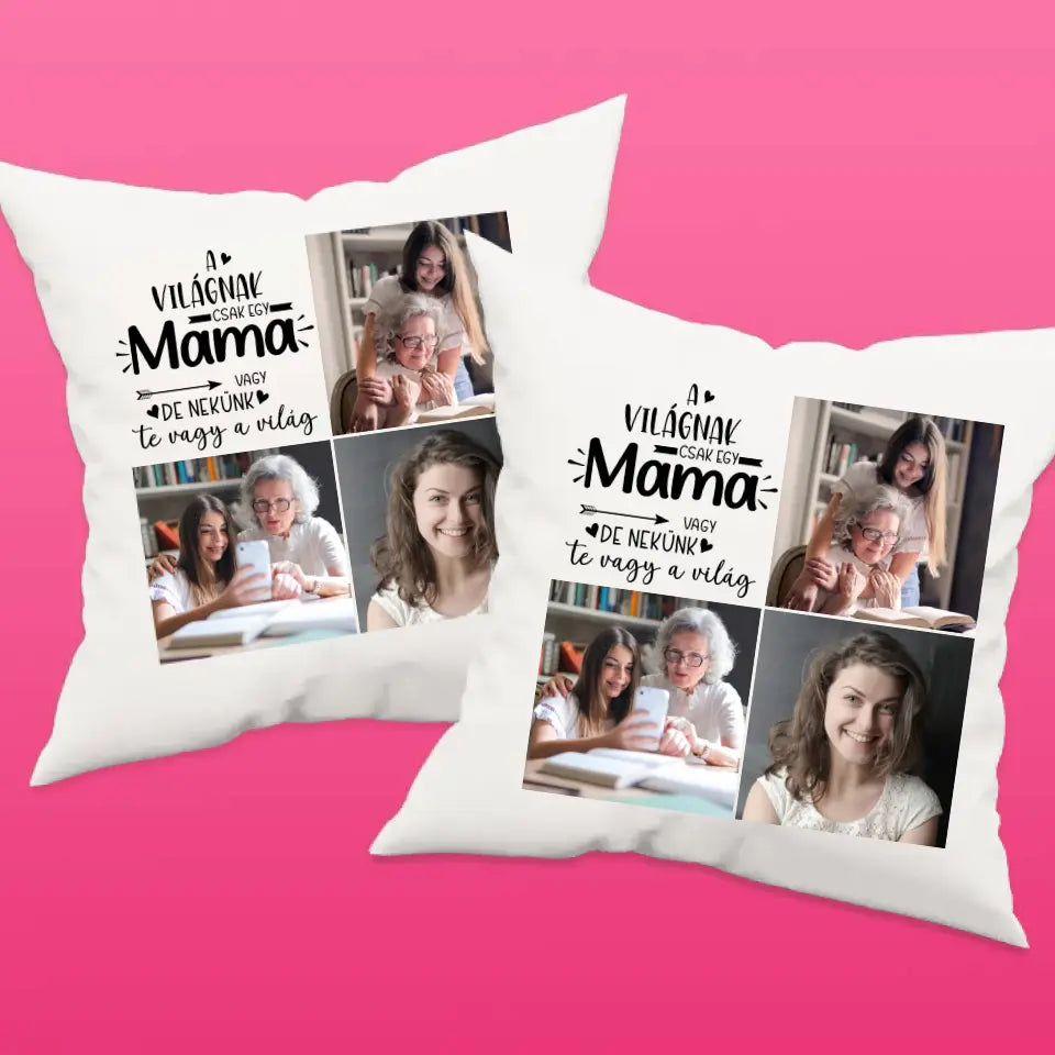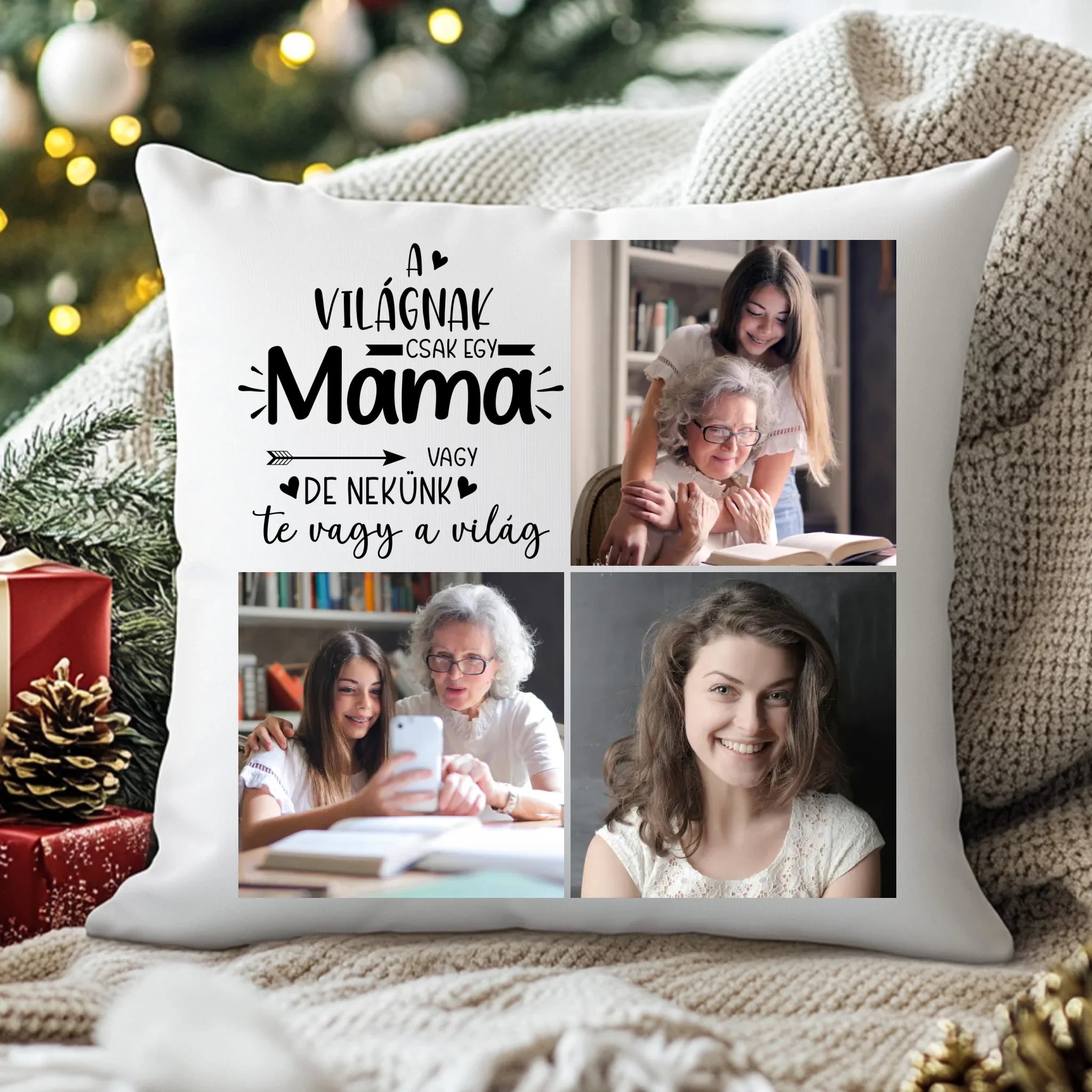 Egyedi fényképes párna mamának 3 fotóval és felirattal.