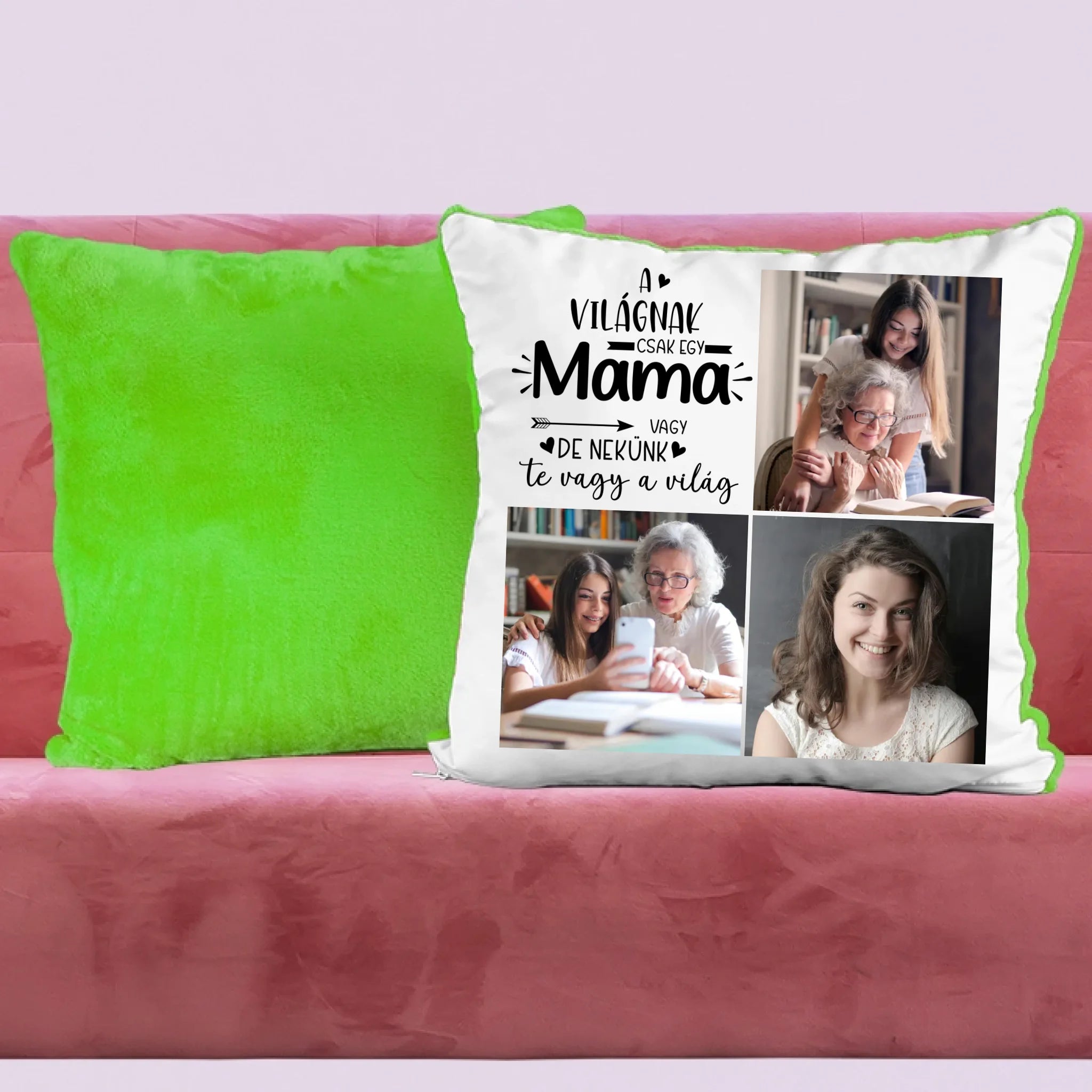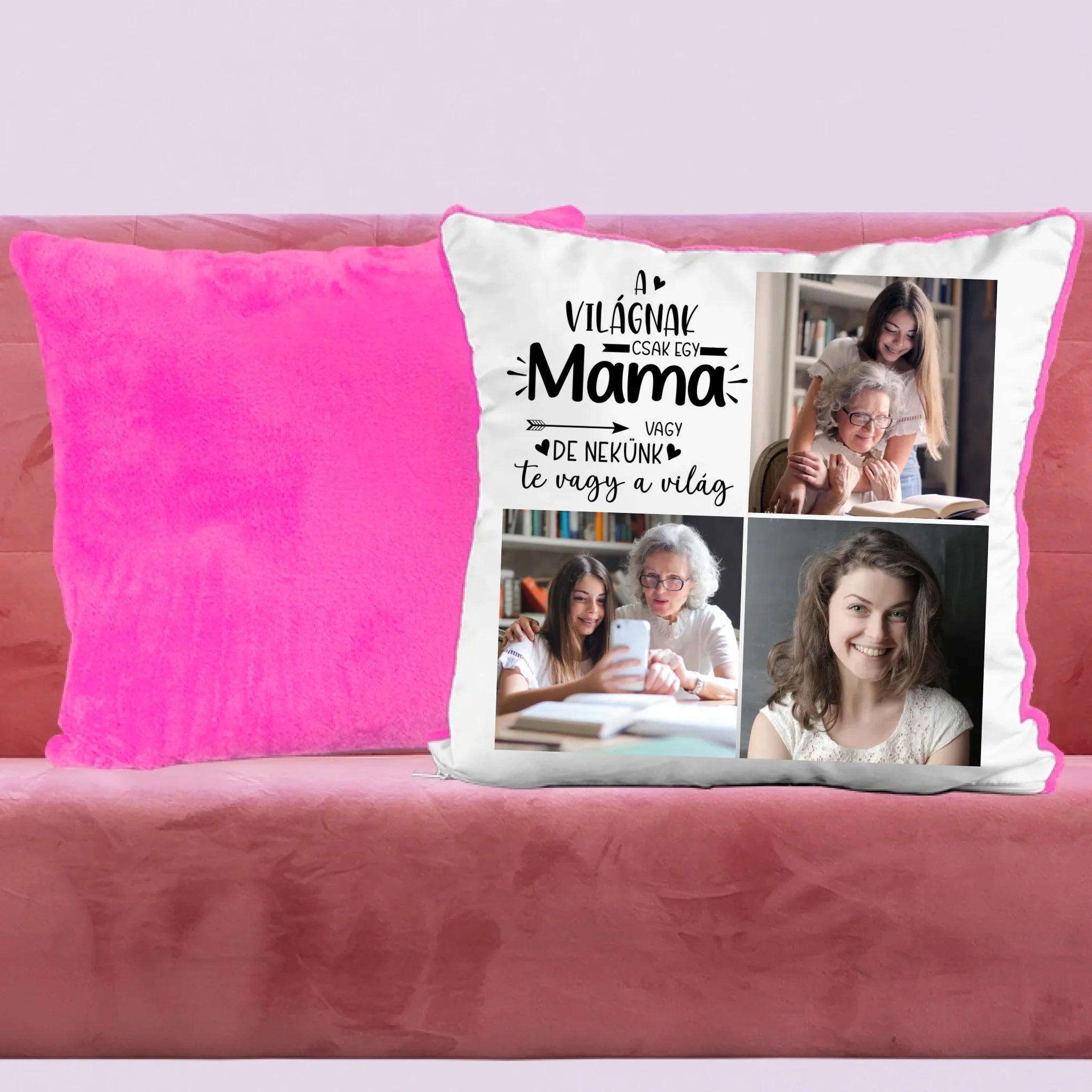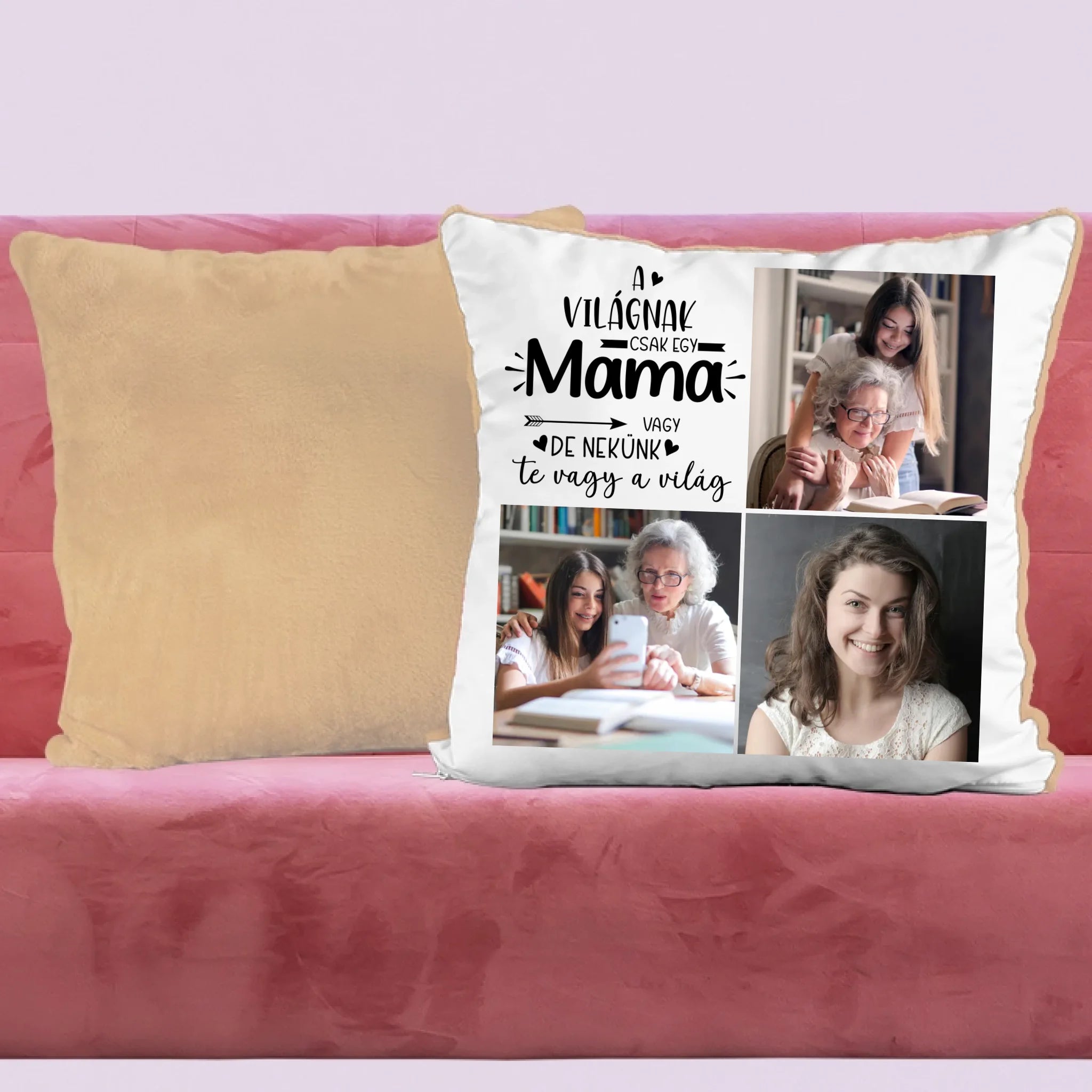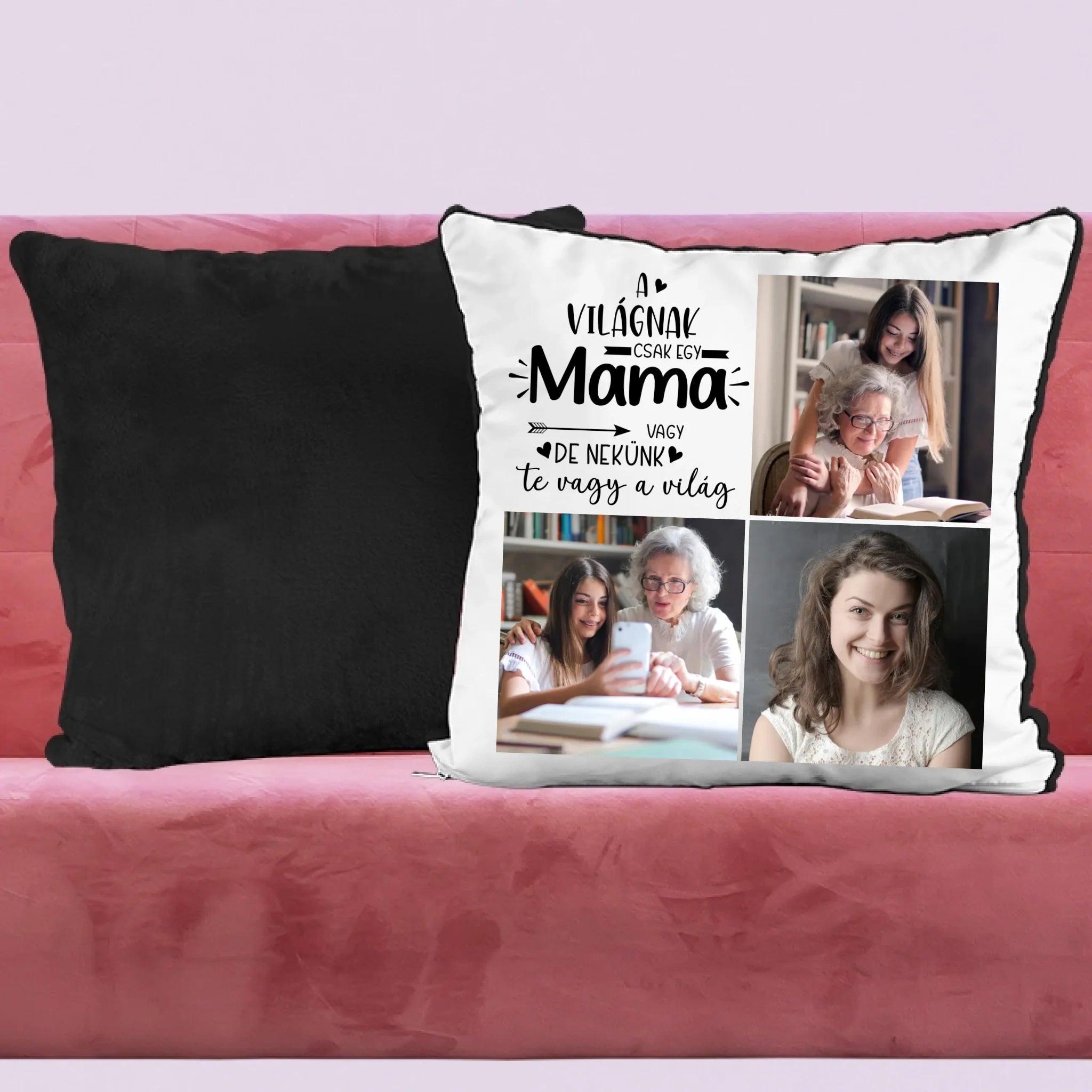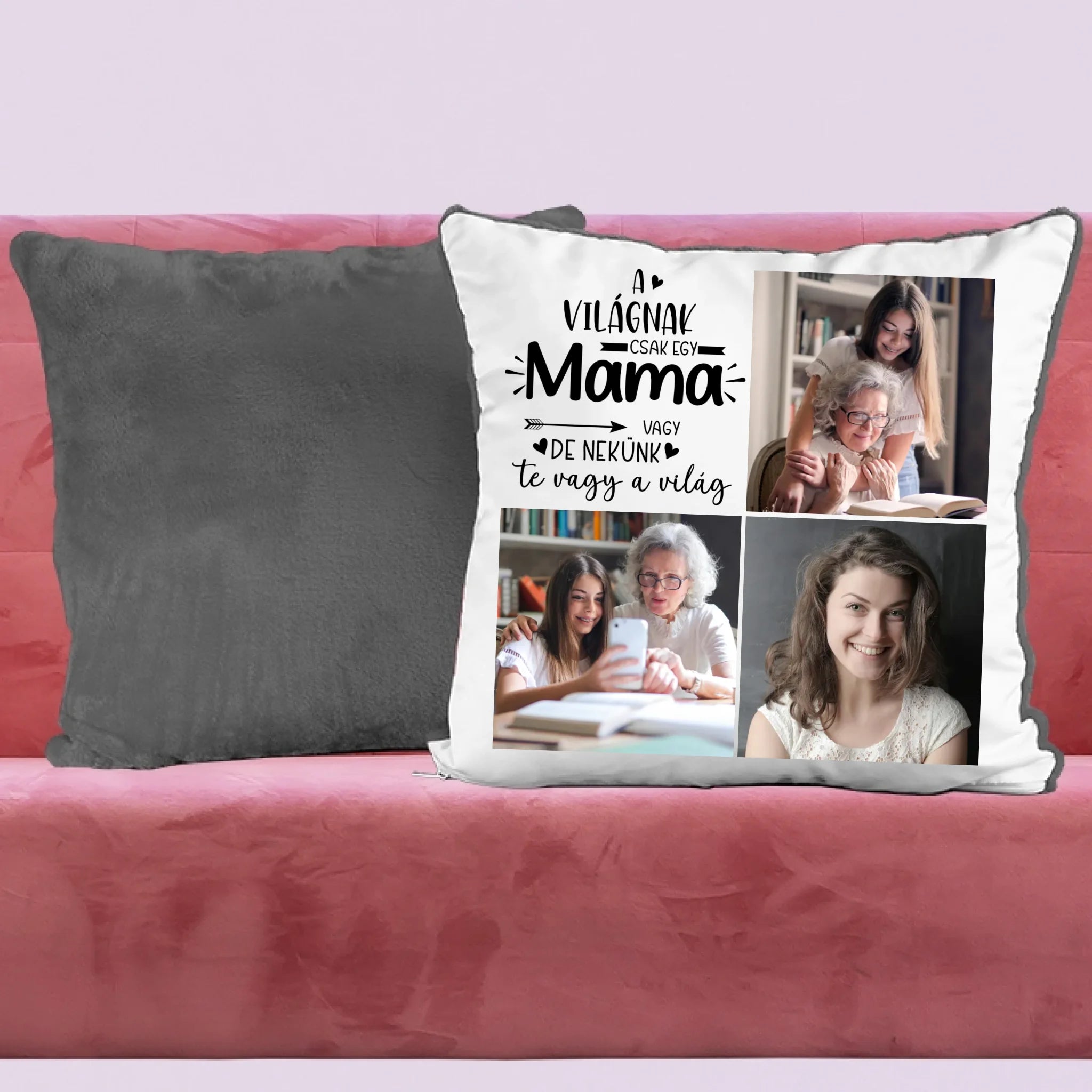 Egyedi fényképes párna mamának 3 fotóval és felirattal.