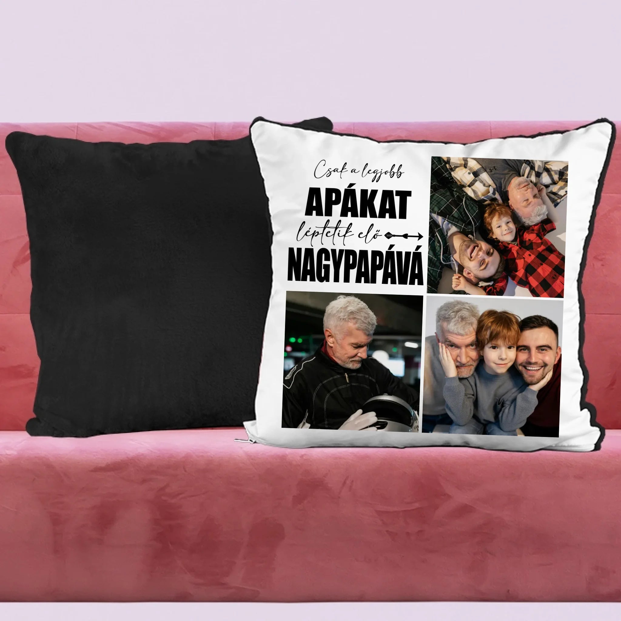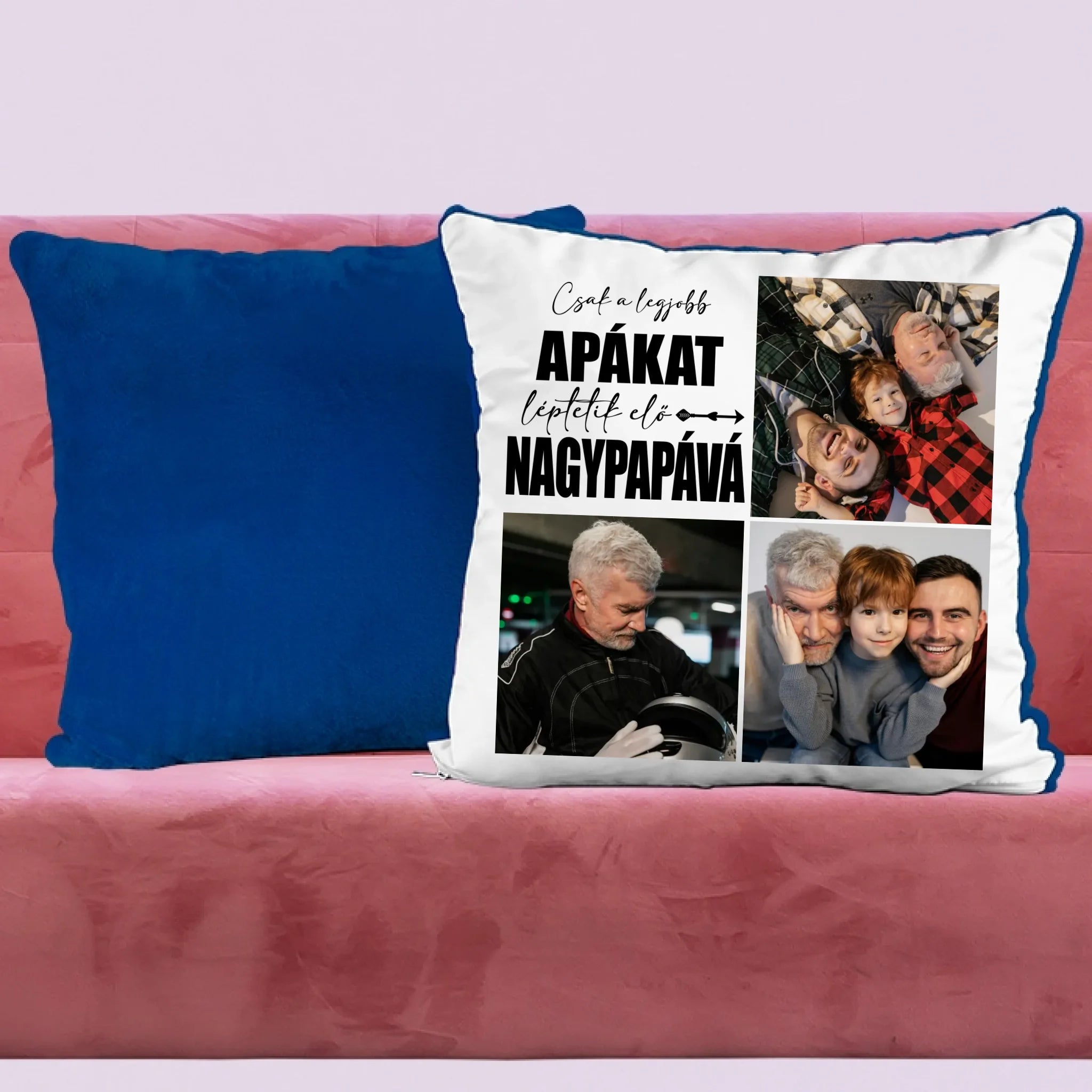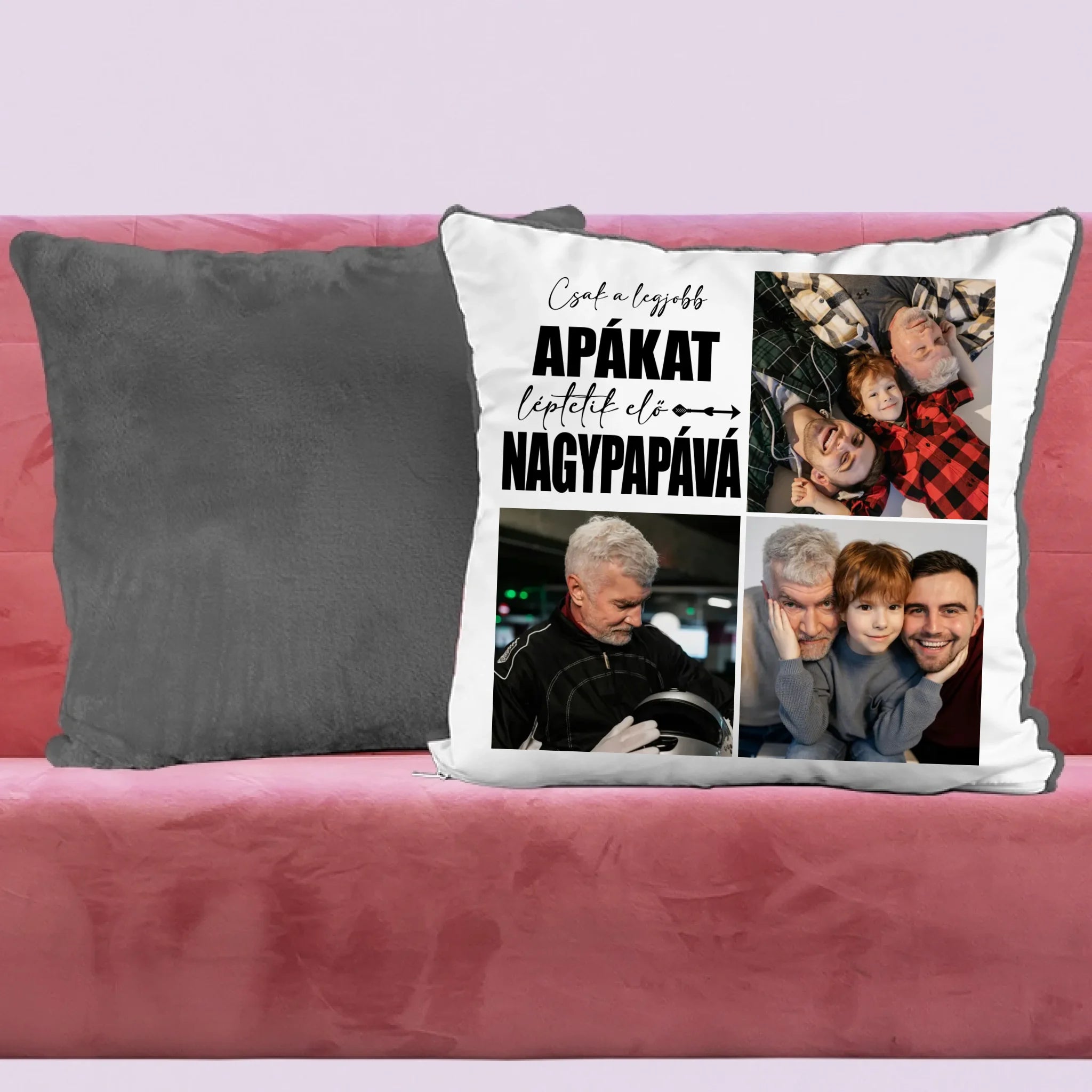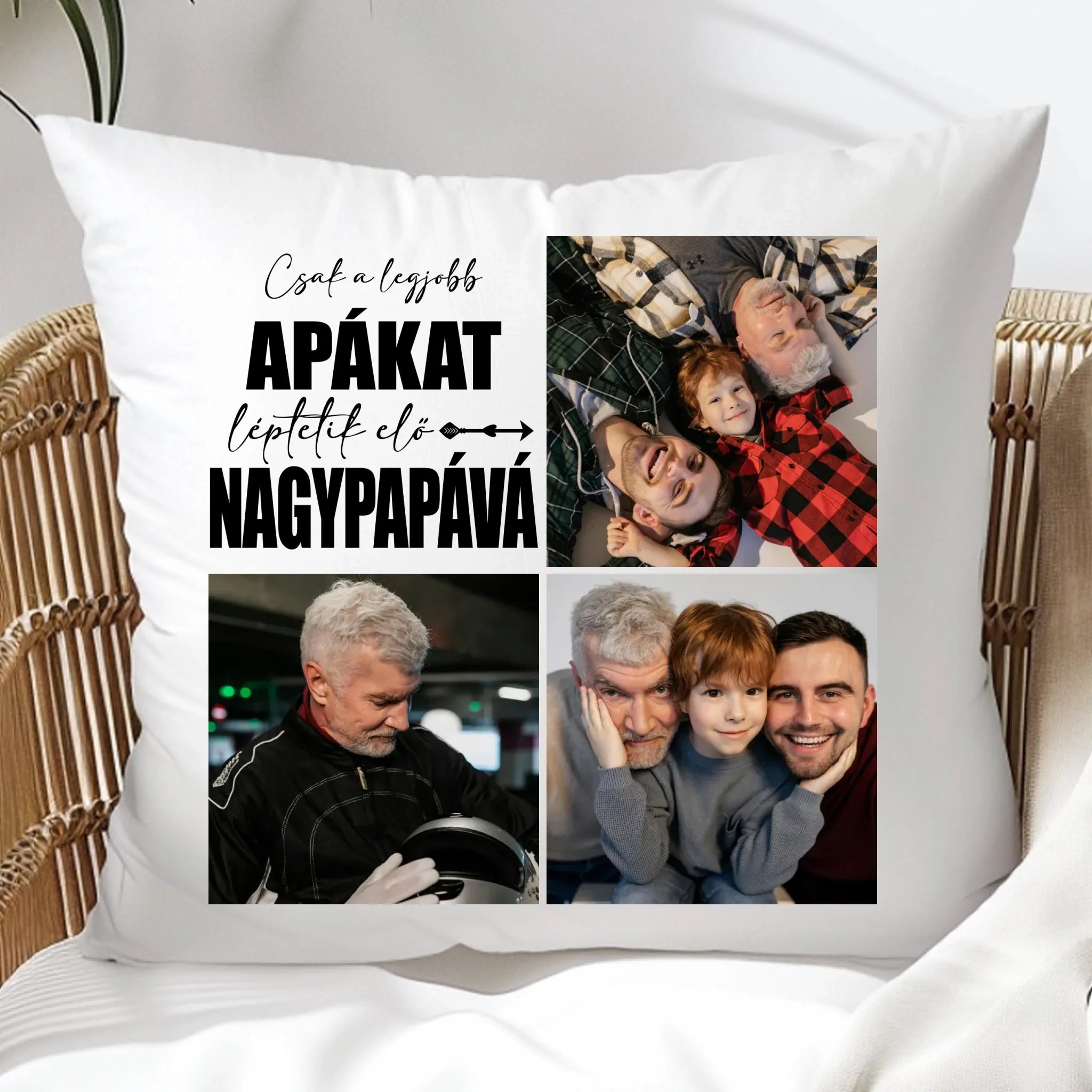 Egyedi fényképes párna papának 3 fotóval és felirattal.