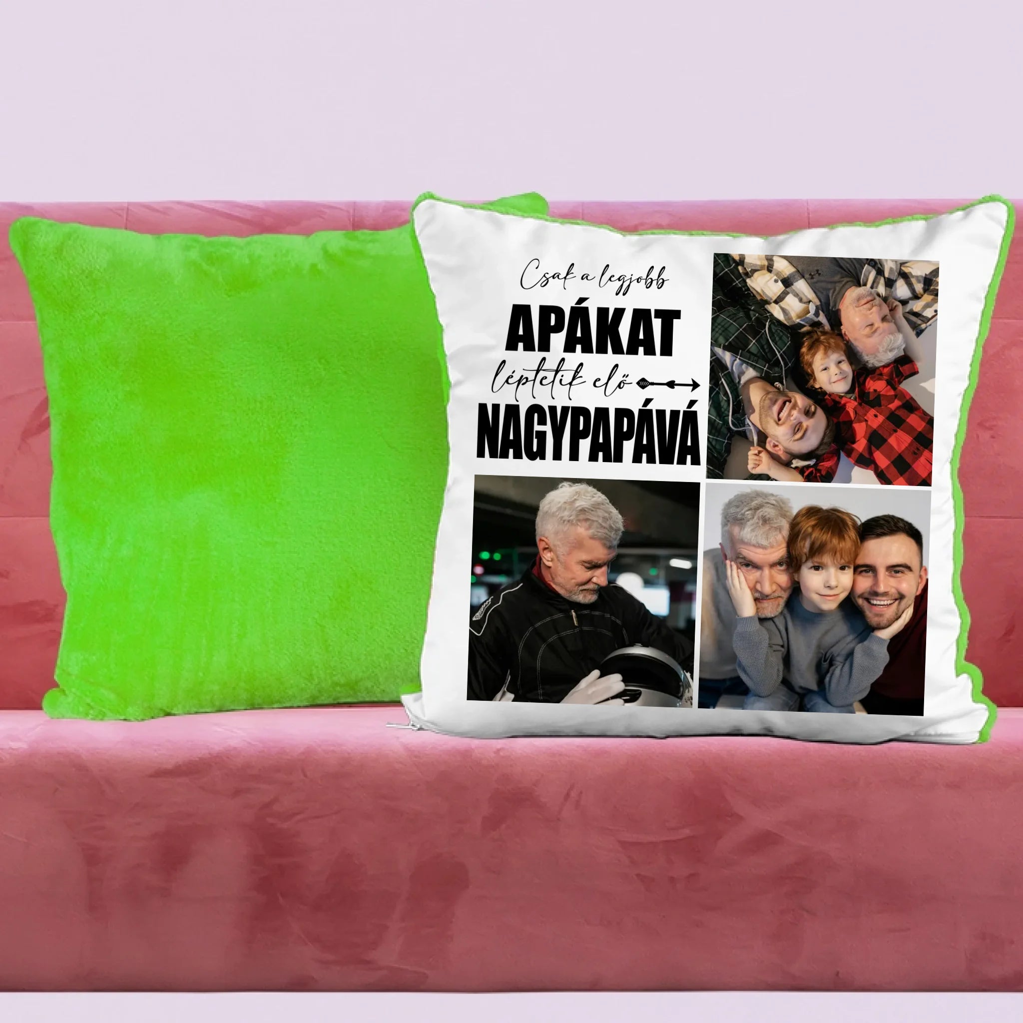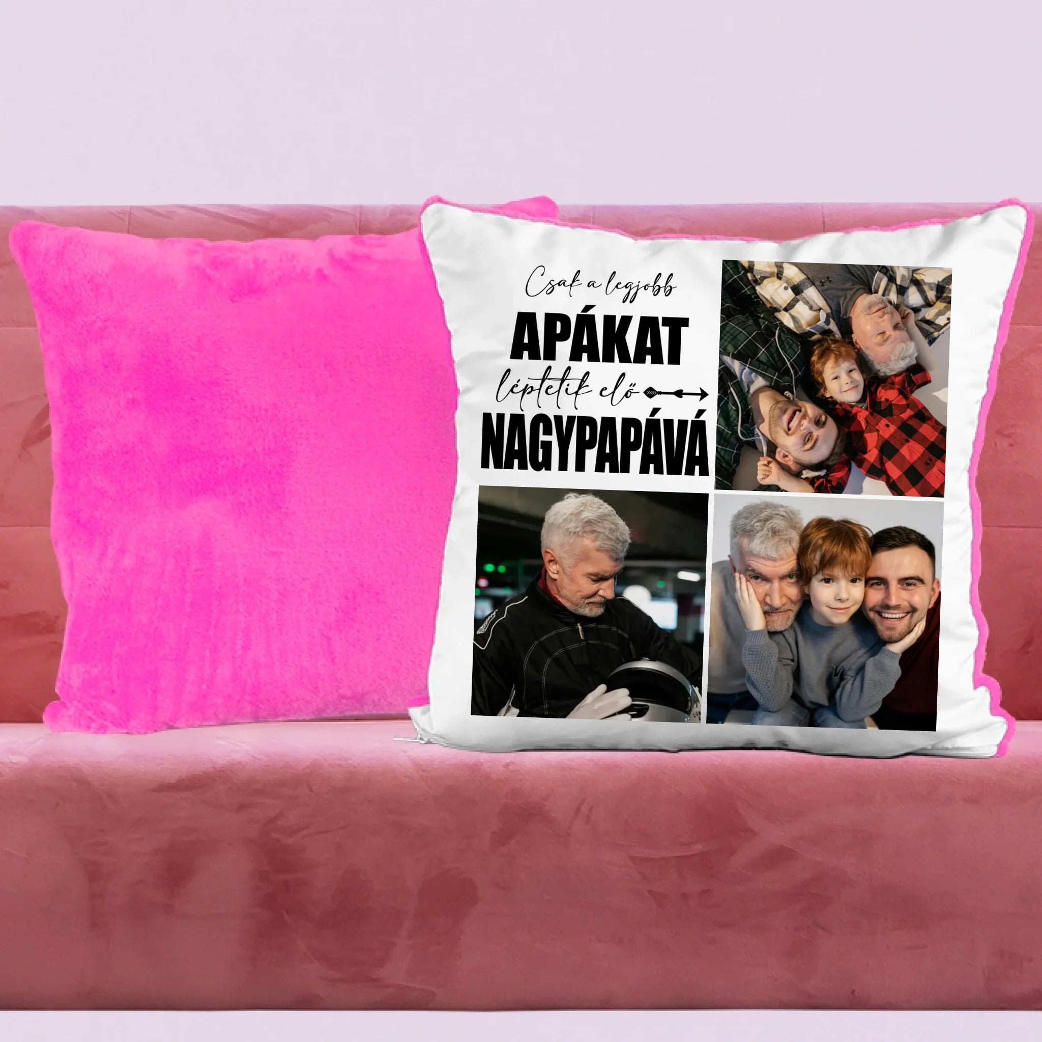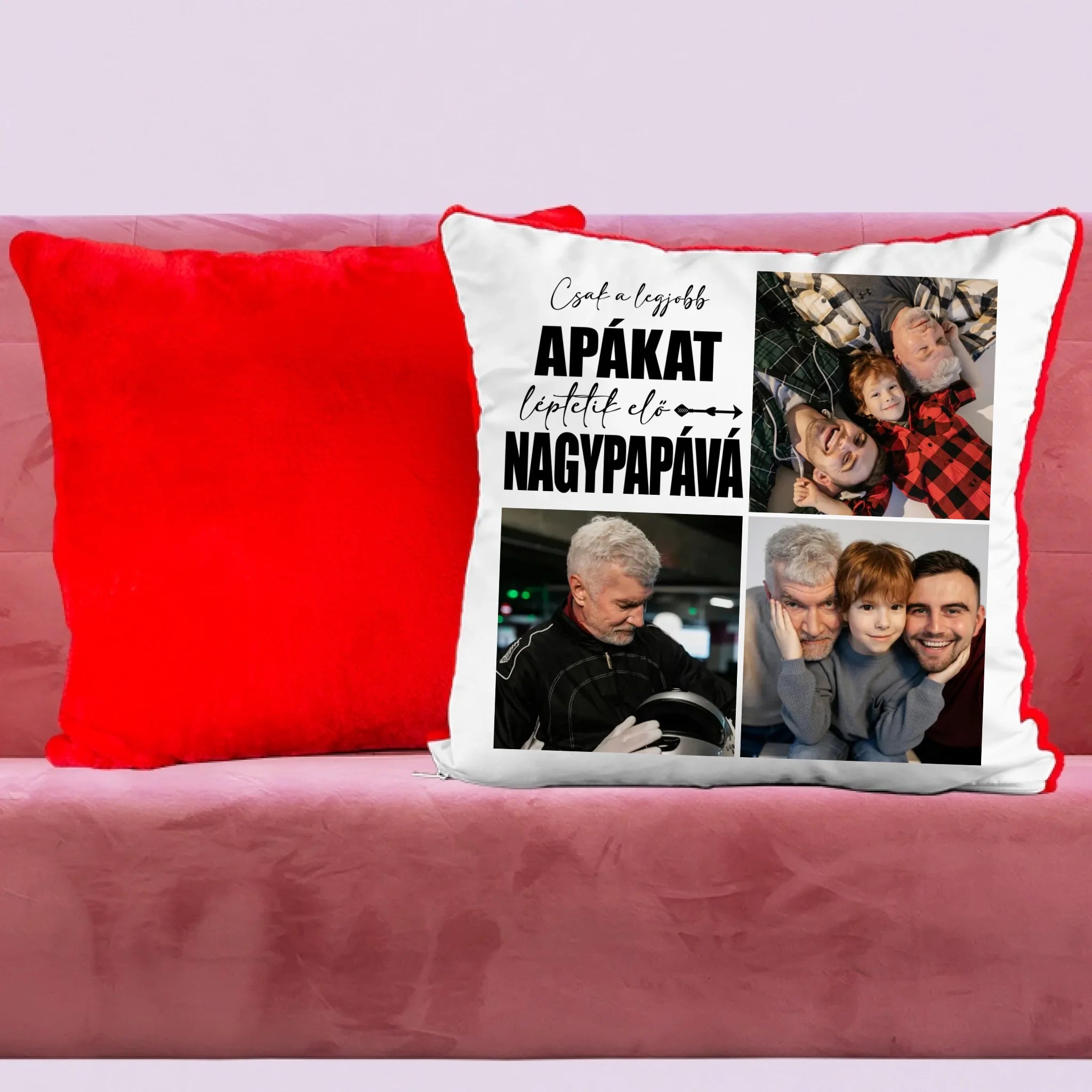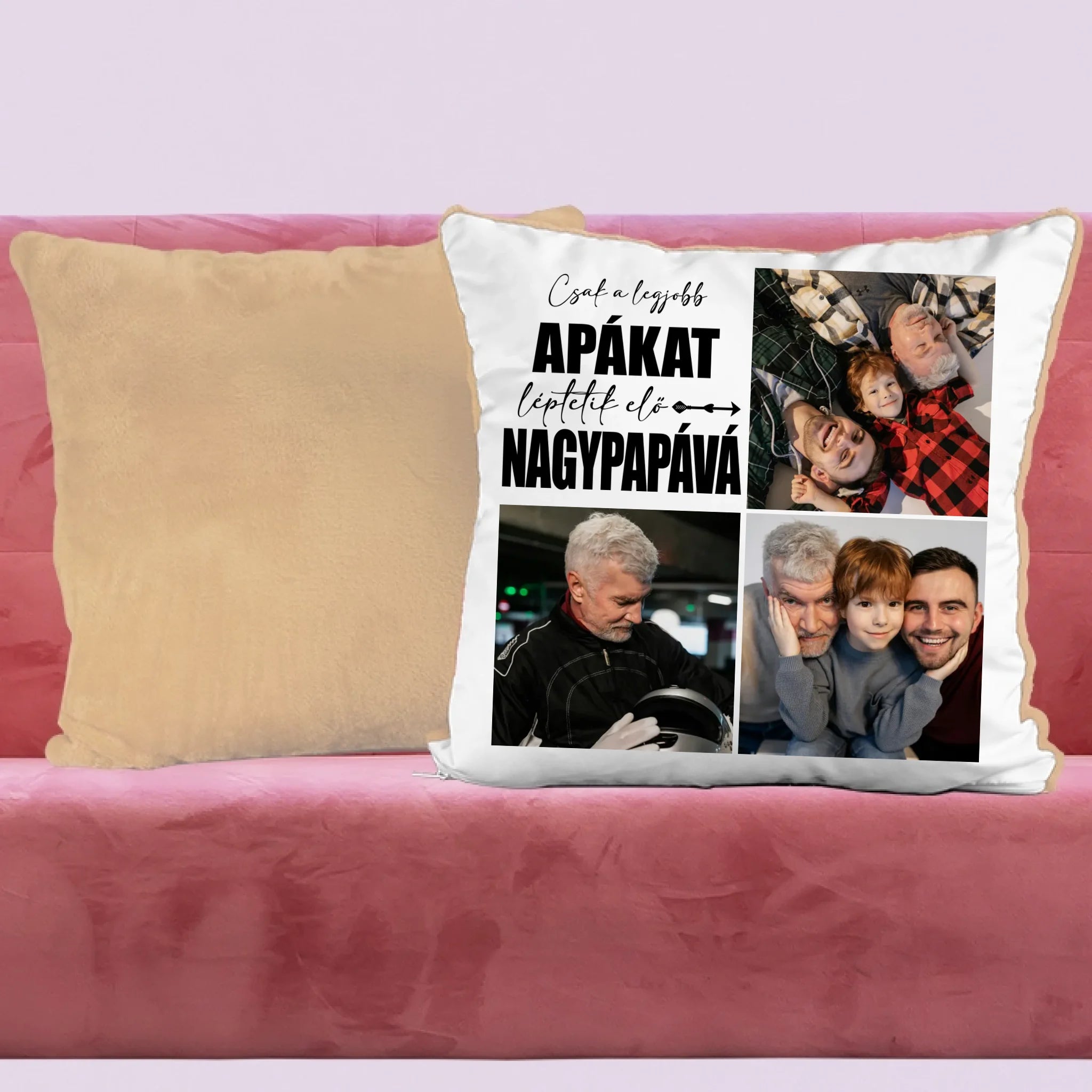 Egyedi fényképes párna papának 3 fotóval és felirattal.