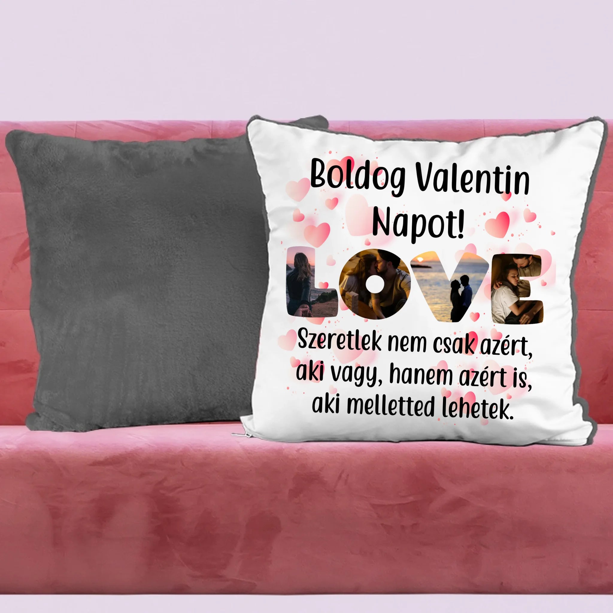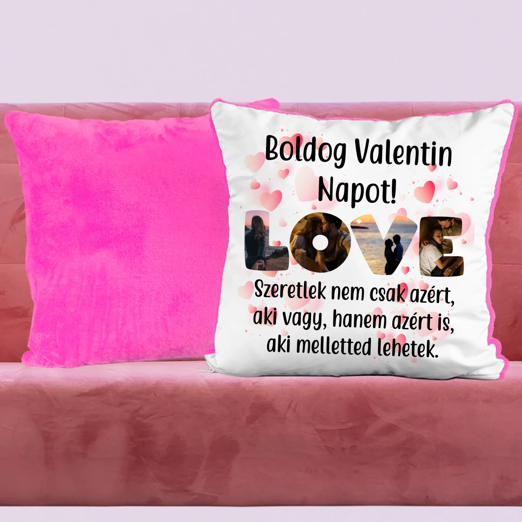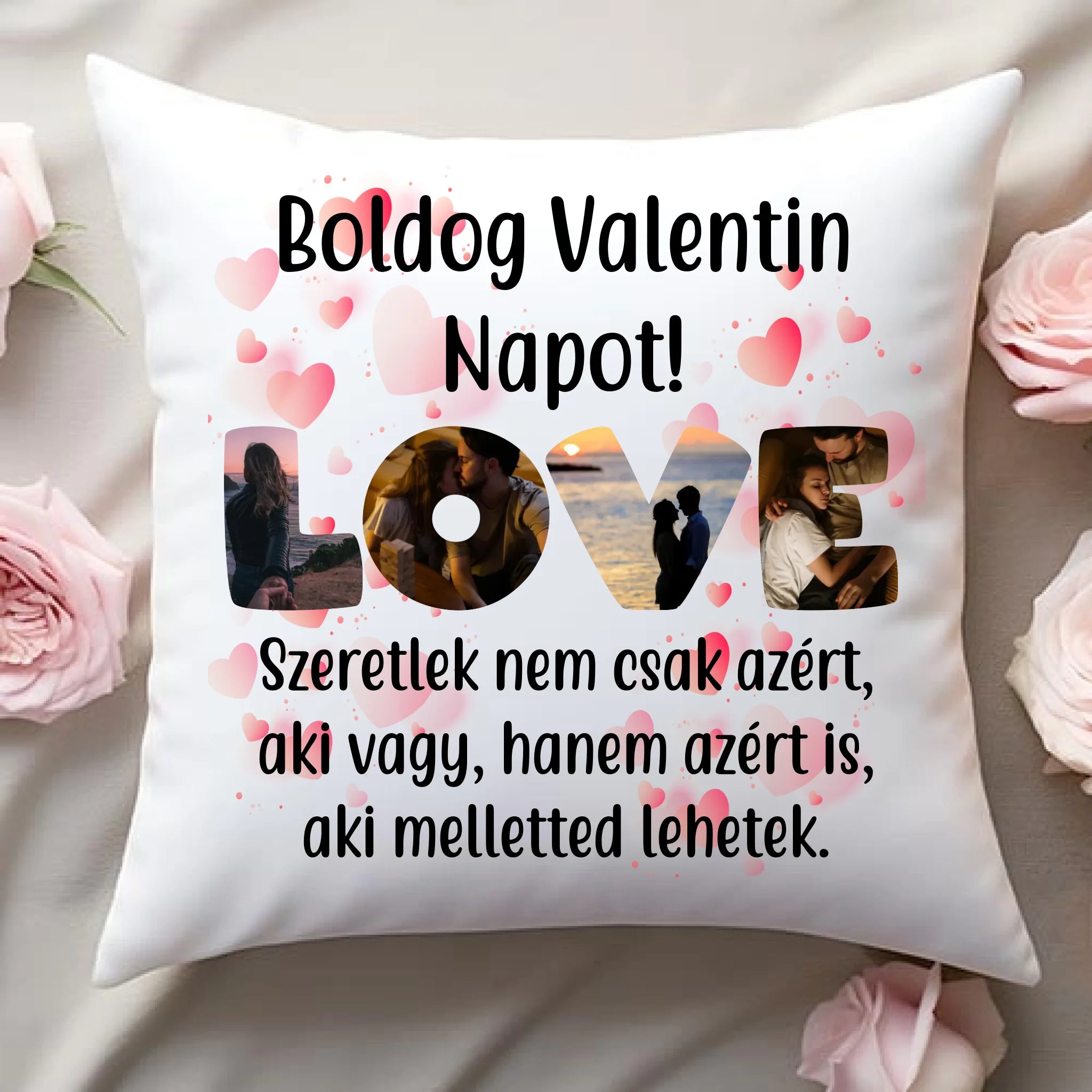 Valentin napi egyed fényképes párna, a Te saját fotóiddal személyre szabva.