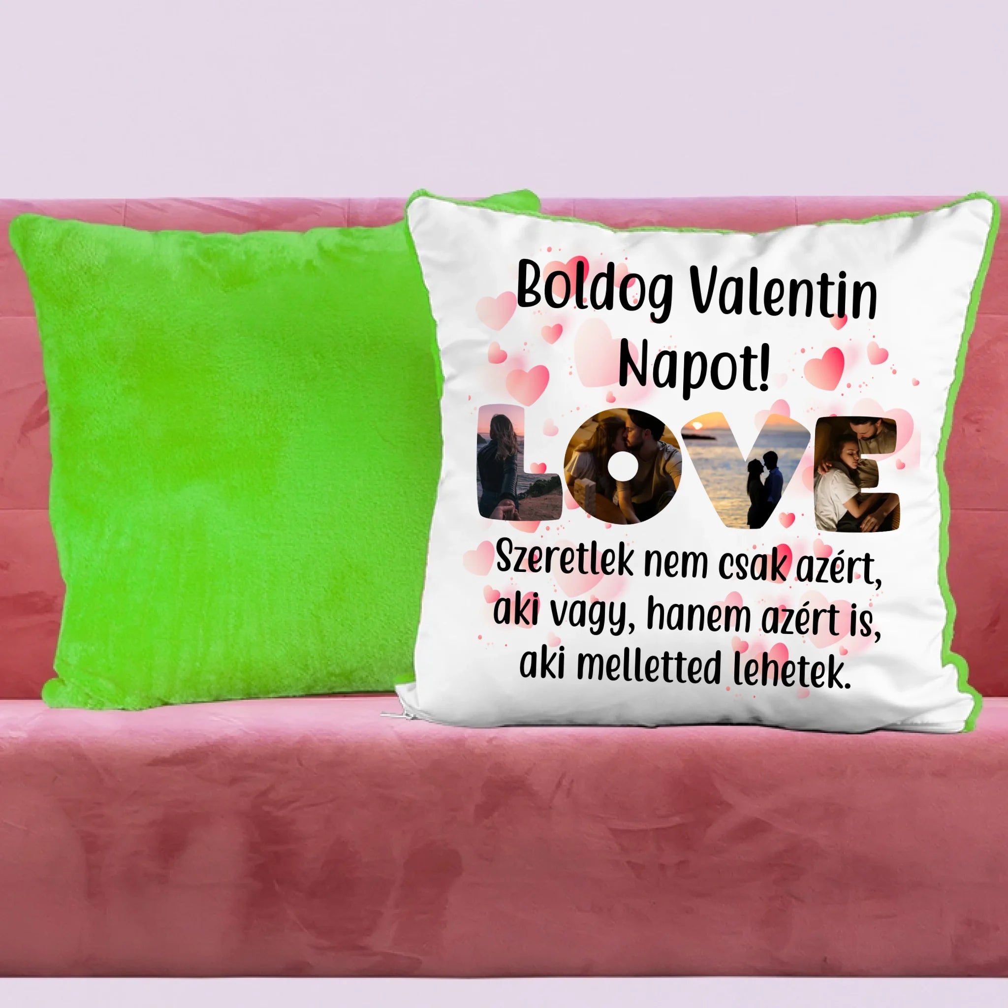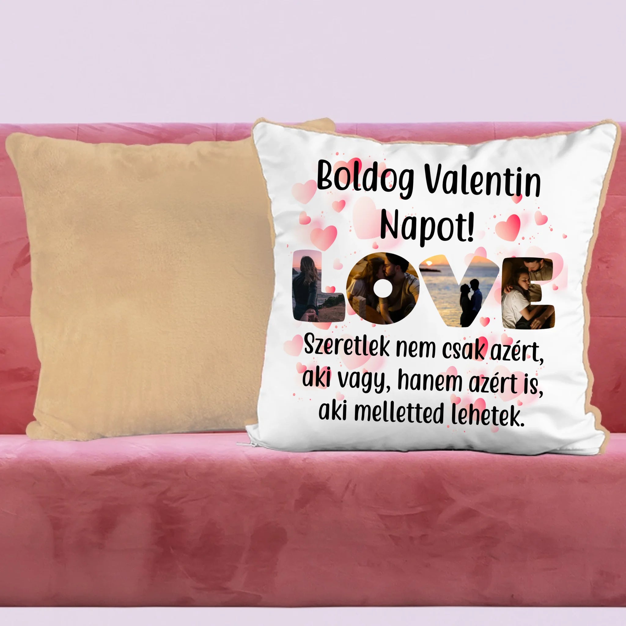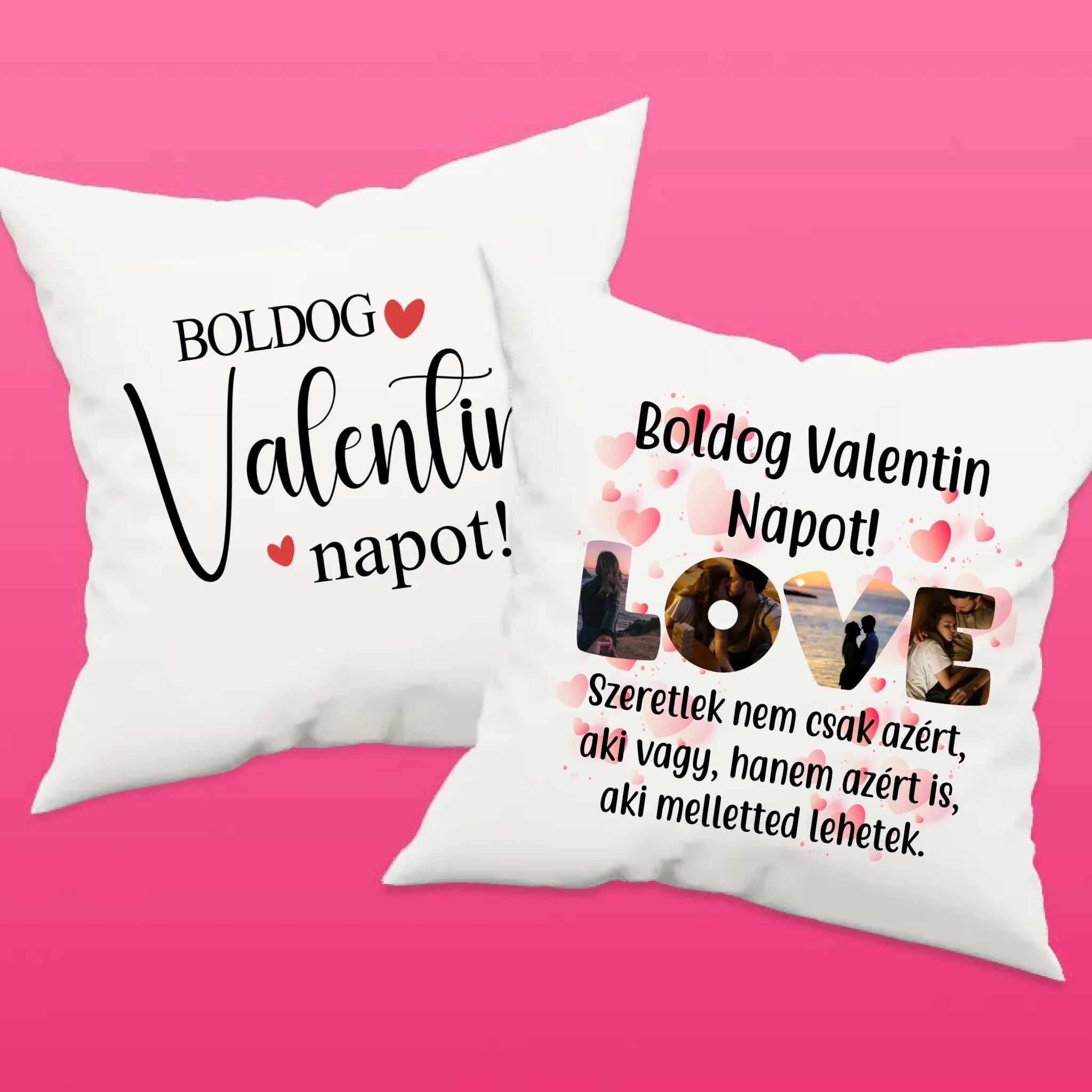 Valentin napi egyed fényképes párna, a Te saját fotóiddal személyre szabva.