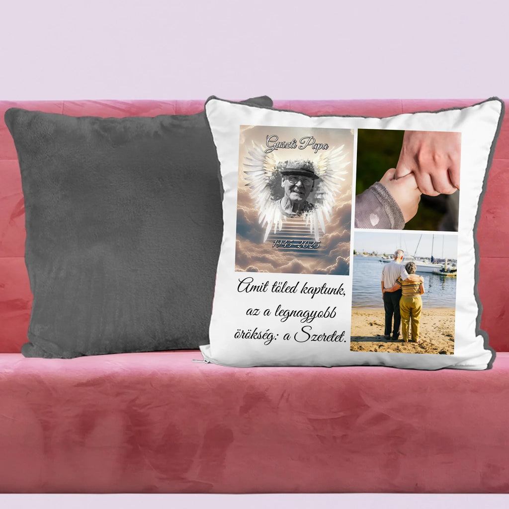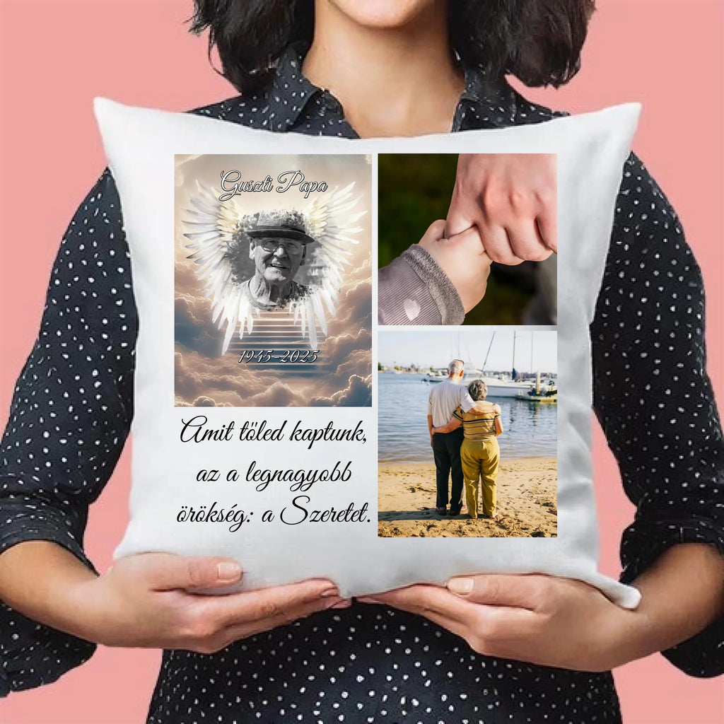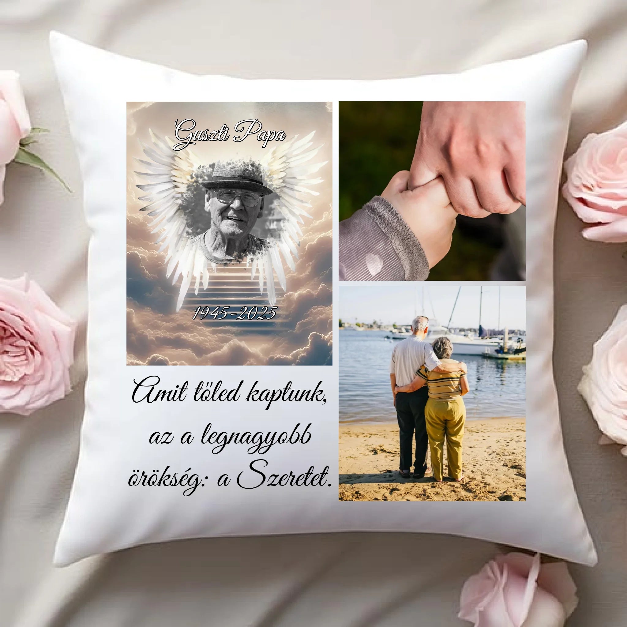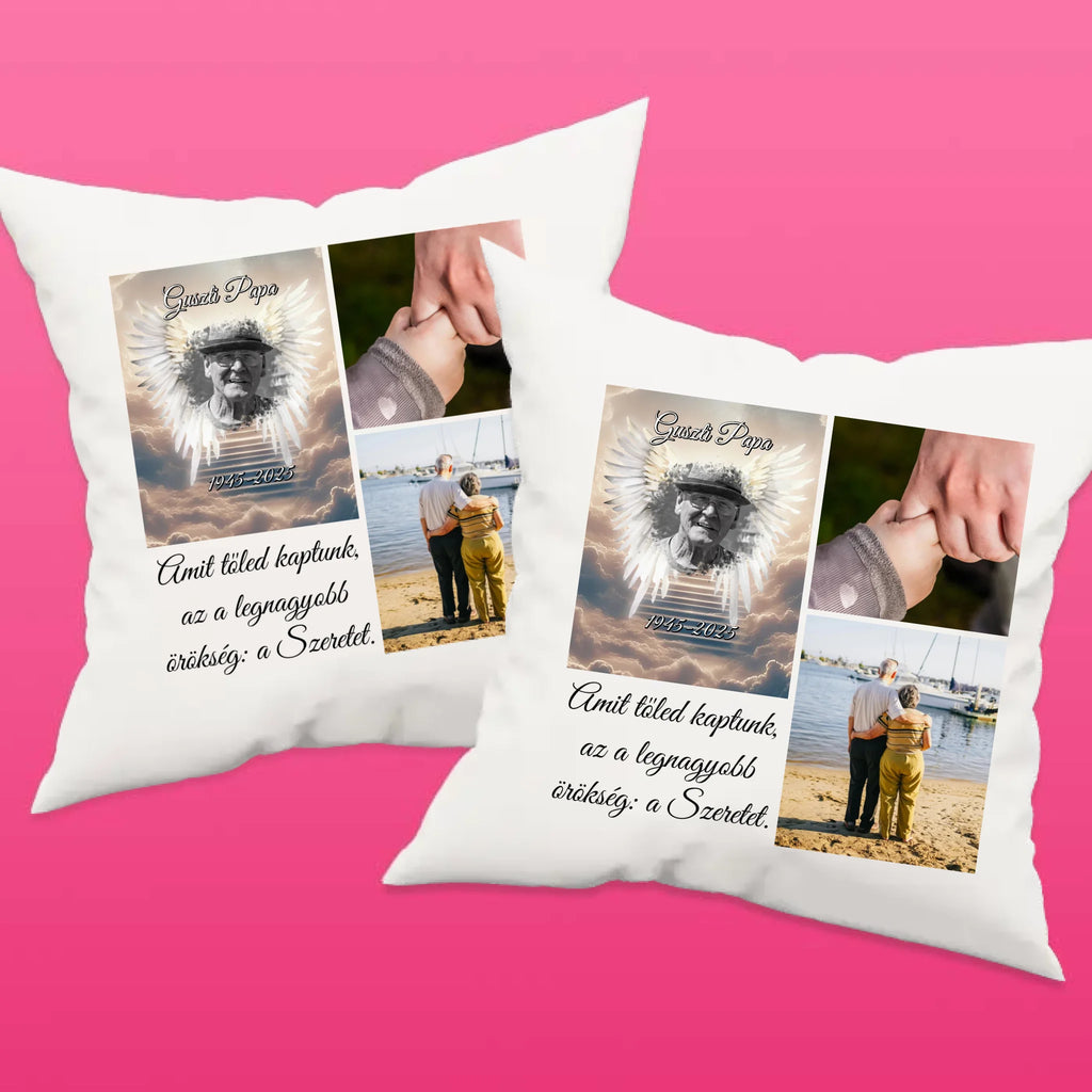 Emlékőrző egyedi párna angyal minta 3 képpel