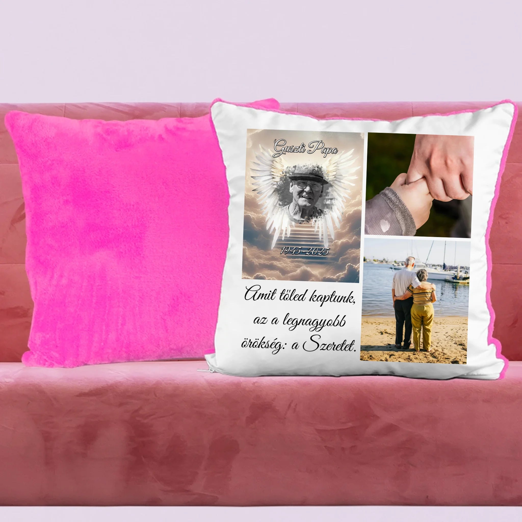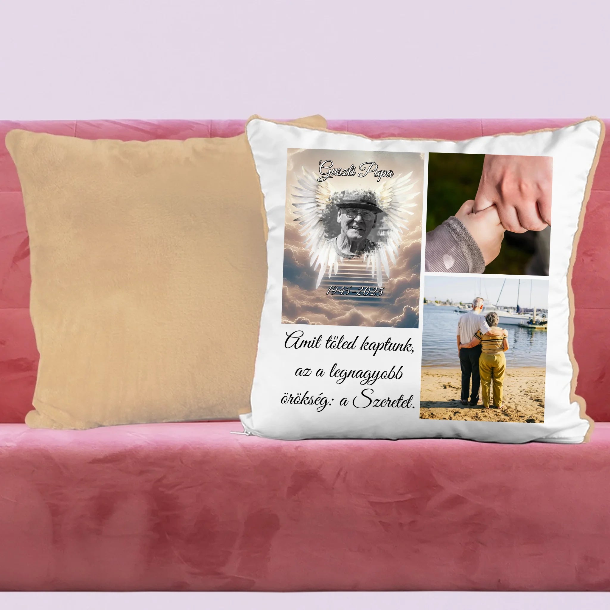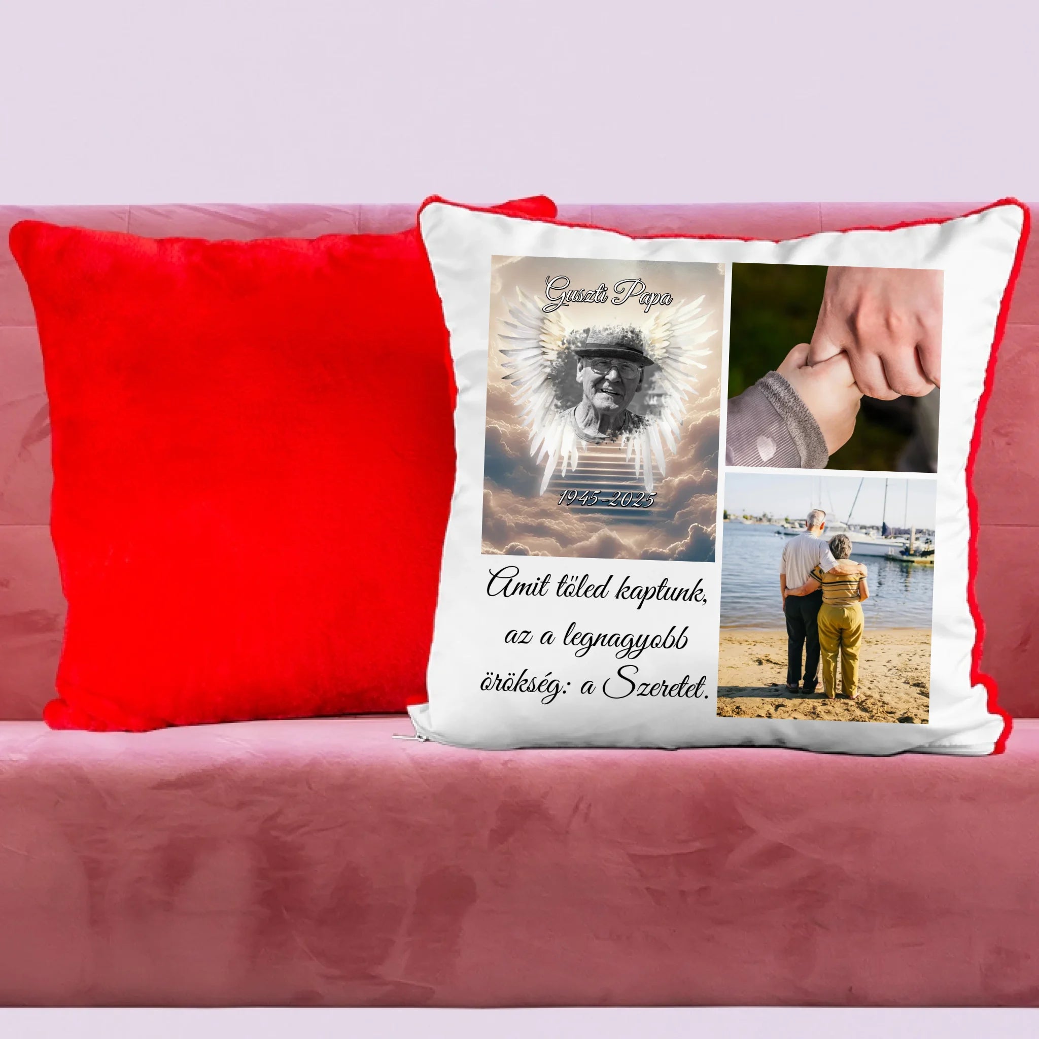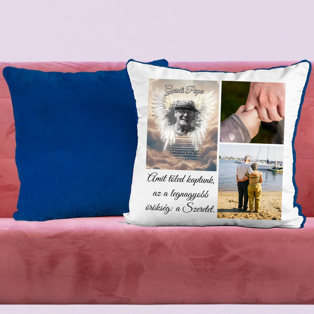 Emlékőrző egyedi párna angyal minta 3 képpel