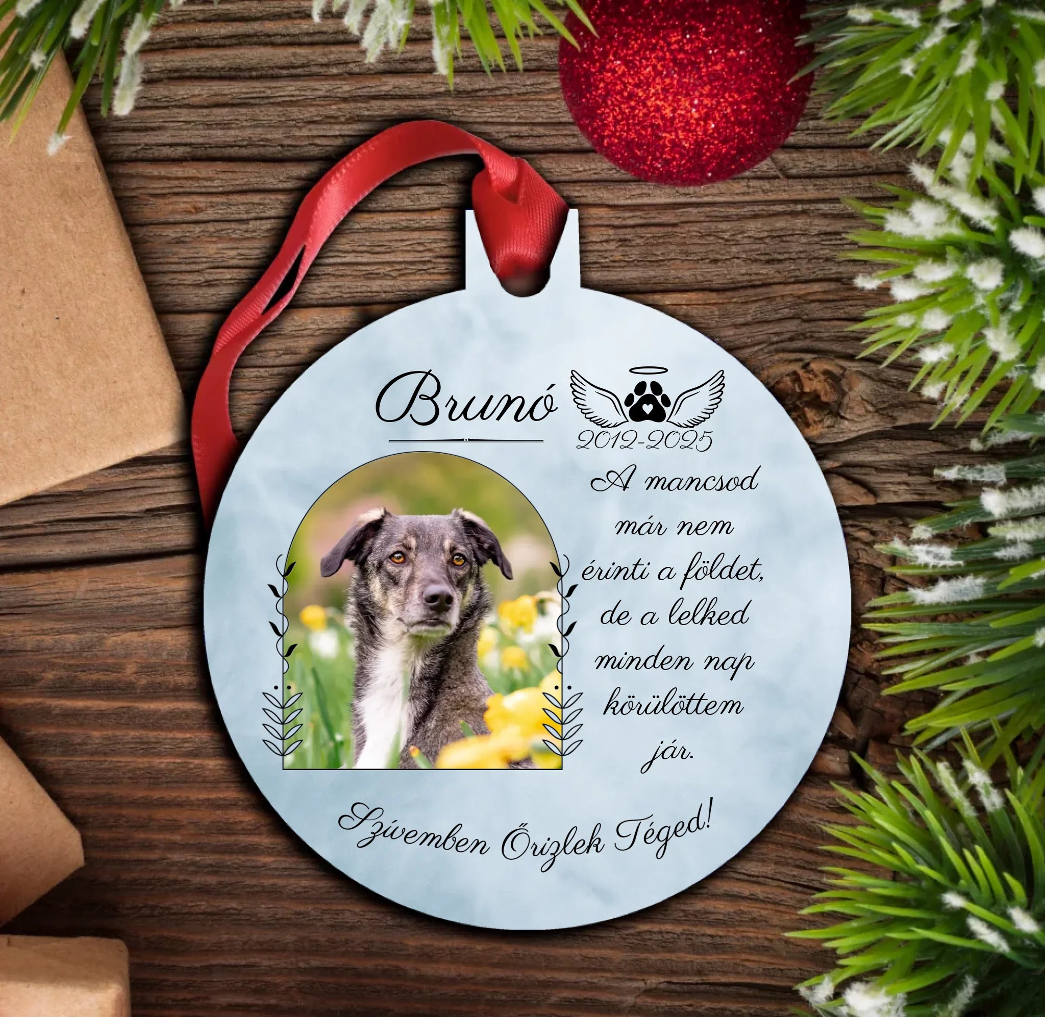 Tedd szívhez szólóvá az ünnepi dekorációt egy különleges, fényképes emlékőrző karácsonyfadísszel, amelyet kifejezetten gazdiknak tervezett dizájn tesz igazán egyedivé. A tartós préselt fa alap és az igényes mintázat meghitt, természetes hangulatot áraszt, miközben méltó emléket állít kedvencednek.