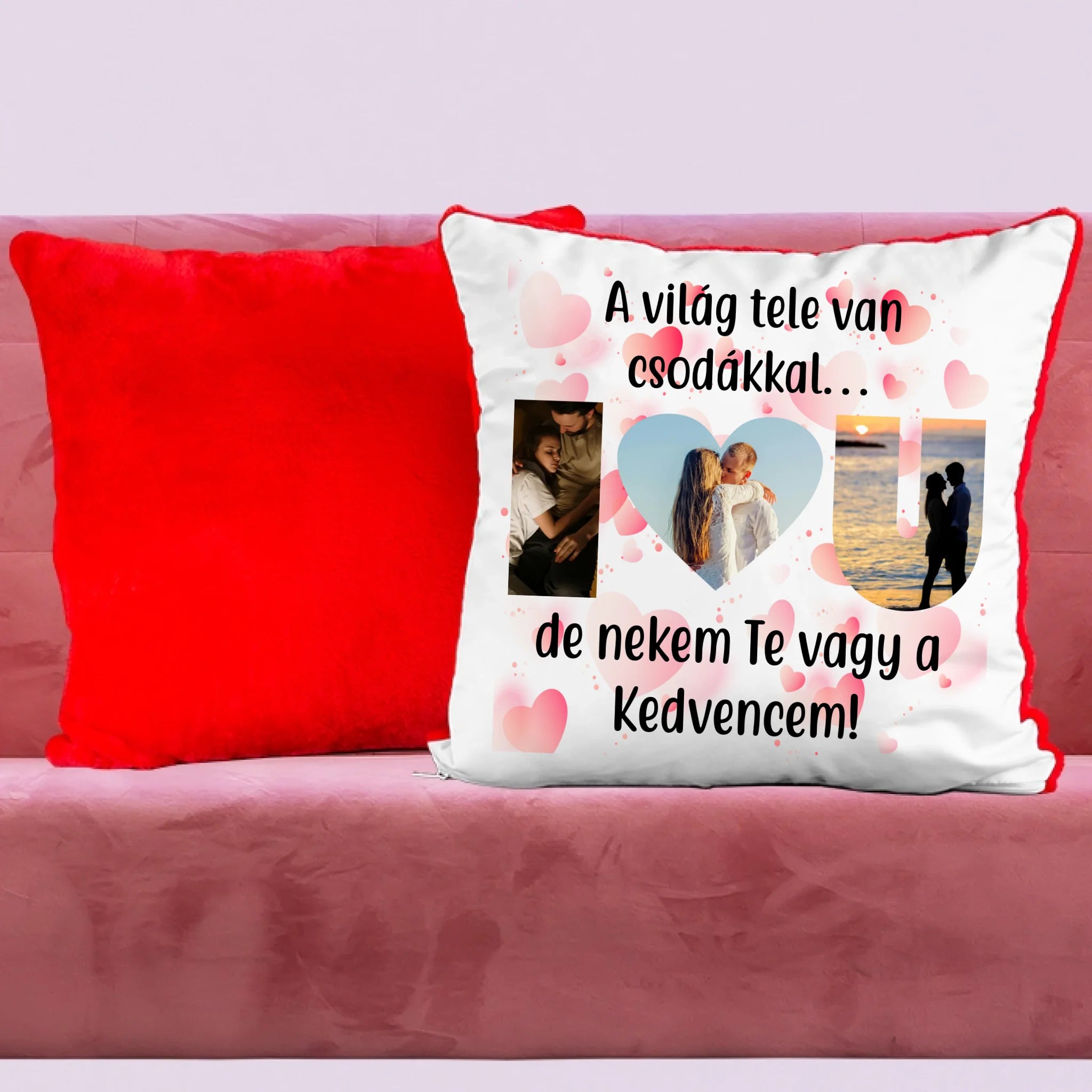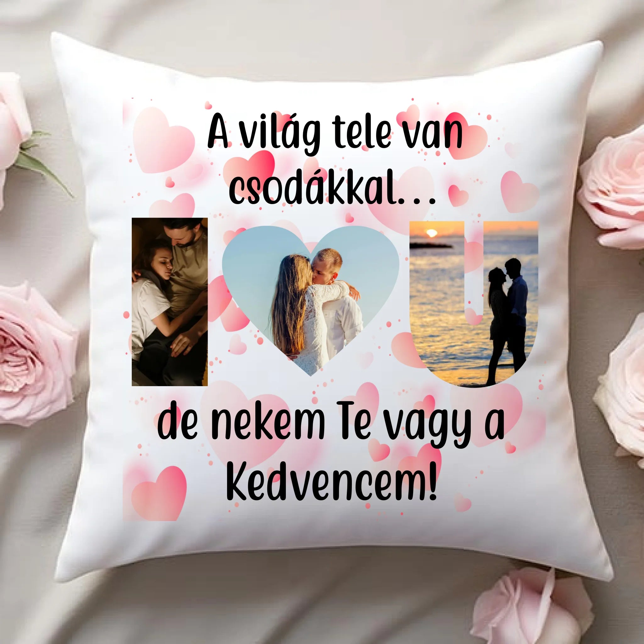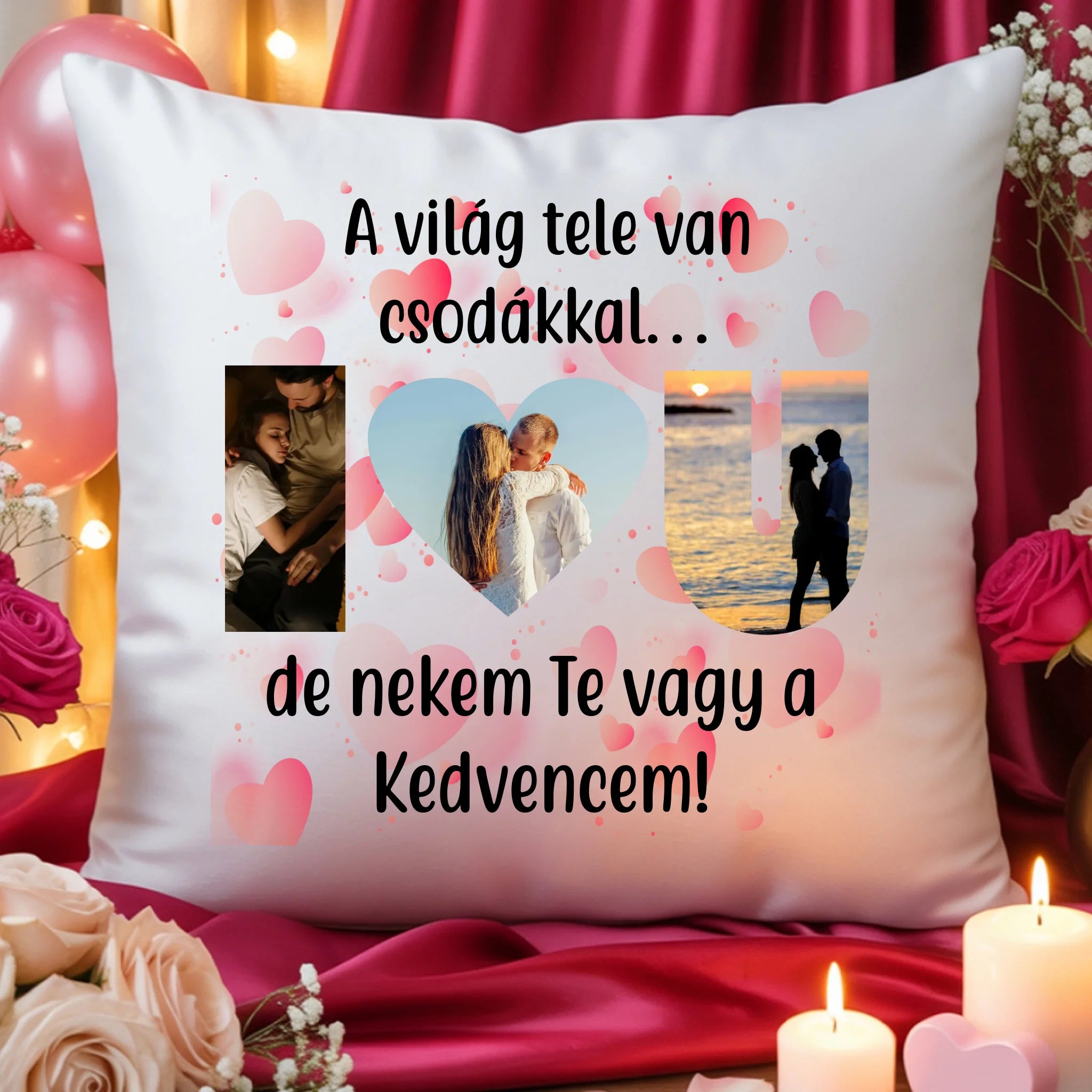 Valentin napi egyed fényképes párna, a Te saját fotóiddal személyre szabva.