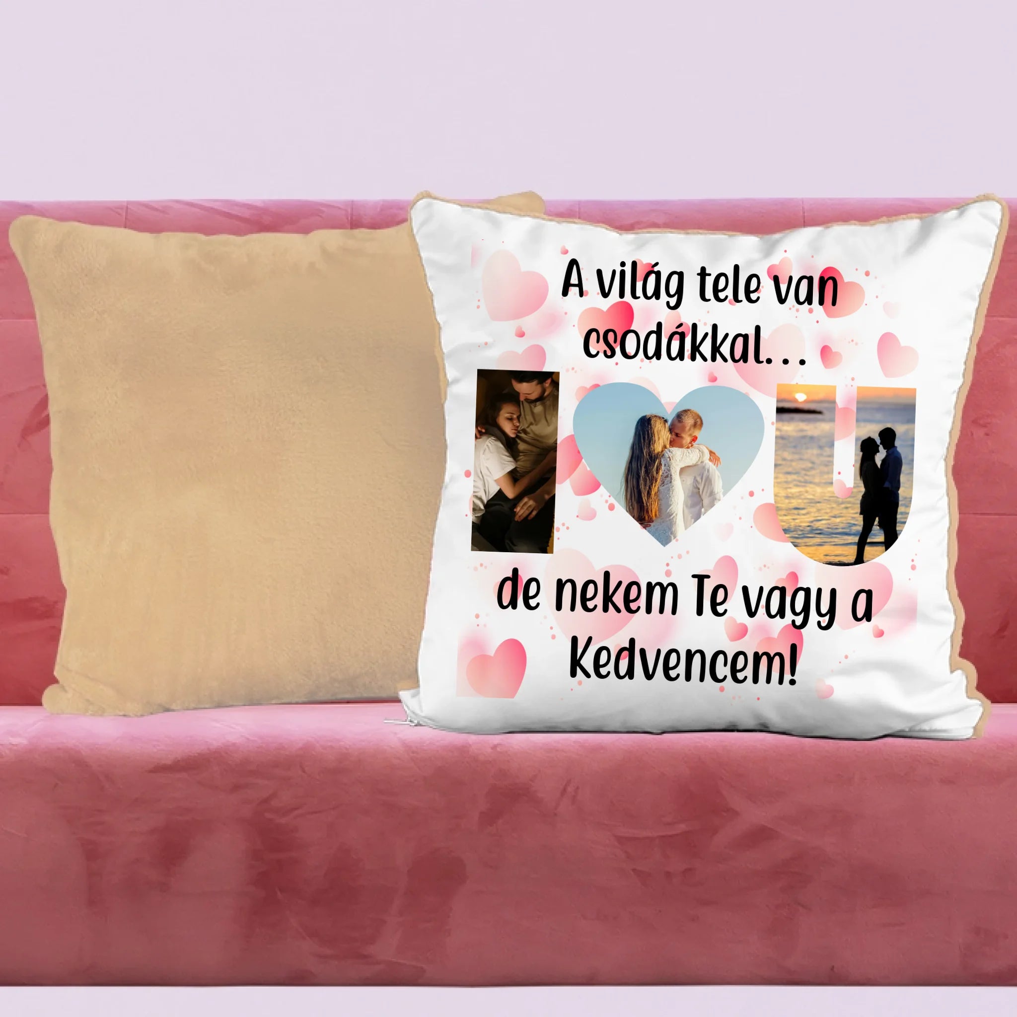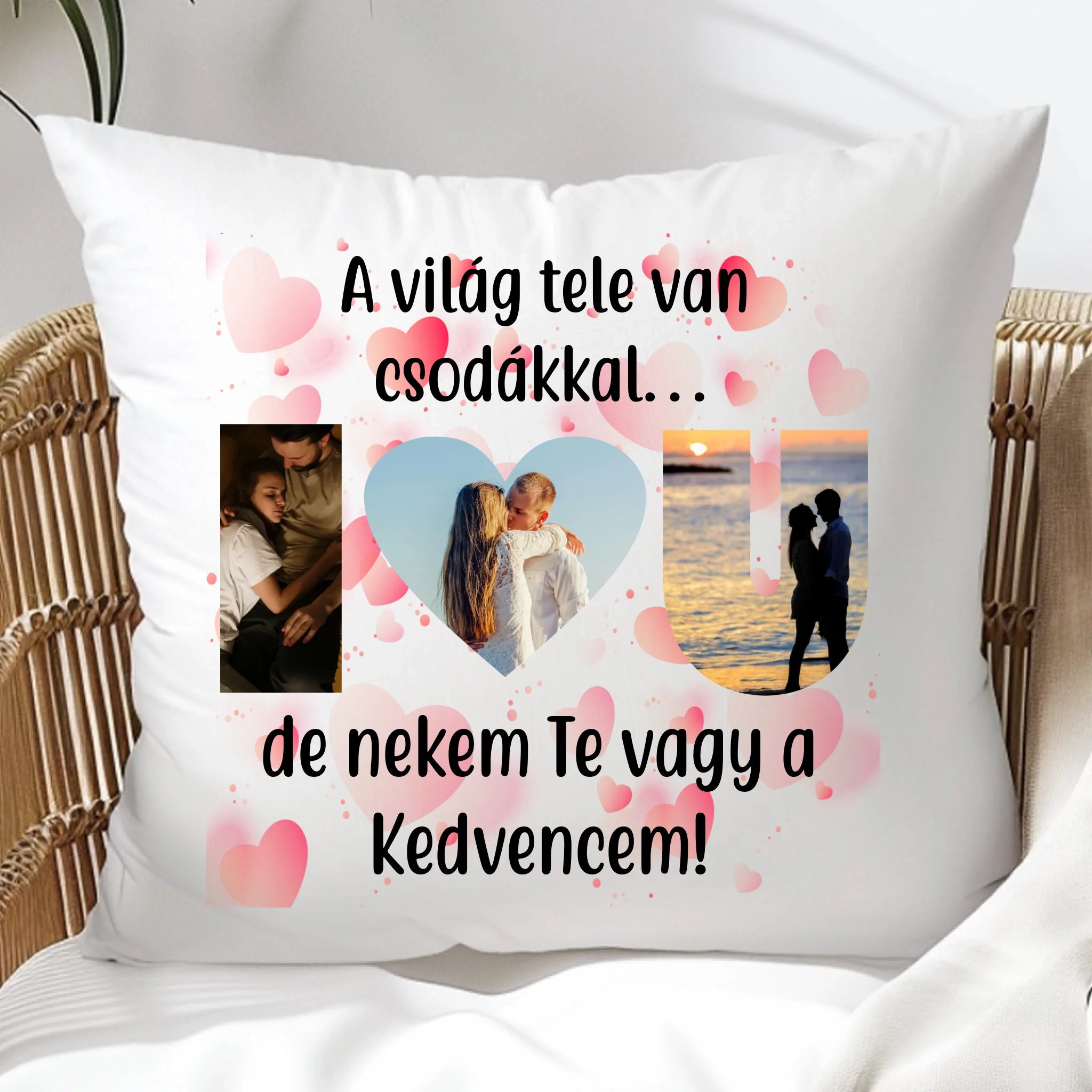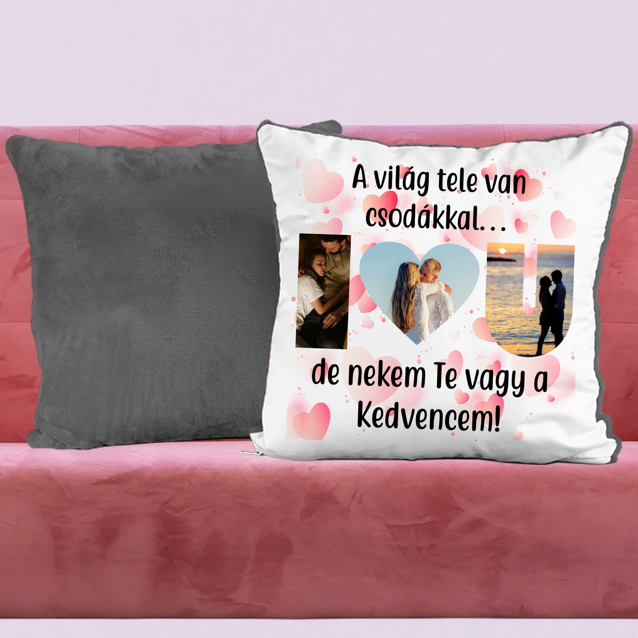 Valentin napi egyed fényképes párna, a Te saját fotóiddal személyre szabva.