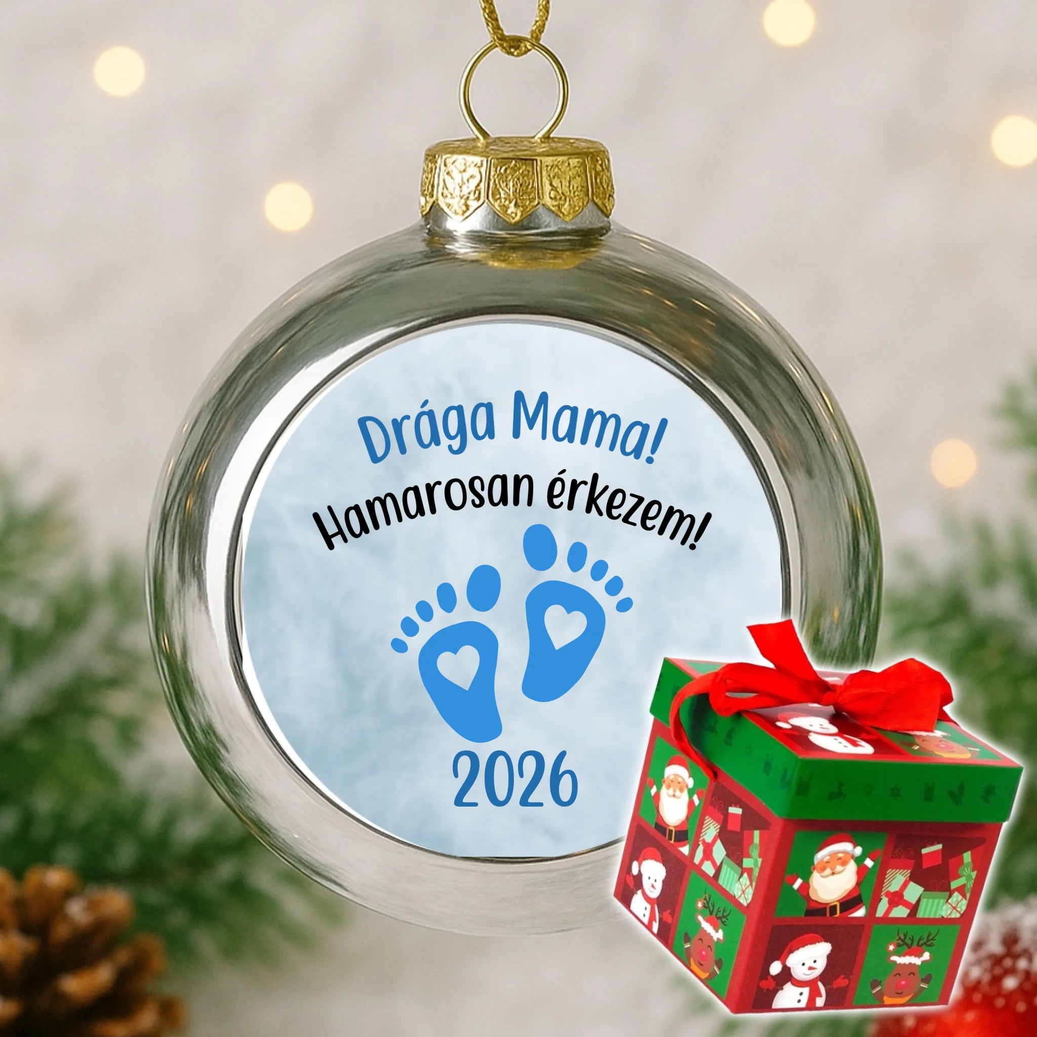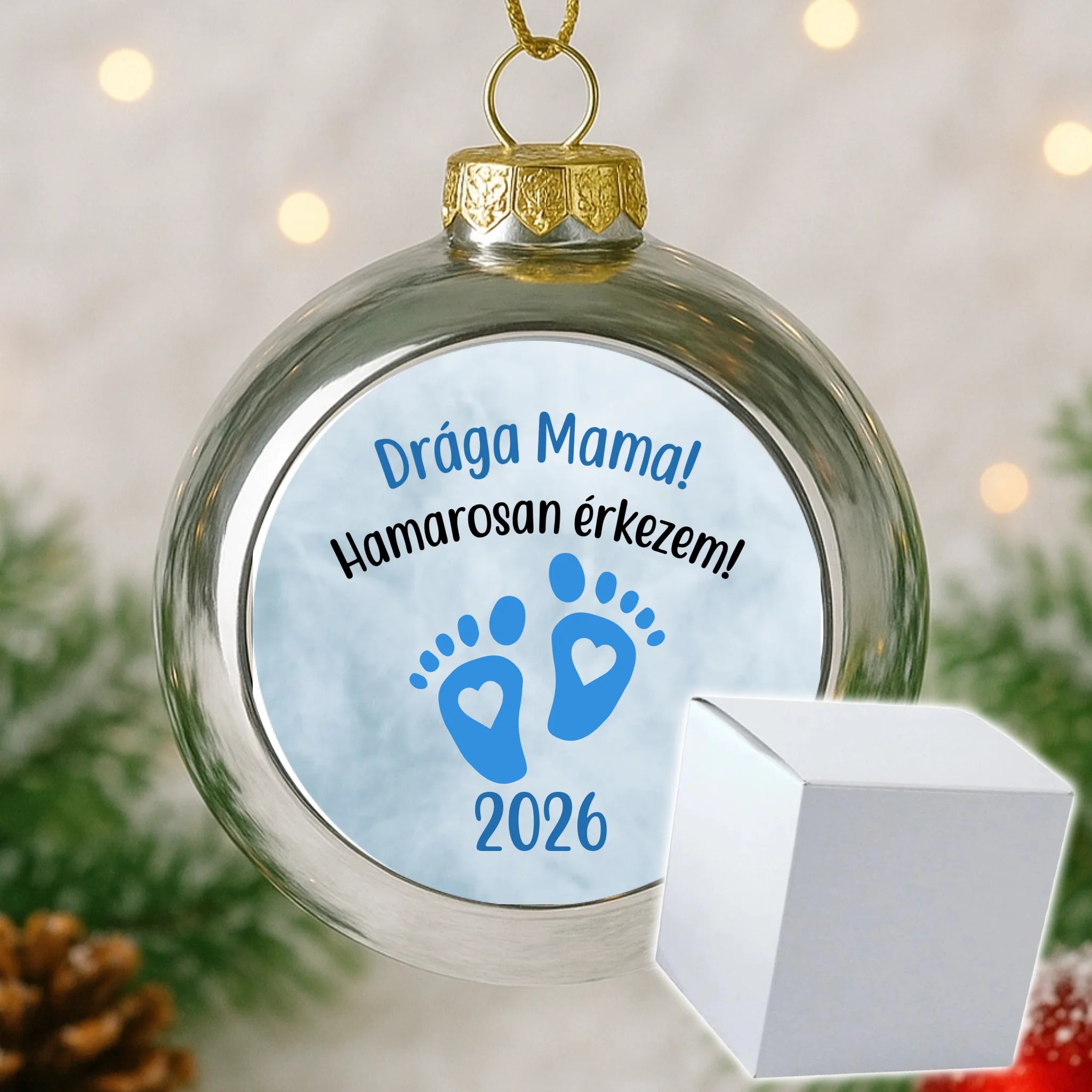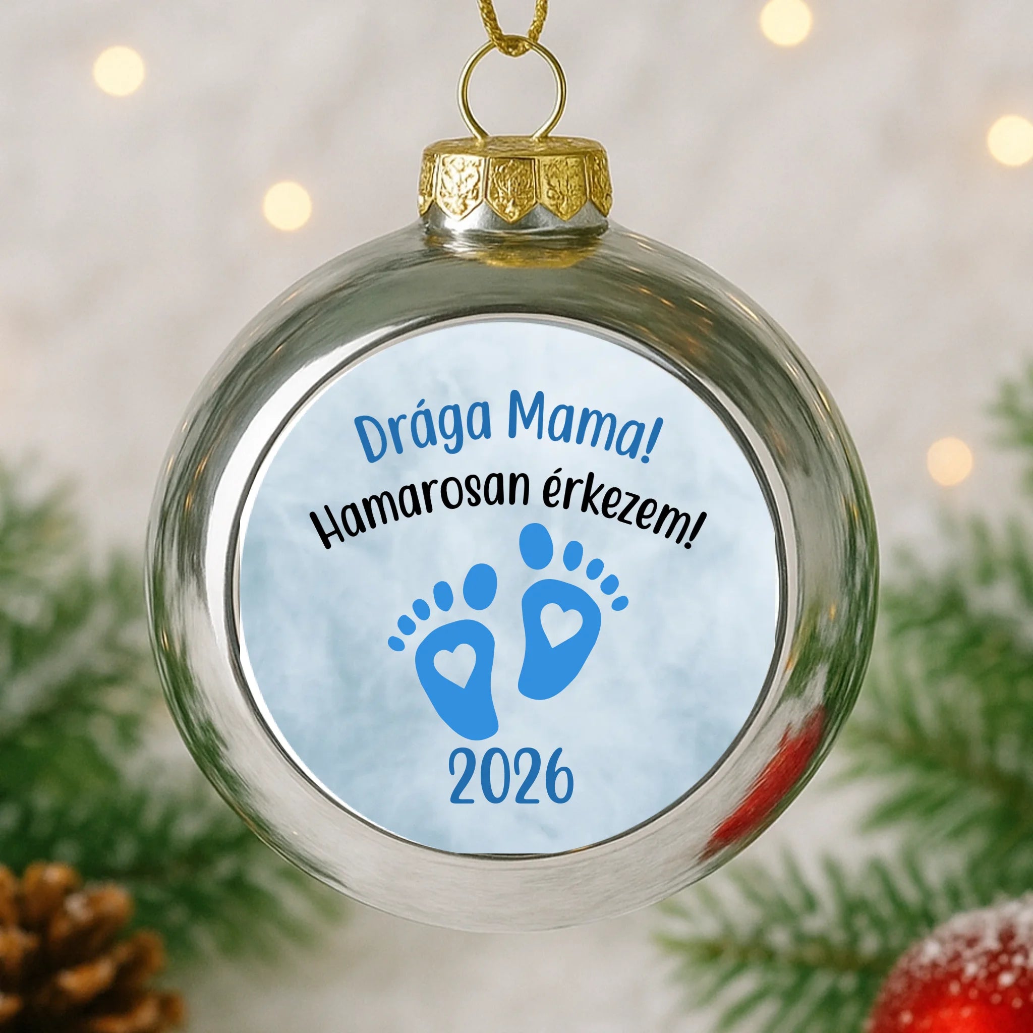 Karácsonyi baba bejelentő gömbdísz ezüst