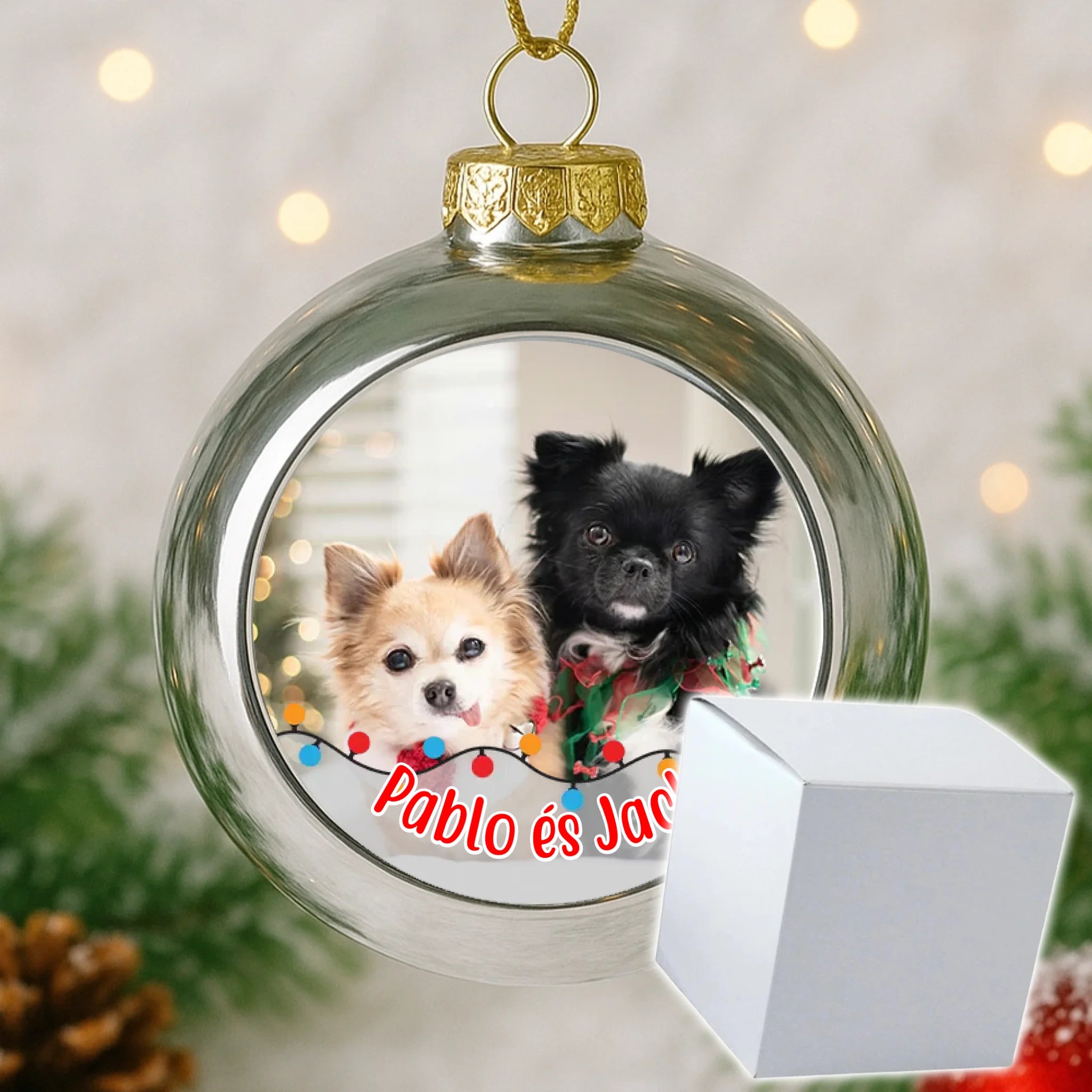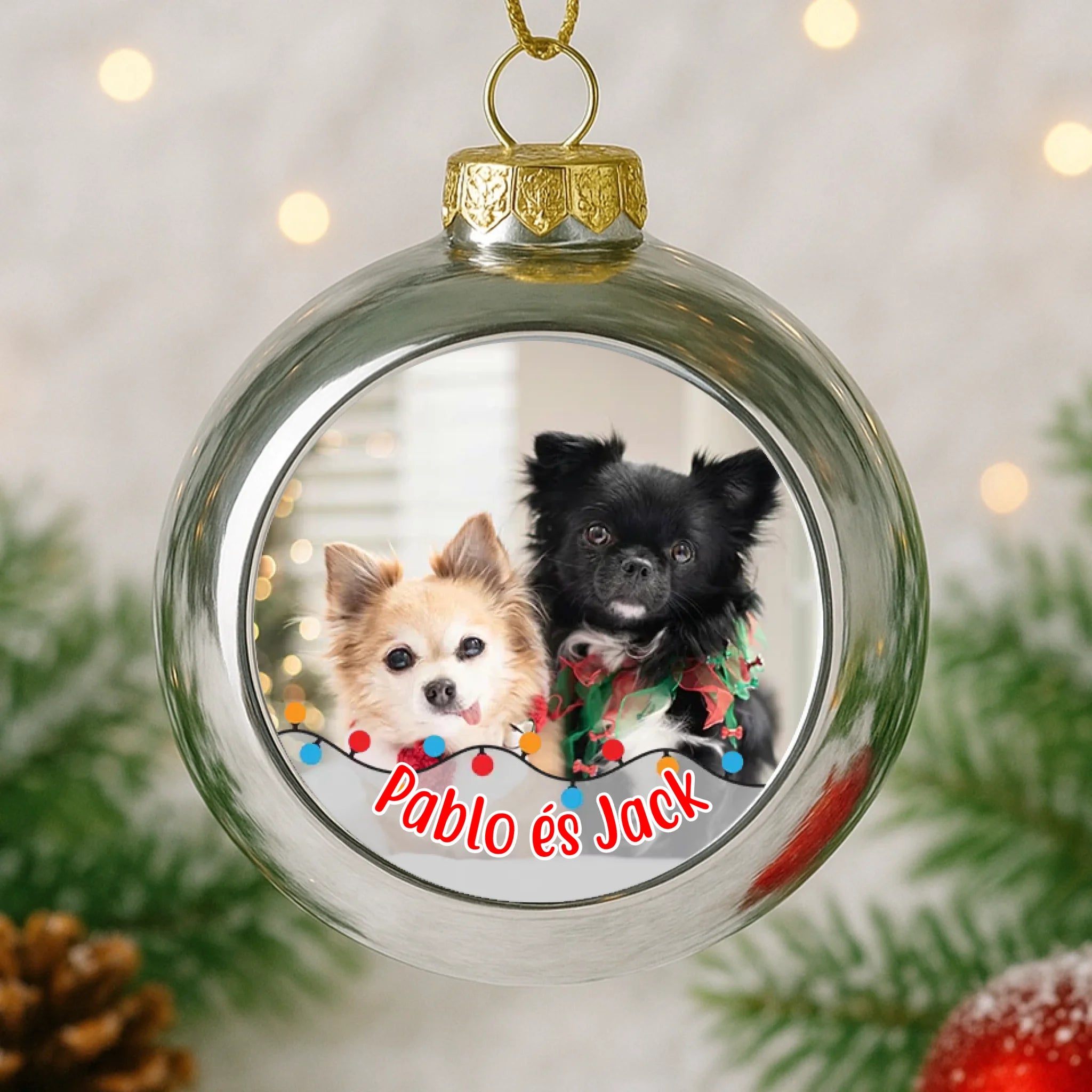 🎄 Személyre szabható karácsonyi fényképes gömbdísz – ezüst, arany vagy piros színben