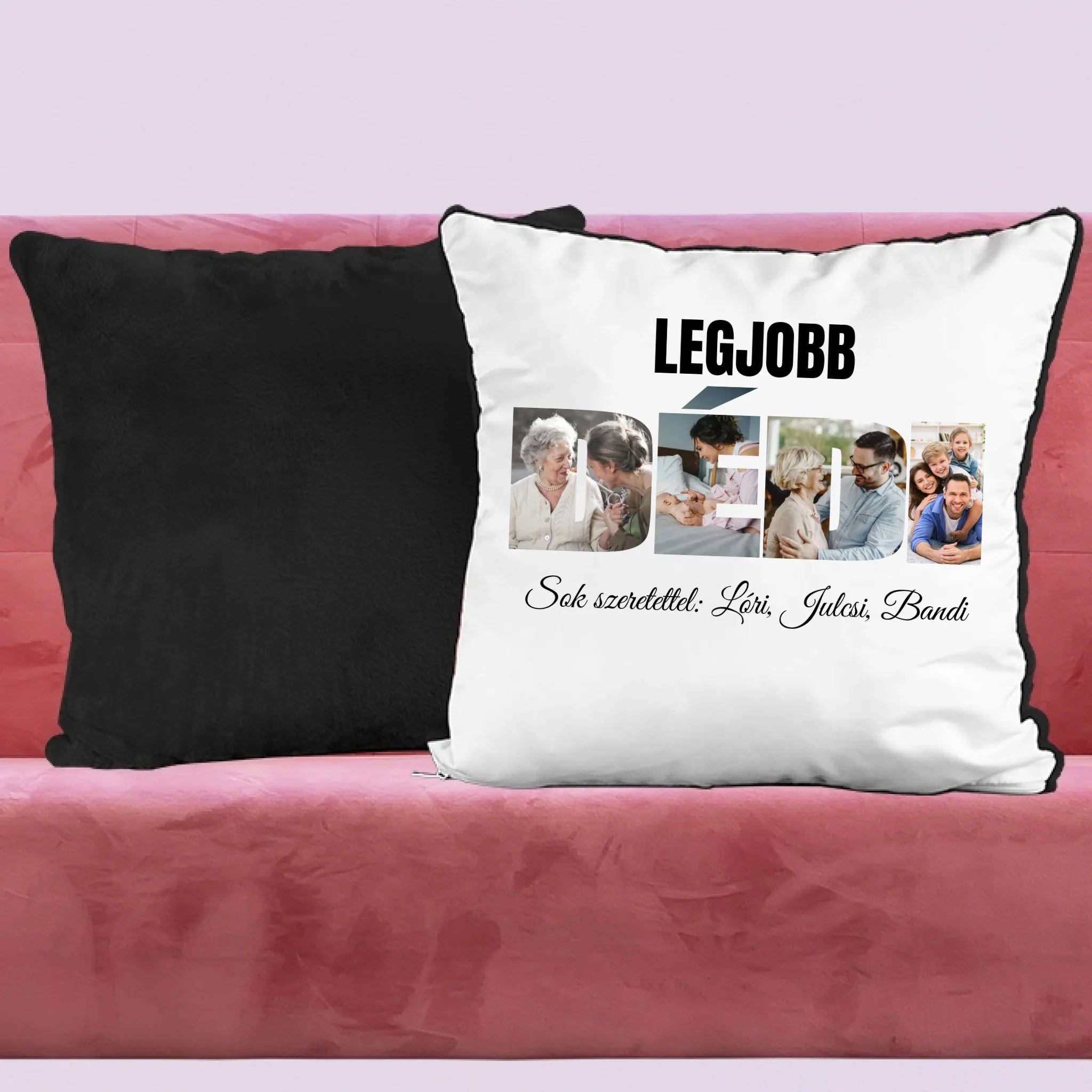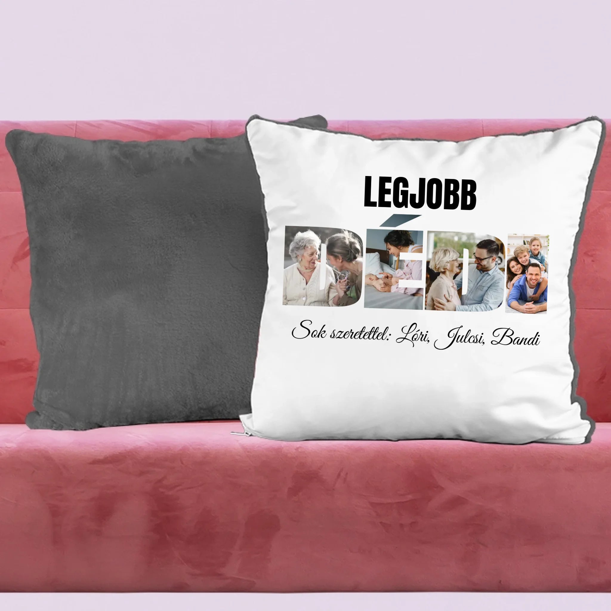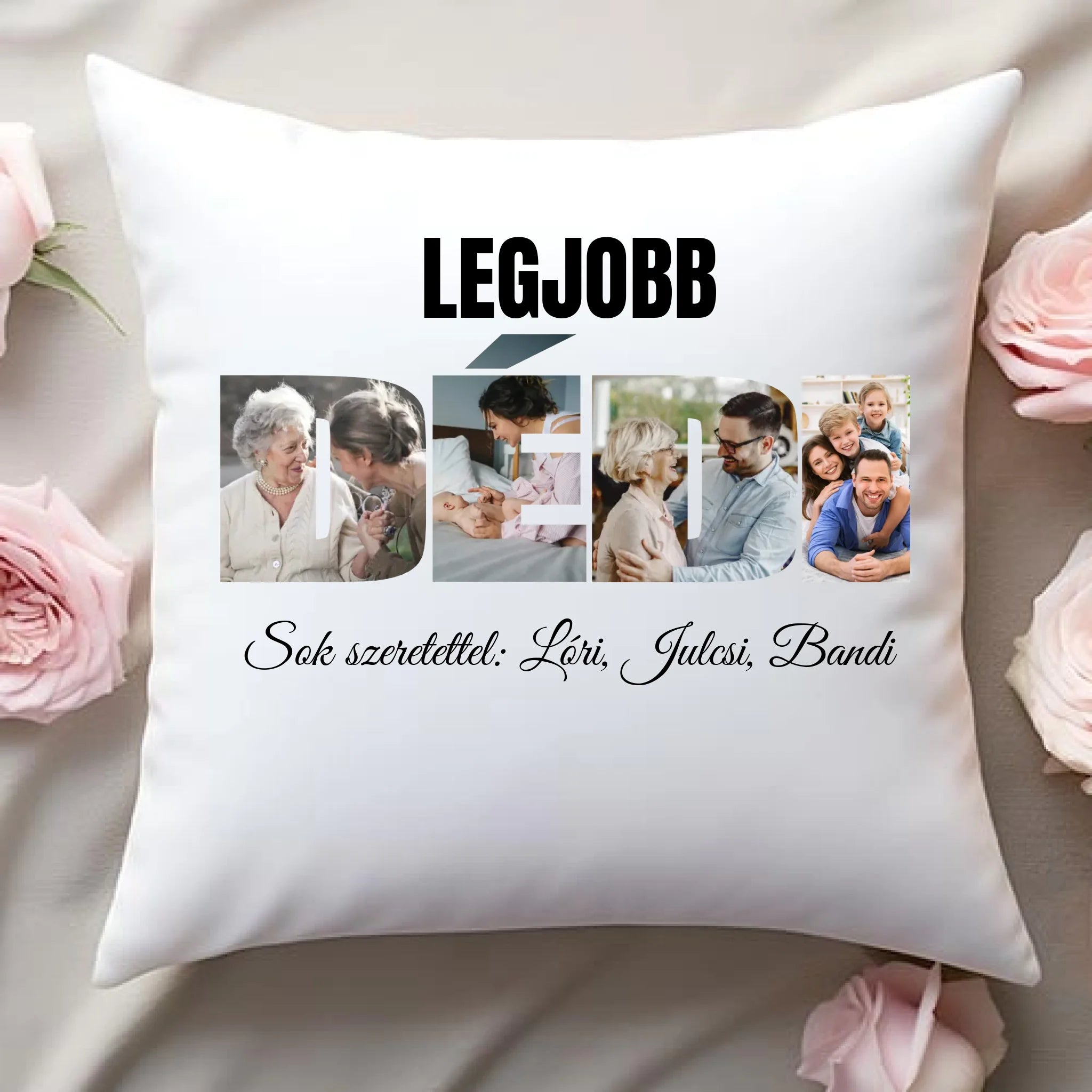 Egyedi párna anyák napjára dédimamának, melyre saját képet is kérhetsz. A kedves felirat garantálja és a DÉDI formában kivágott képek garantáltan mosolyt csalnak nagymamád arcára, legyen szó anyák napjáról, születésnapról, névnapról vagy karácsonyról.