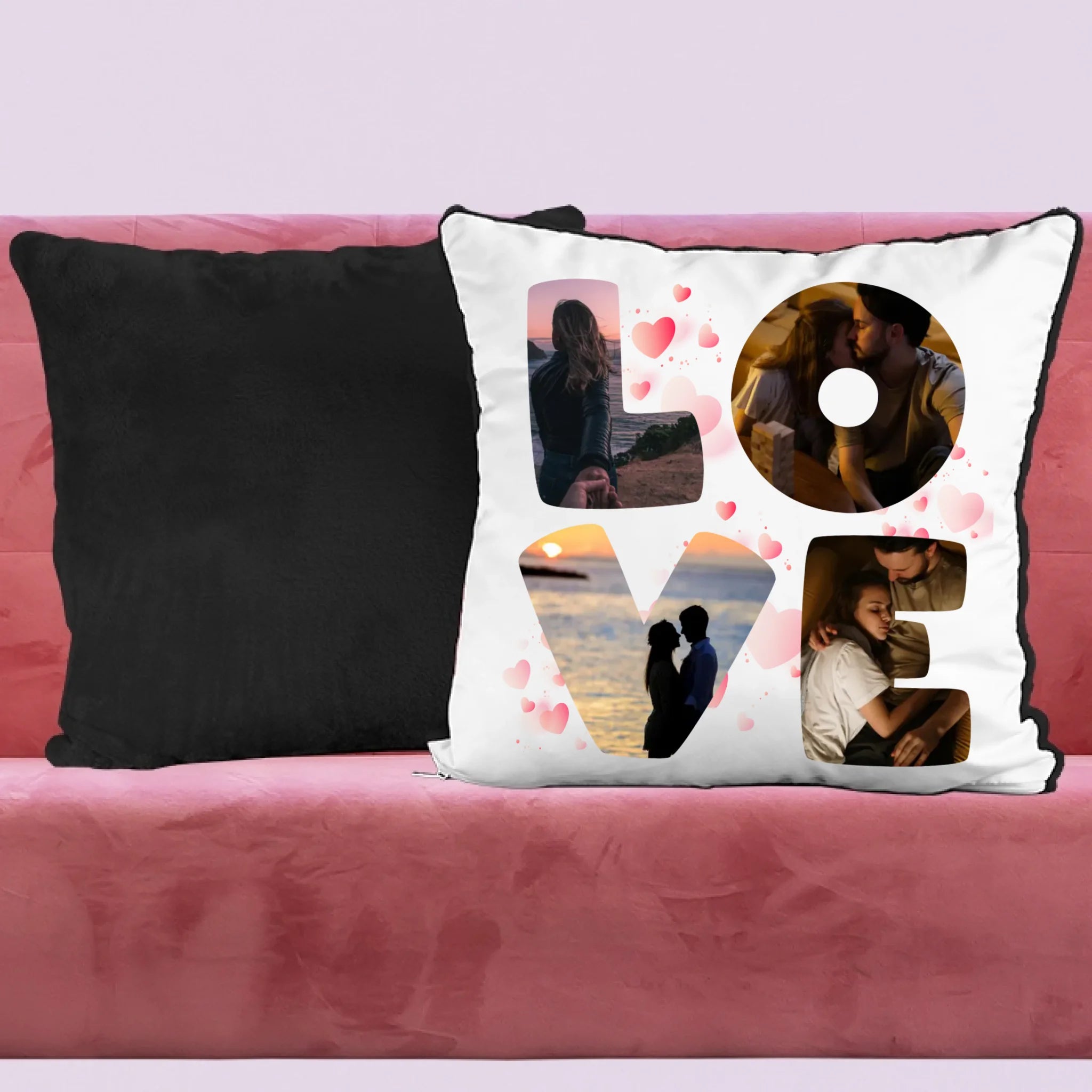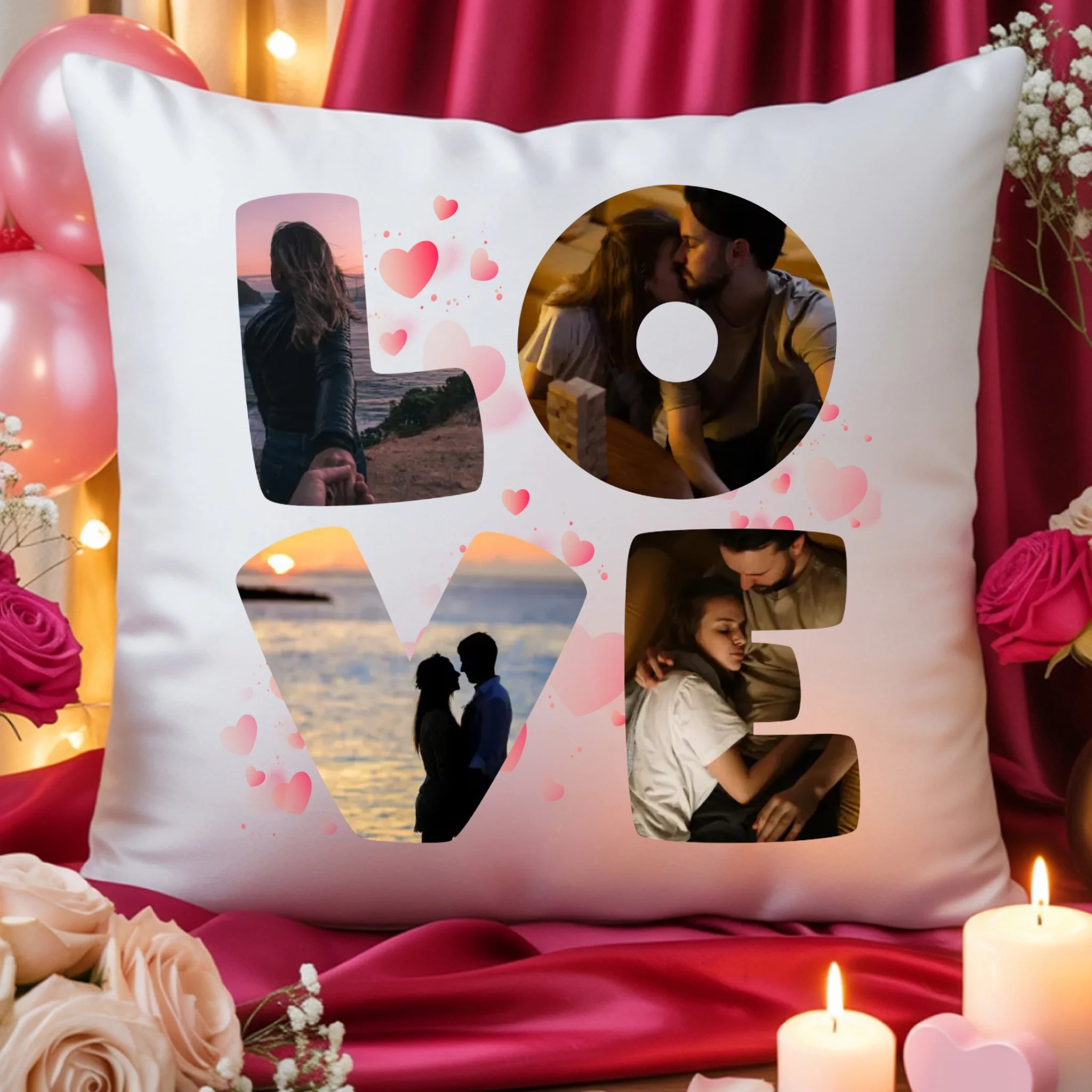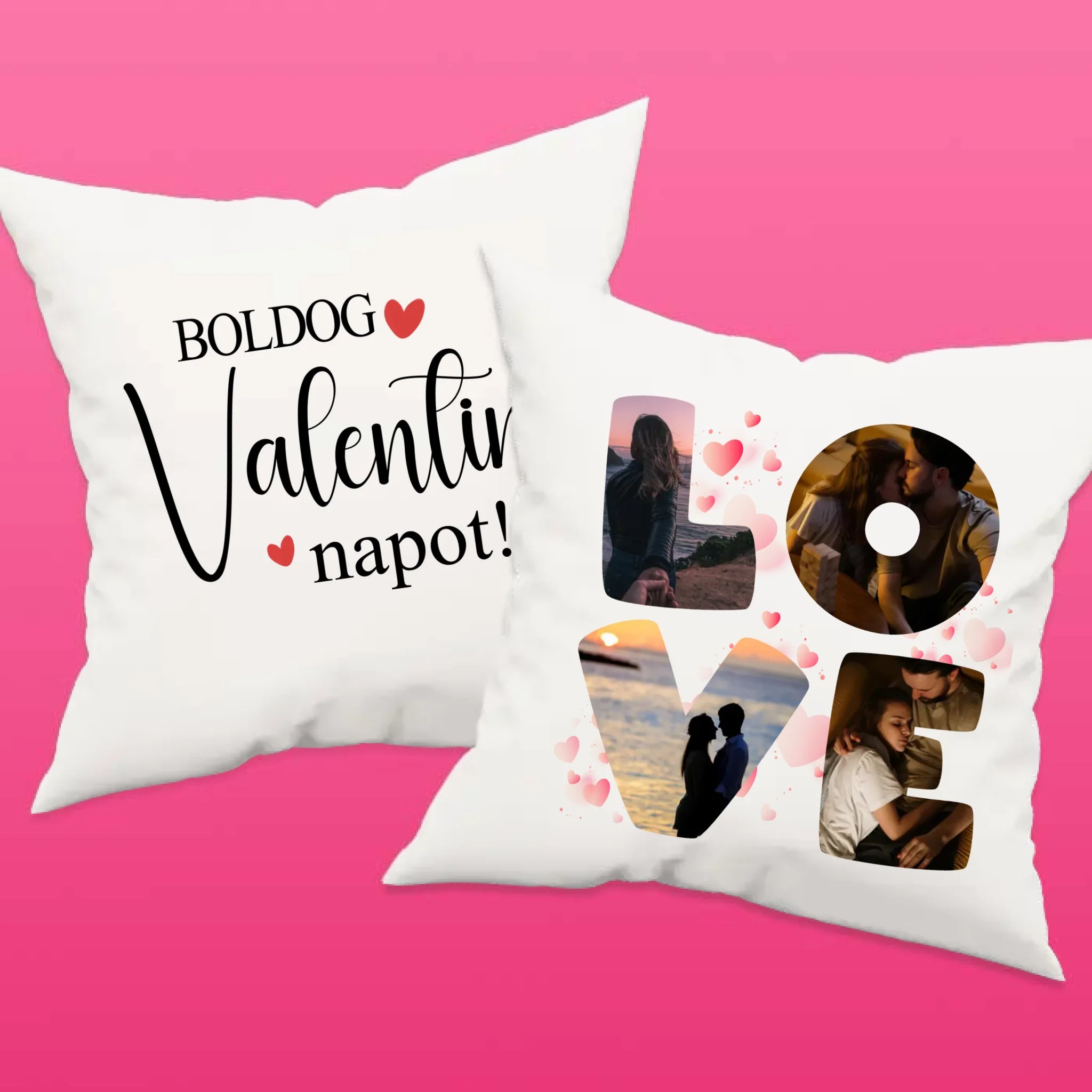 Valentin napi egyed fényképes párna, a Te saját fotóiddal személyre szabva.