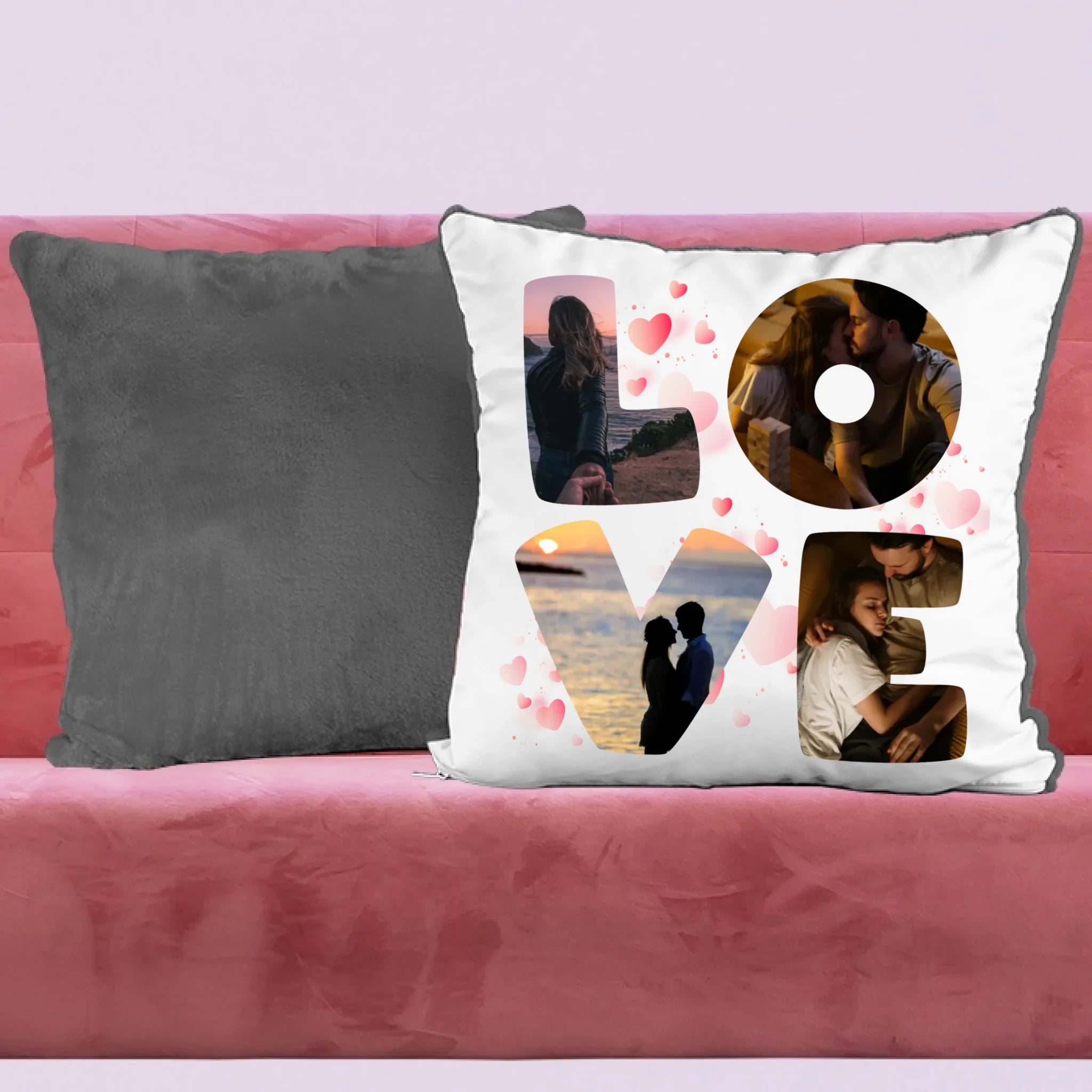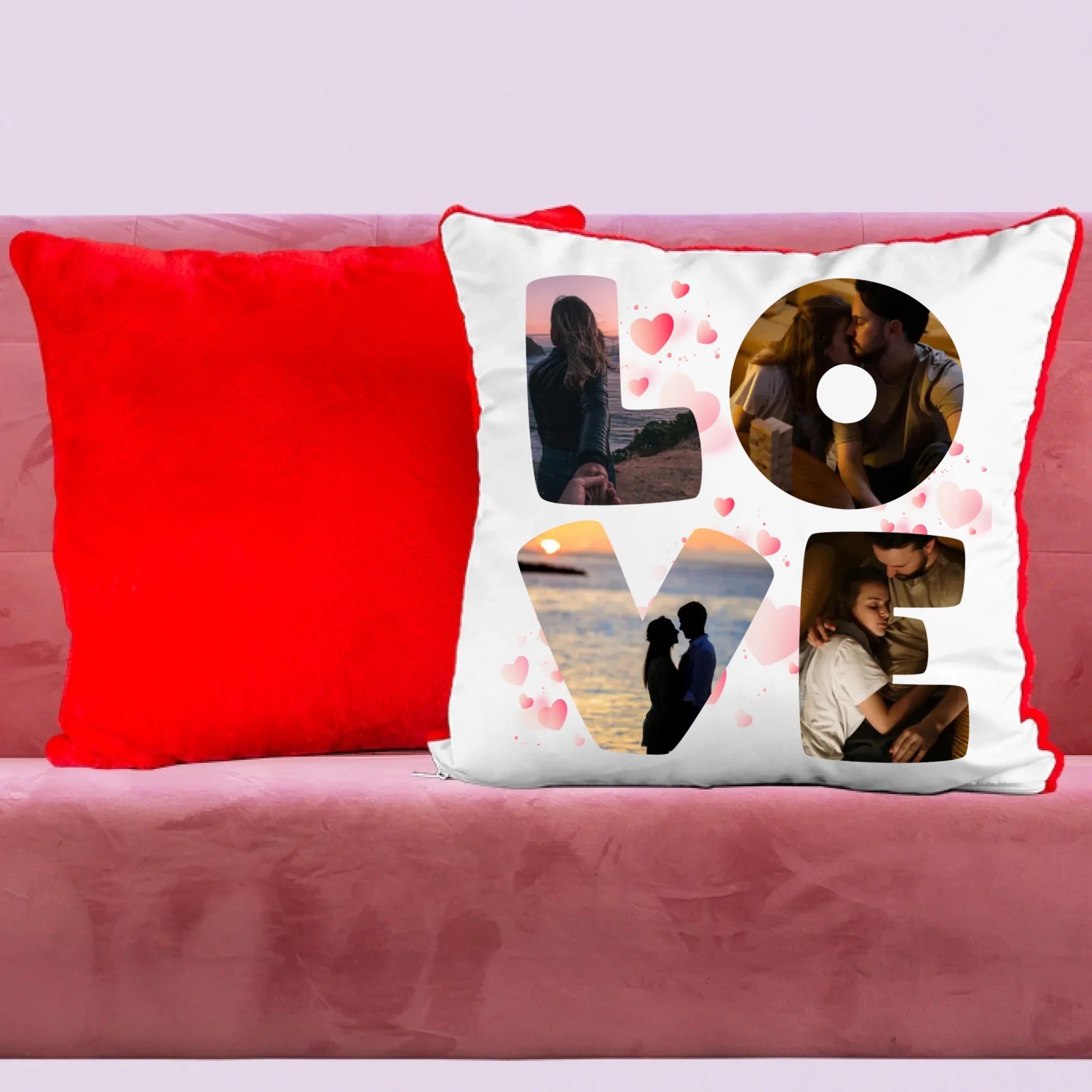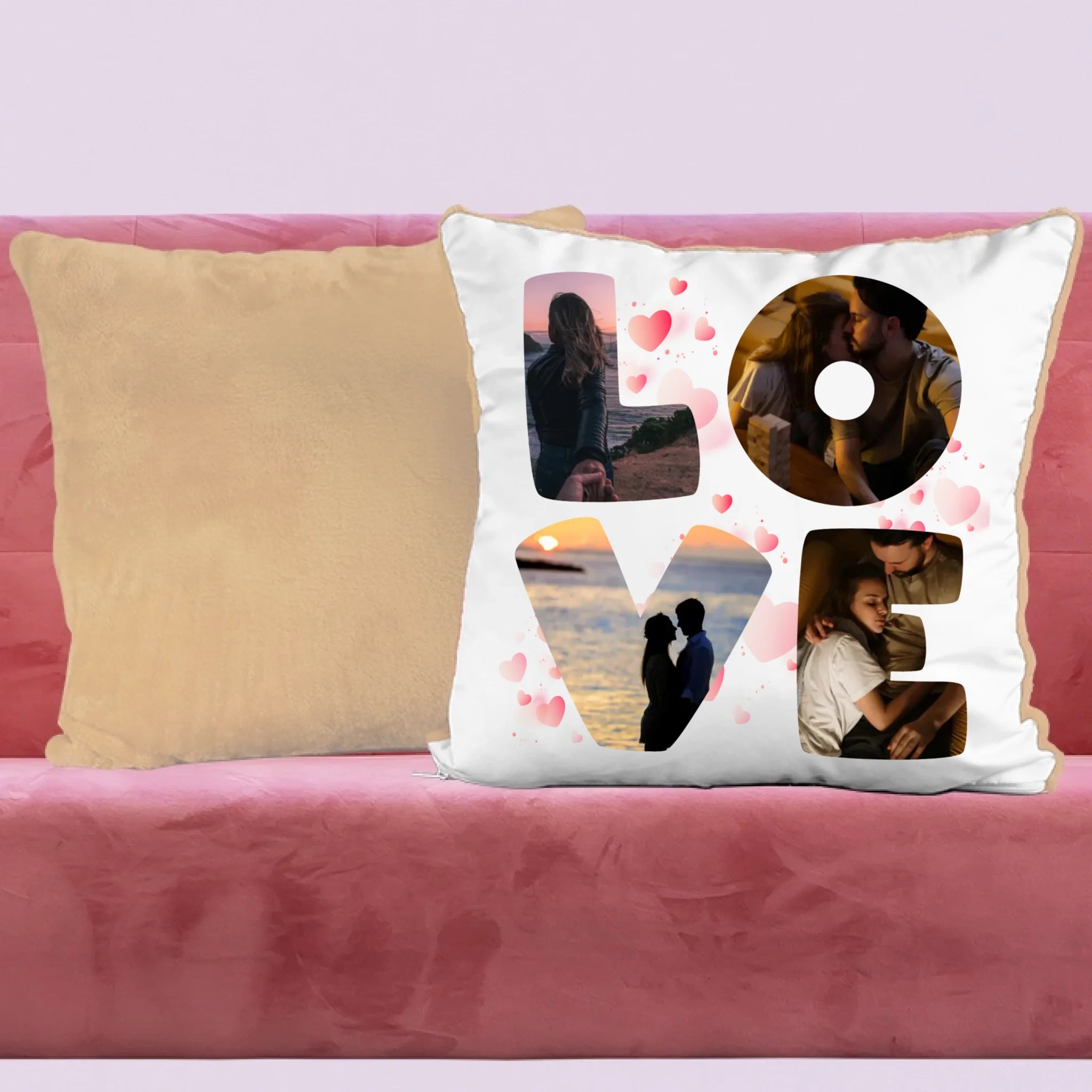 Valentin napi egyed fényképes párna, a Te saját fotóiddal személyre szabva.