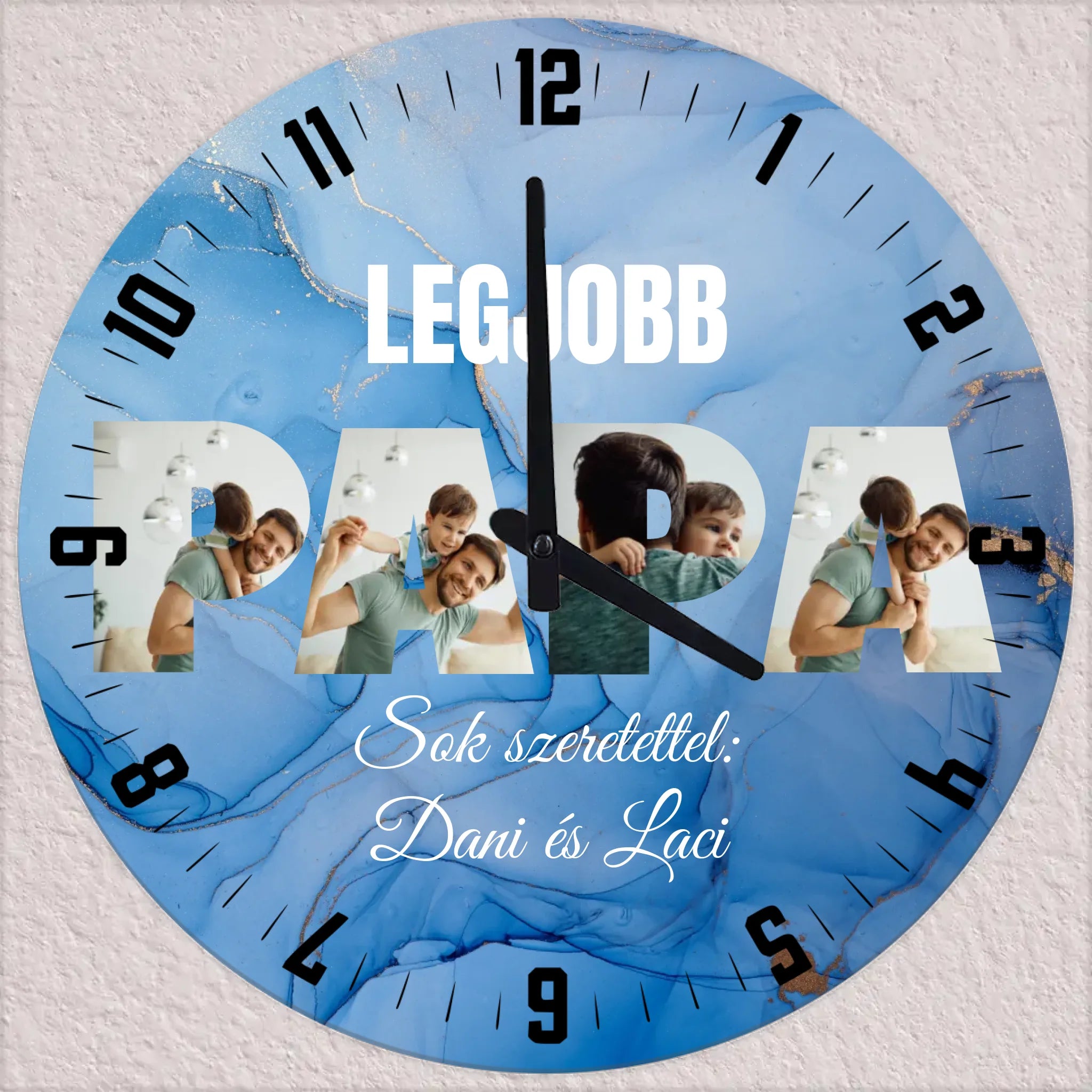 Ez az egyedi falióra tökéletes ajándék születésnapra, karácsonyra vagy bármilyen különleges alkalomra, ami garantáltan személyes és emlékezetes lesz. Válogass további egyedi óra mintáinkból és készítsd el saját, teljesen személyre szabott órádat!