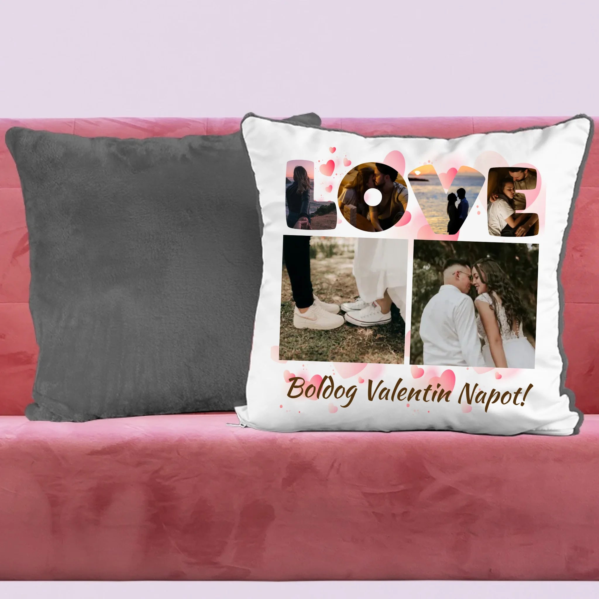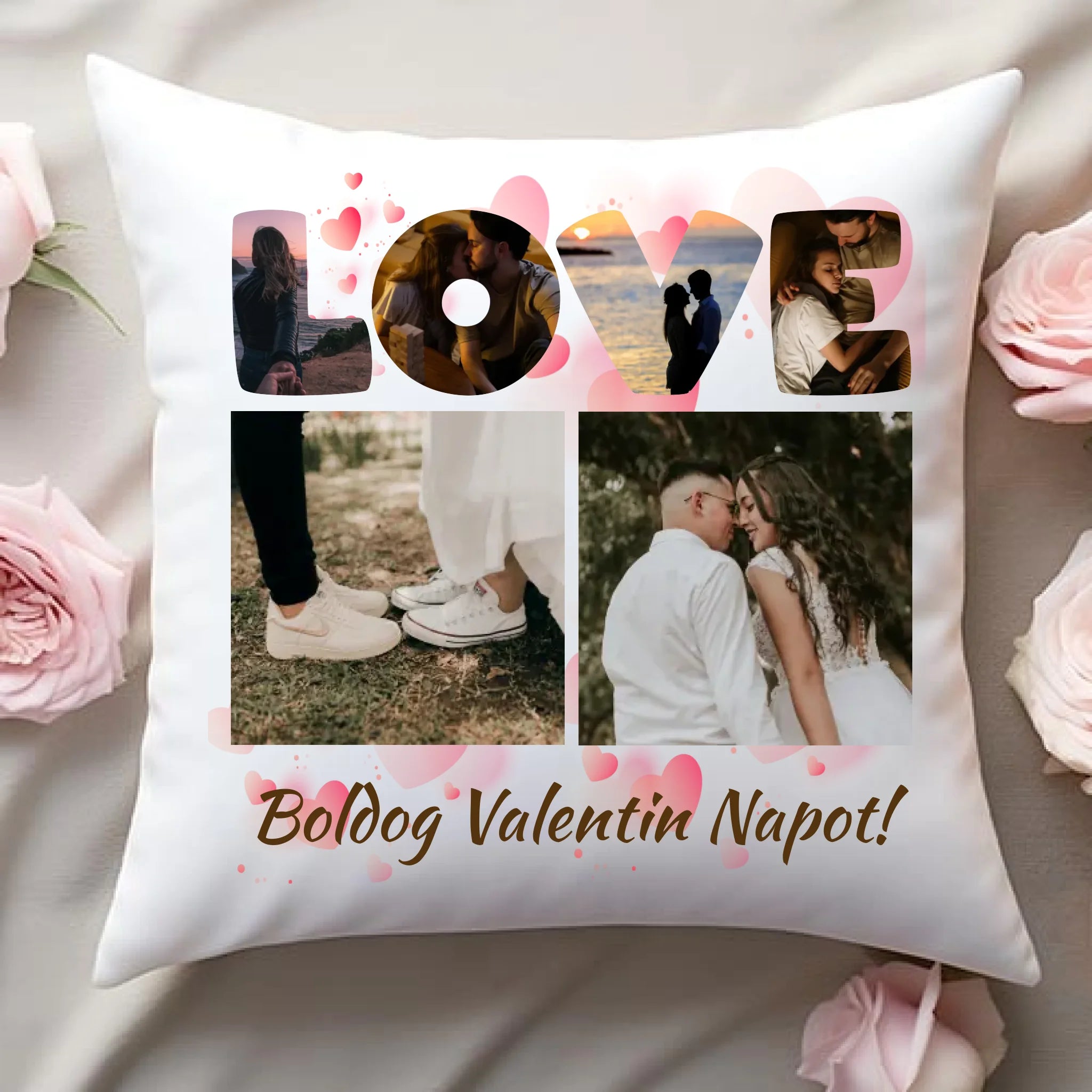 Saját fotós Valentin napi párna Love minta 6 képes